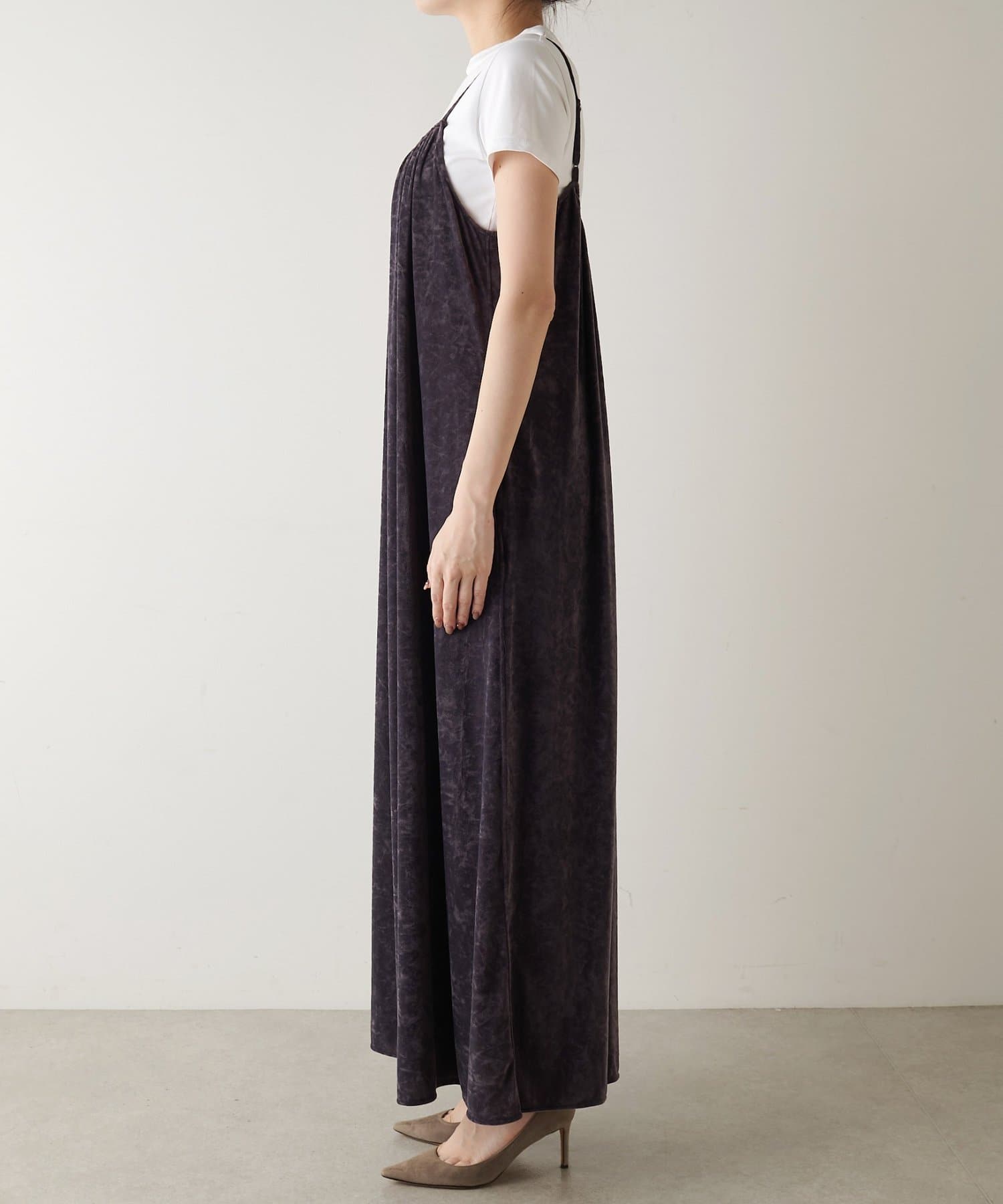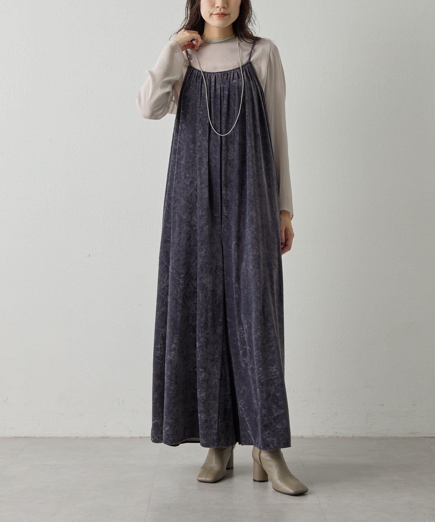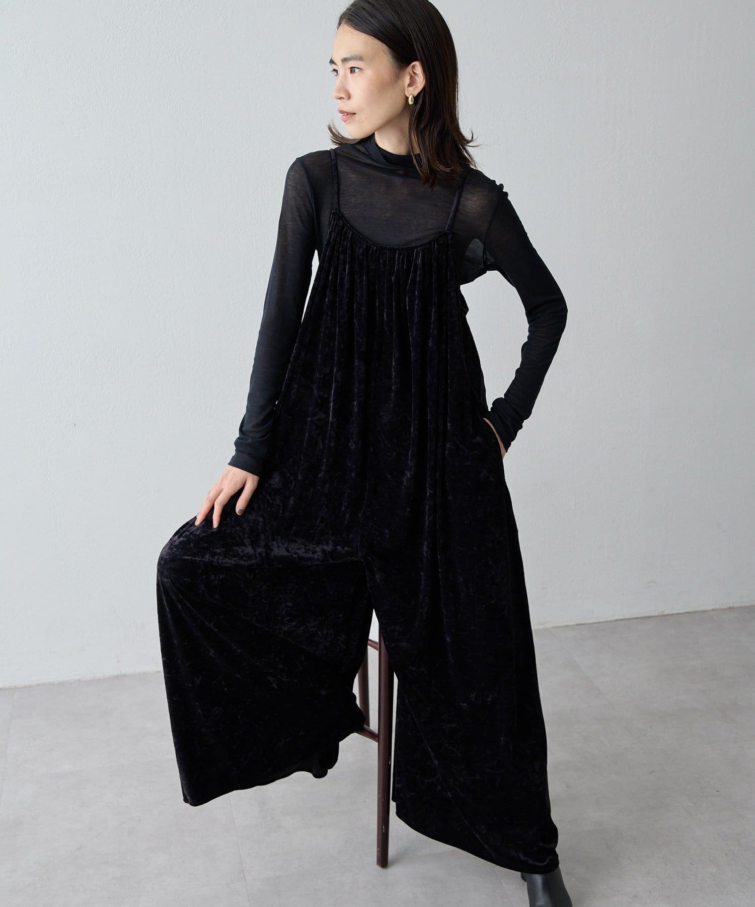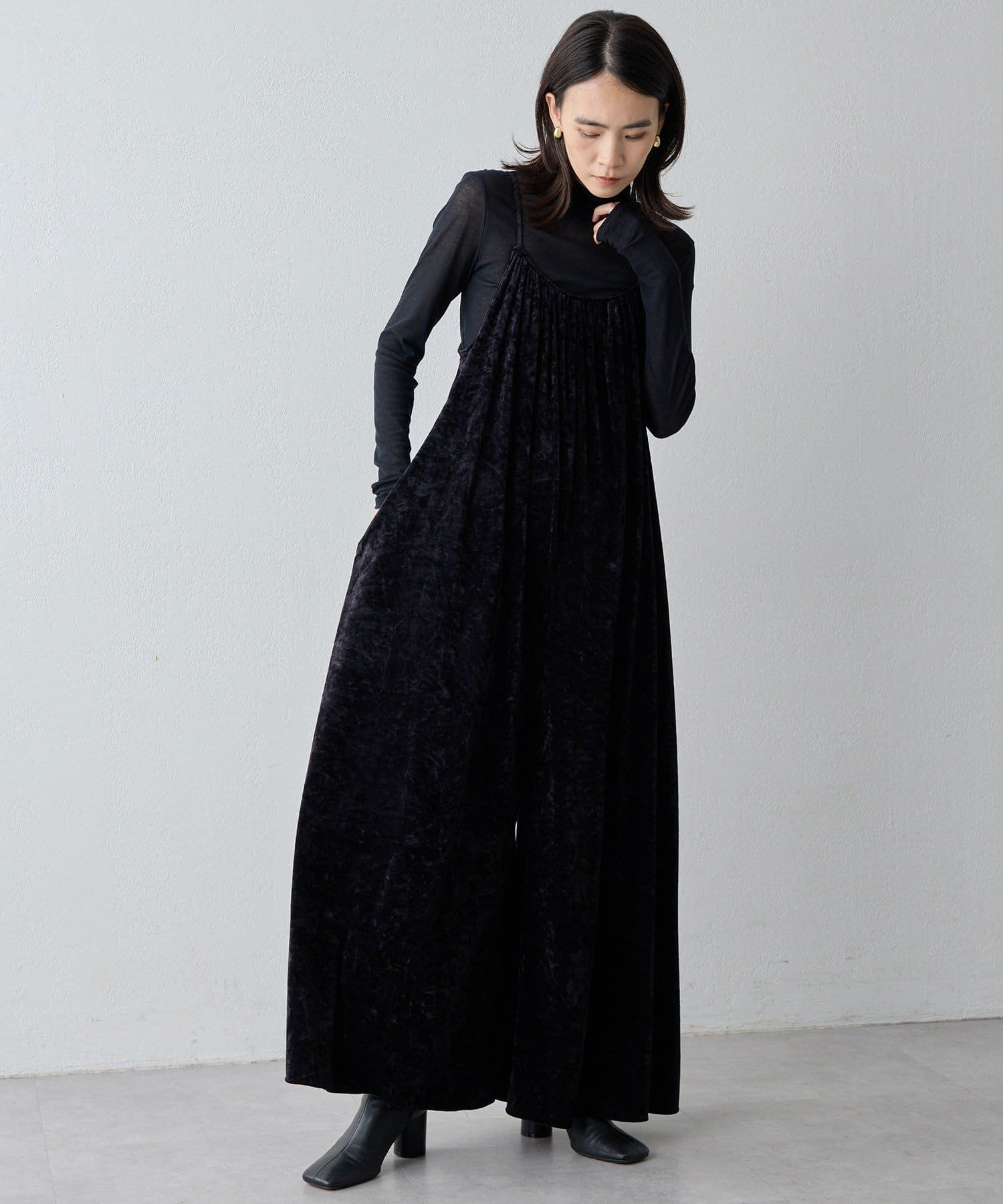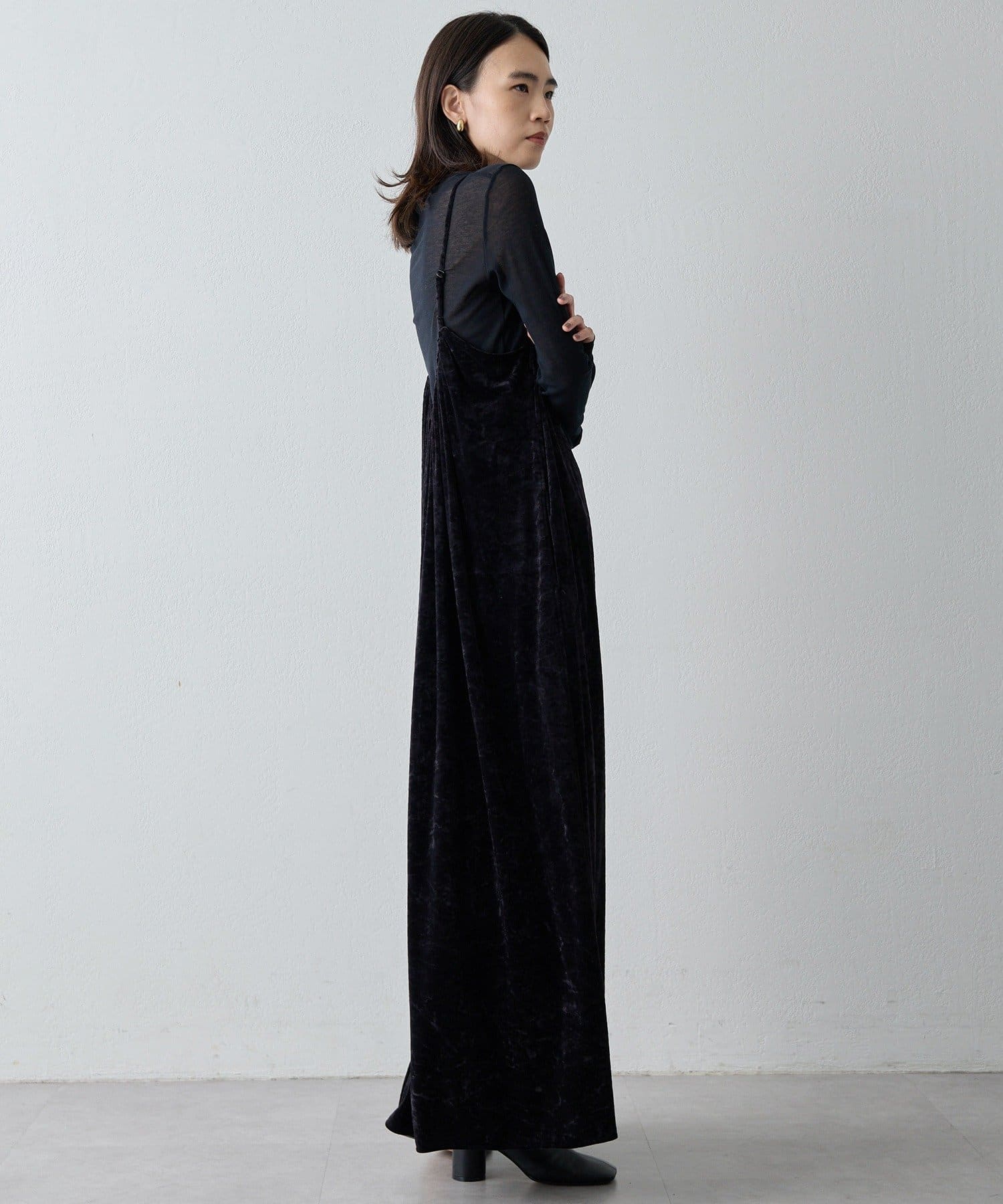 ■表面にクラッシュ加工を施したベロア素材を使用したキャミソールコンビネゾン。