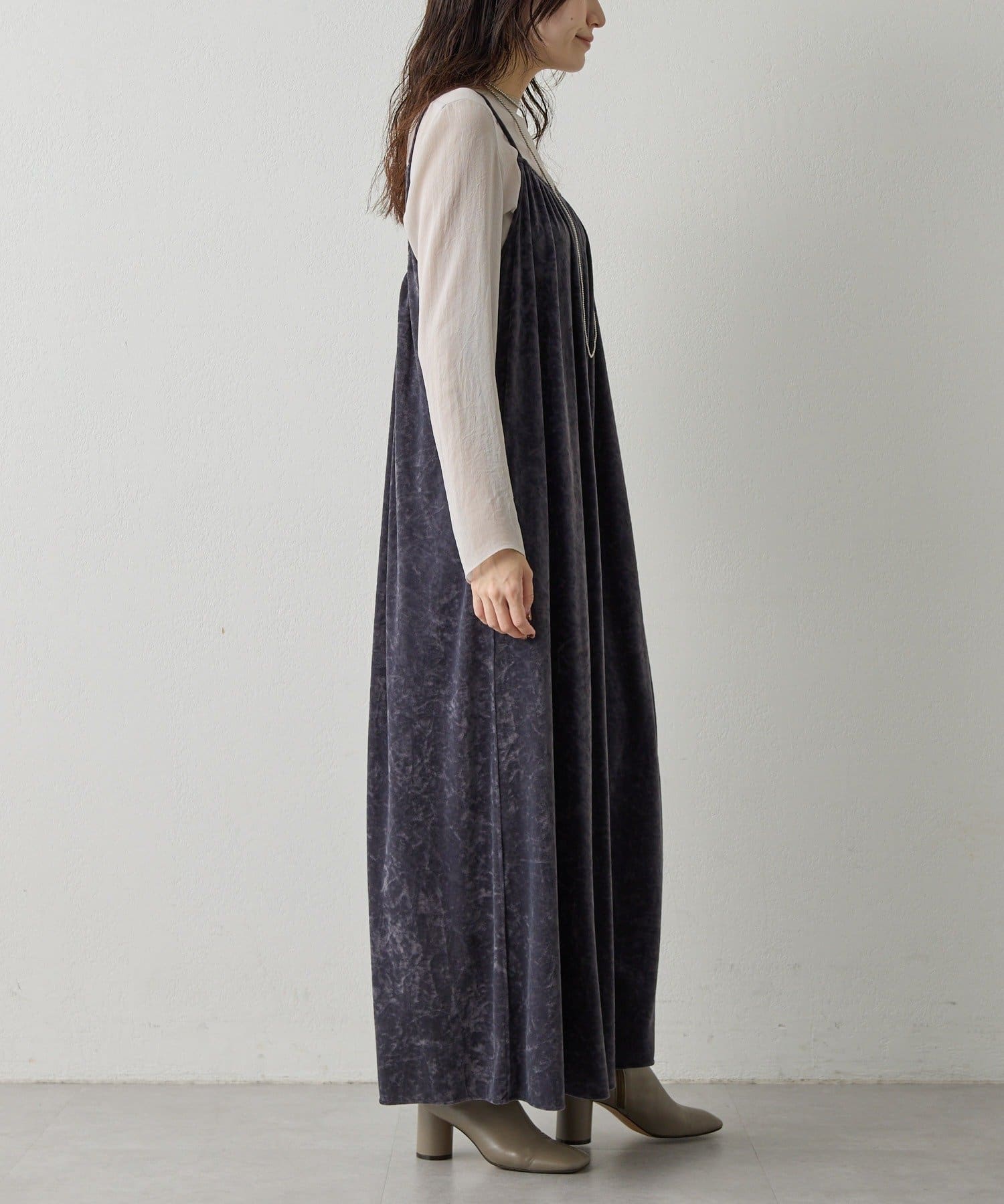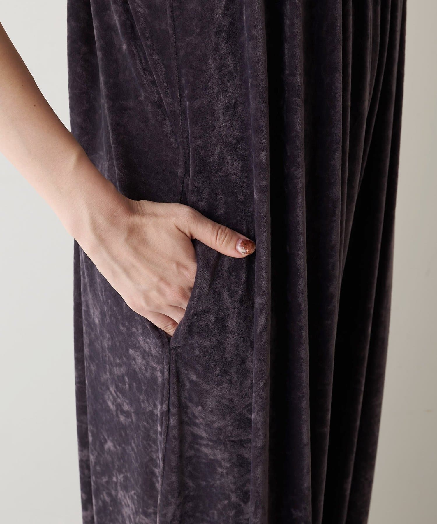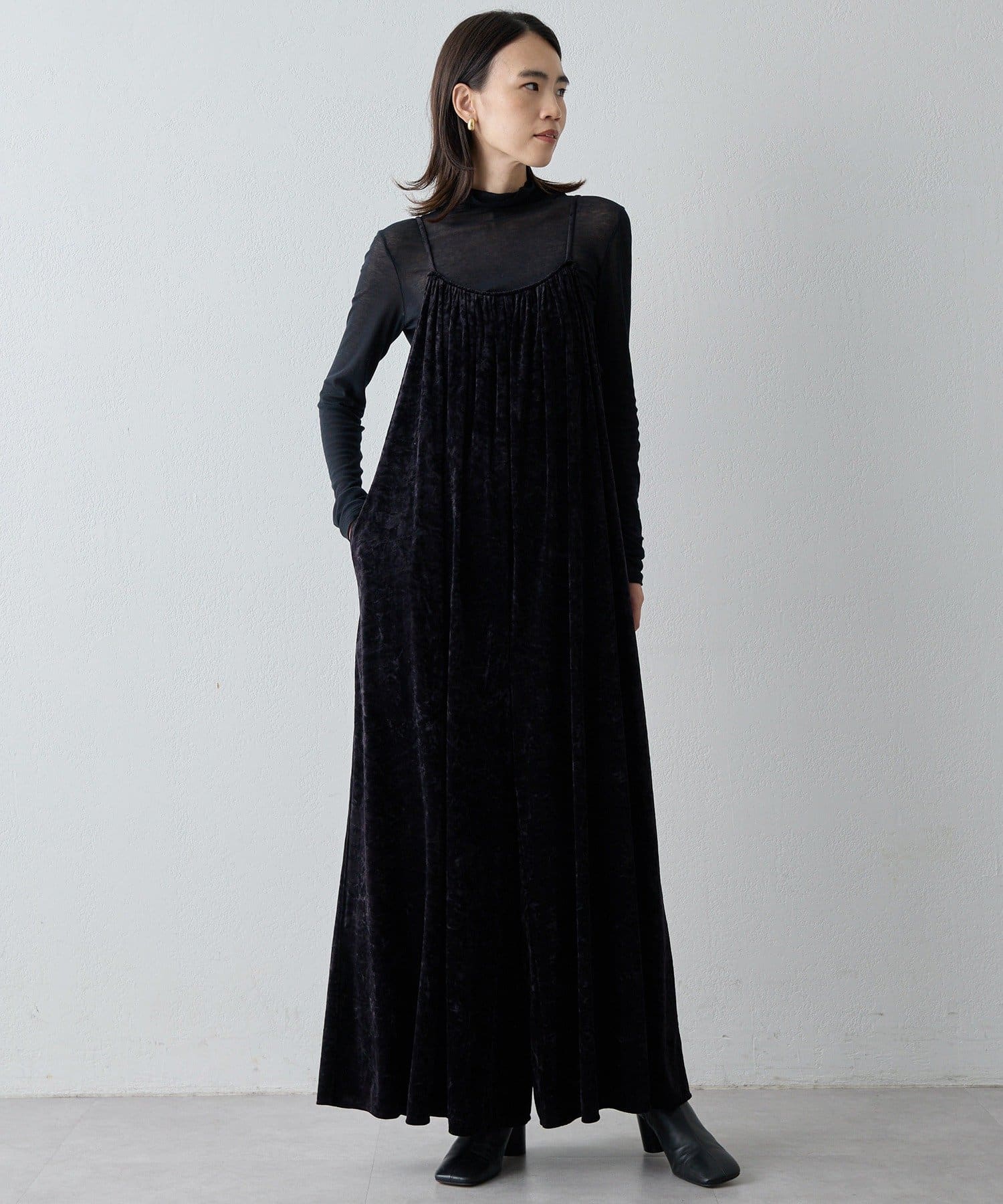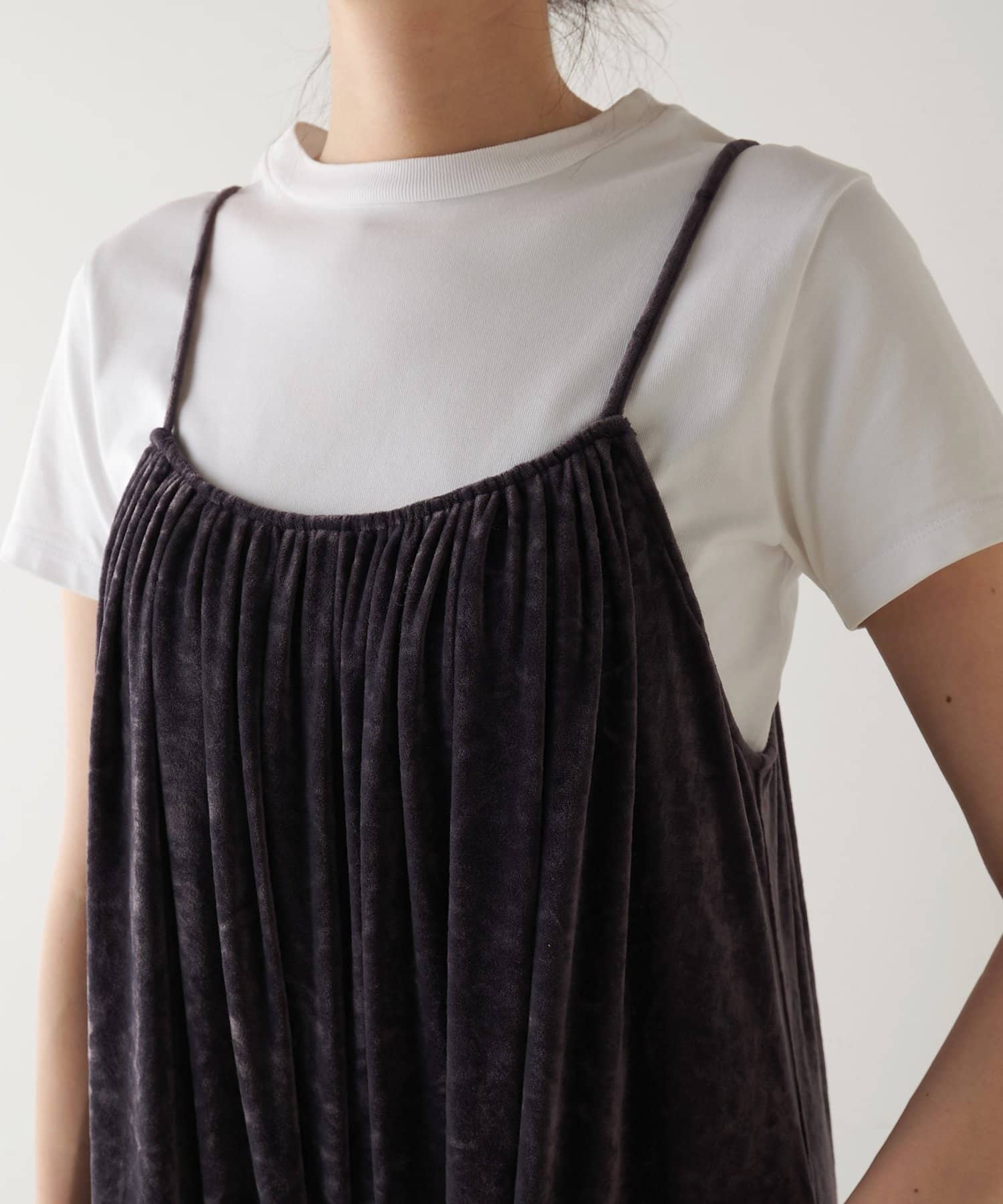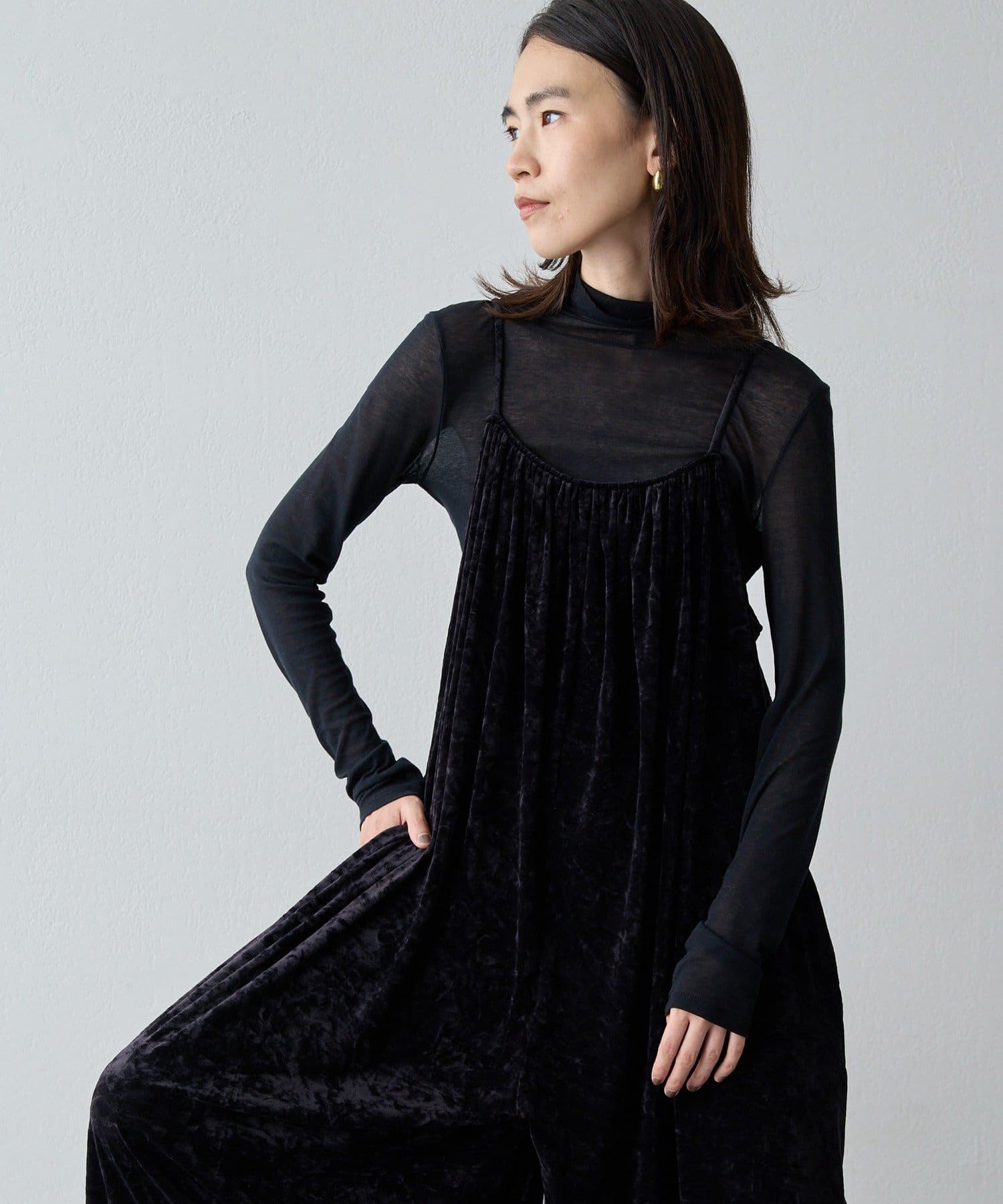 ■表面にクラッシュ加工を施したベロア素材を使用したキャミソールコンビネゾン。