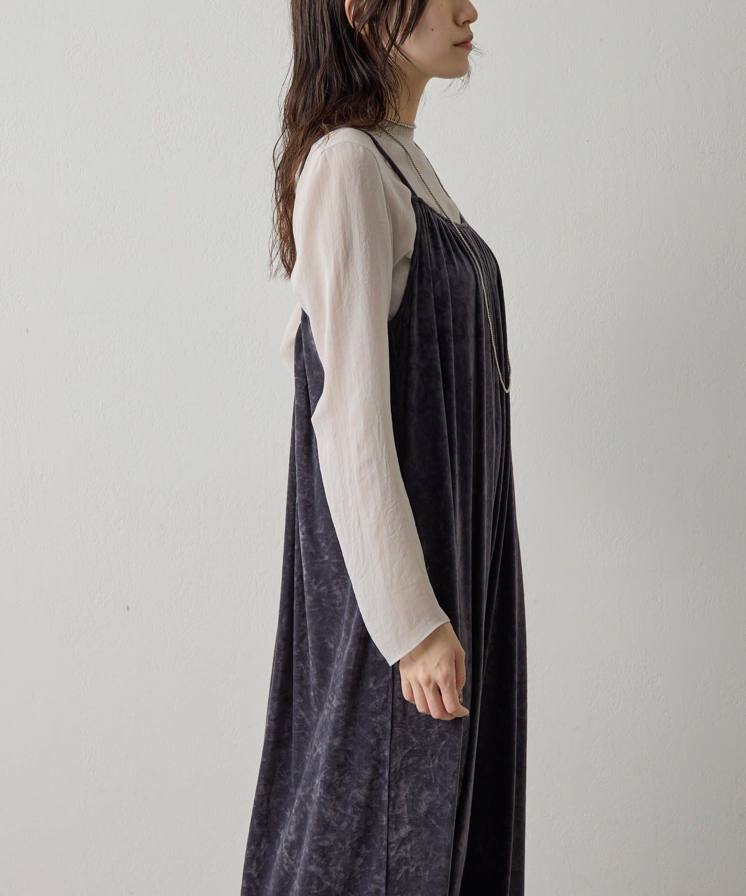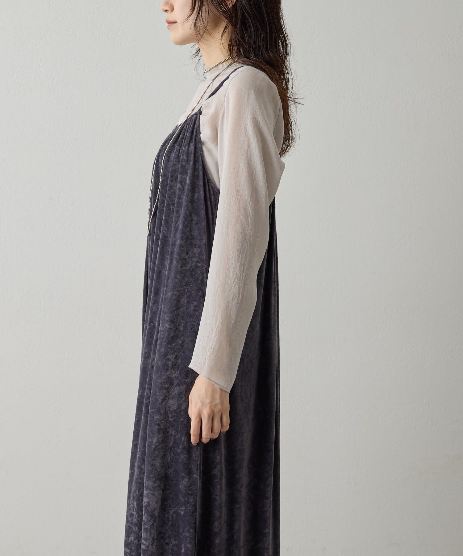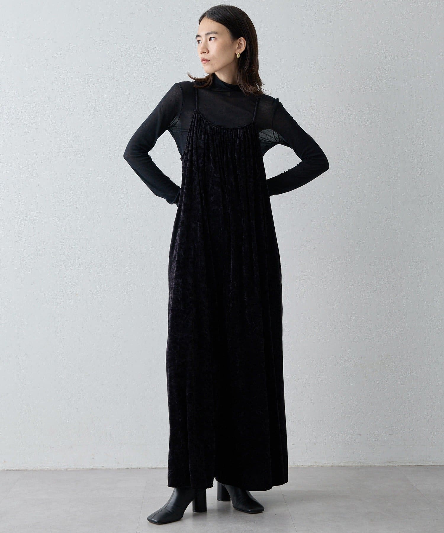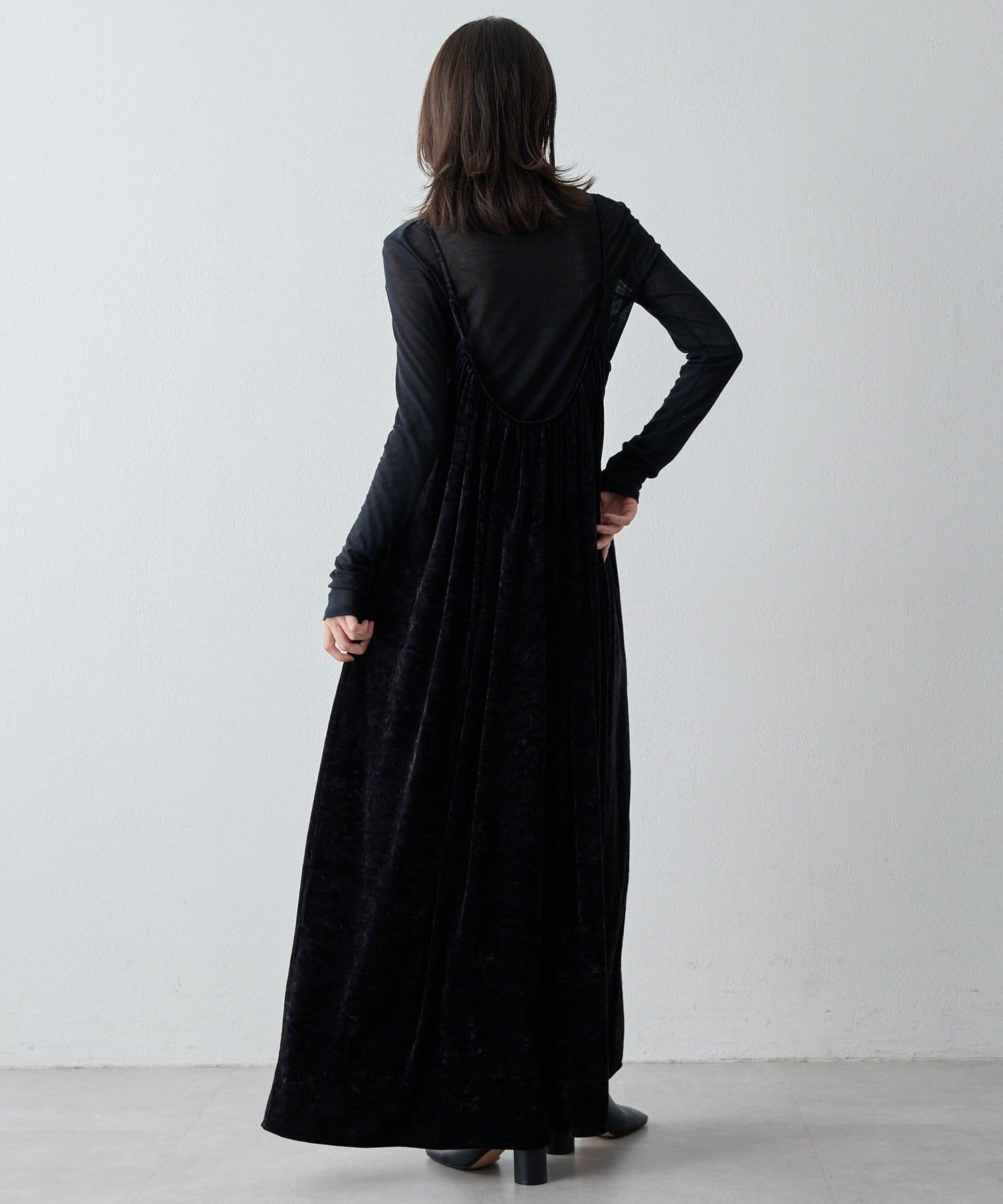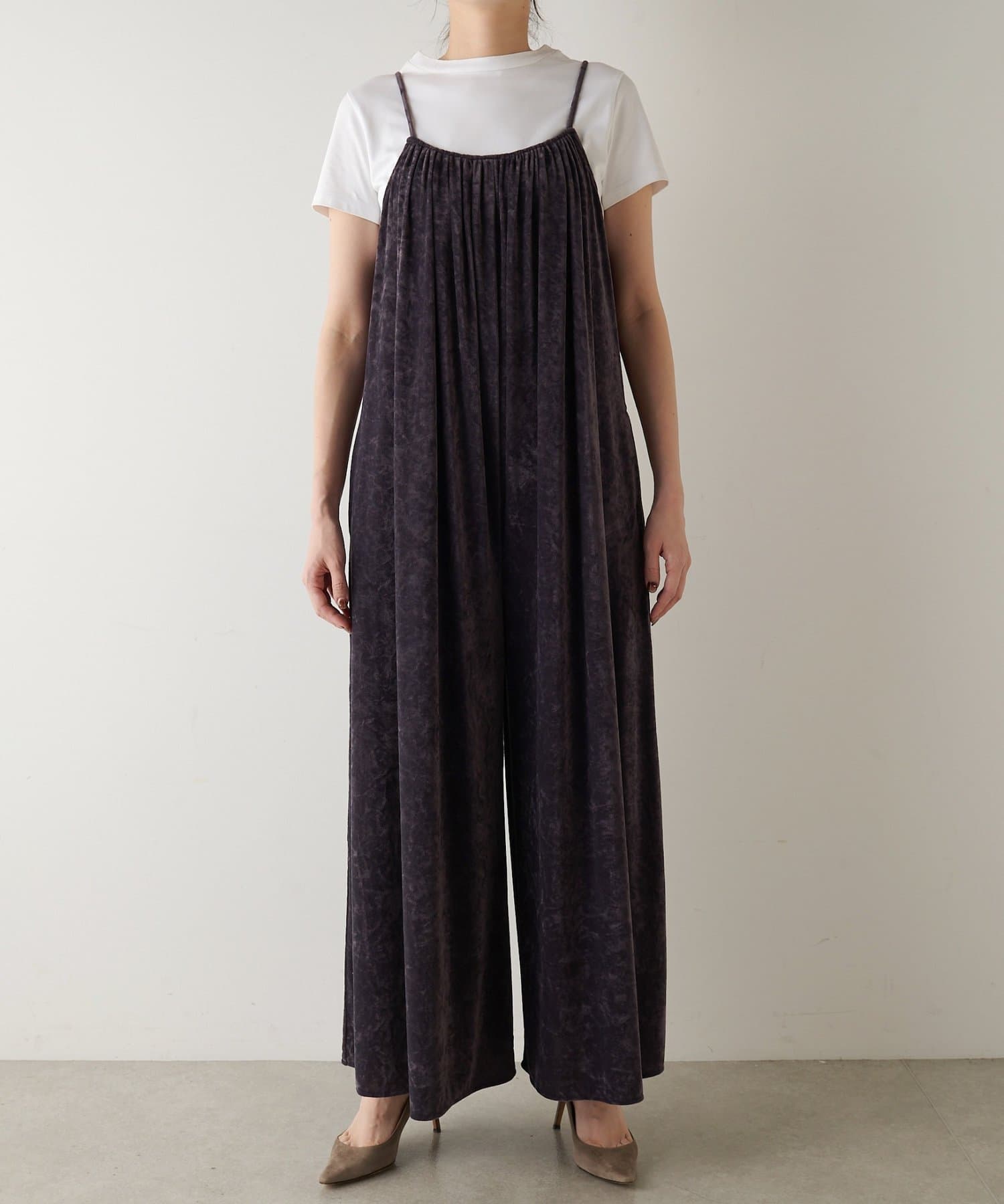 ■表面にクラッシュ加工を施したベロア素材を使用したキャミソールコンビネゾン。