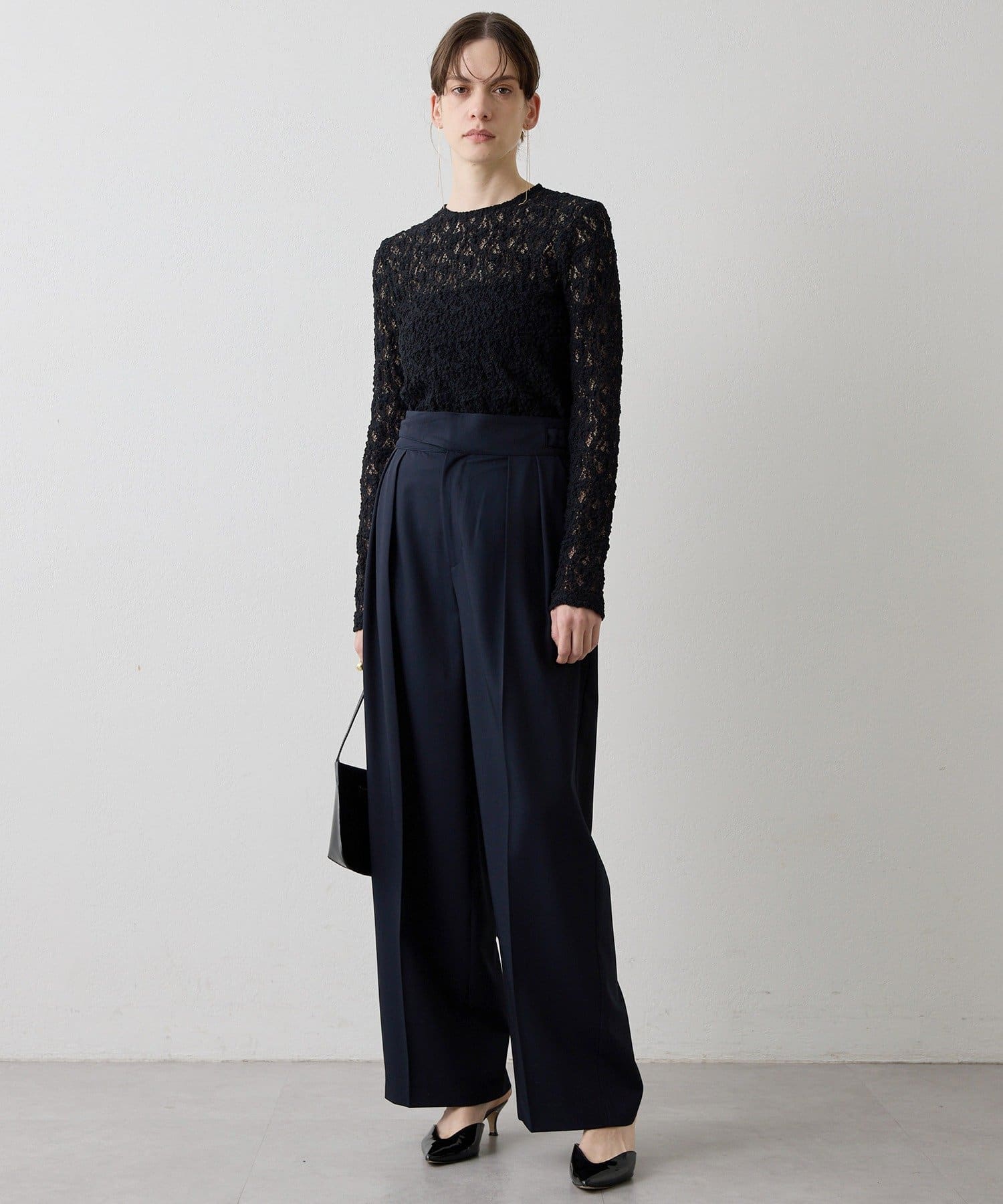■フロントのダブルタックが腰周りカバーしつつ、ヒップはすっきりとしたシルエットに。