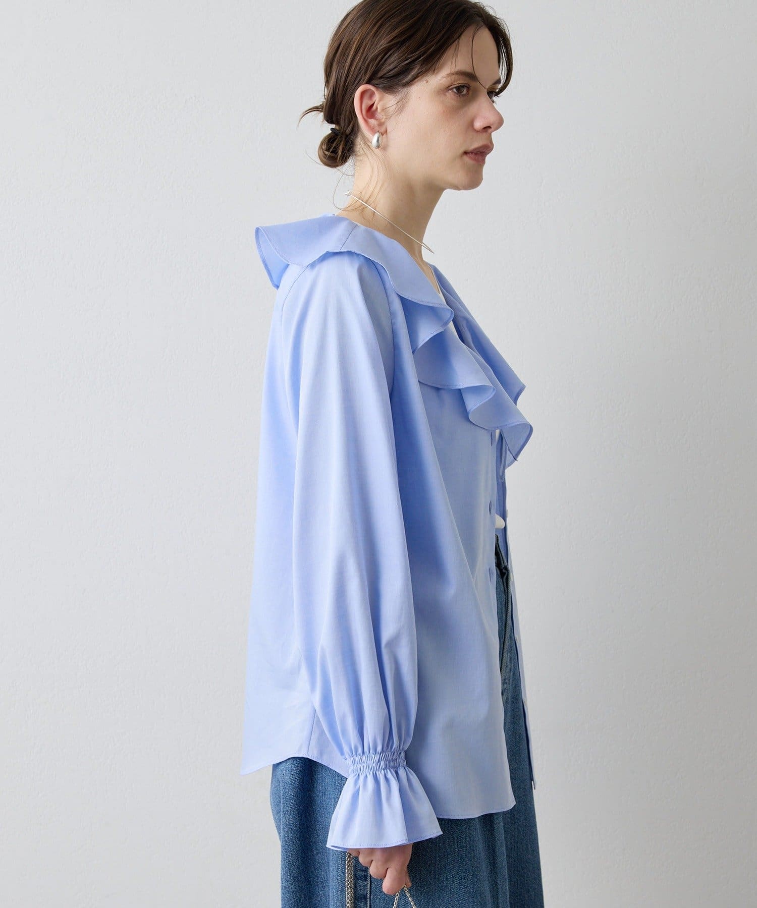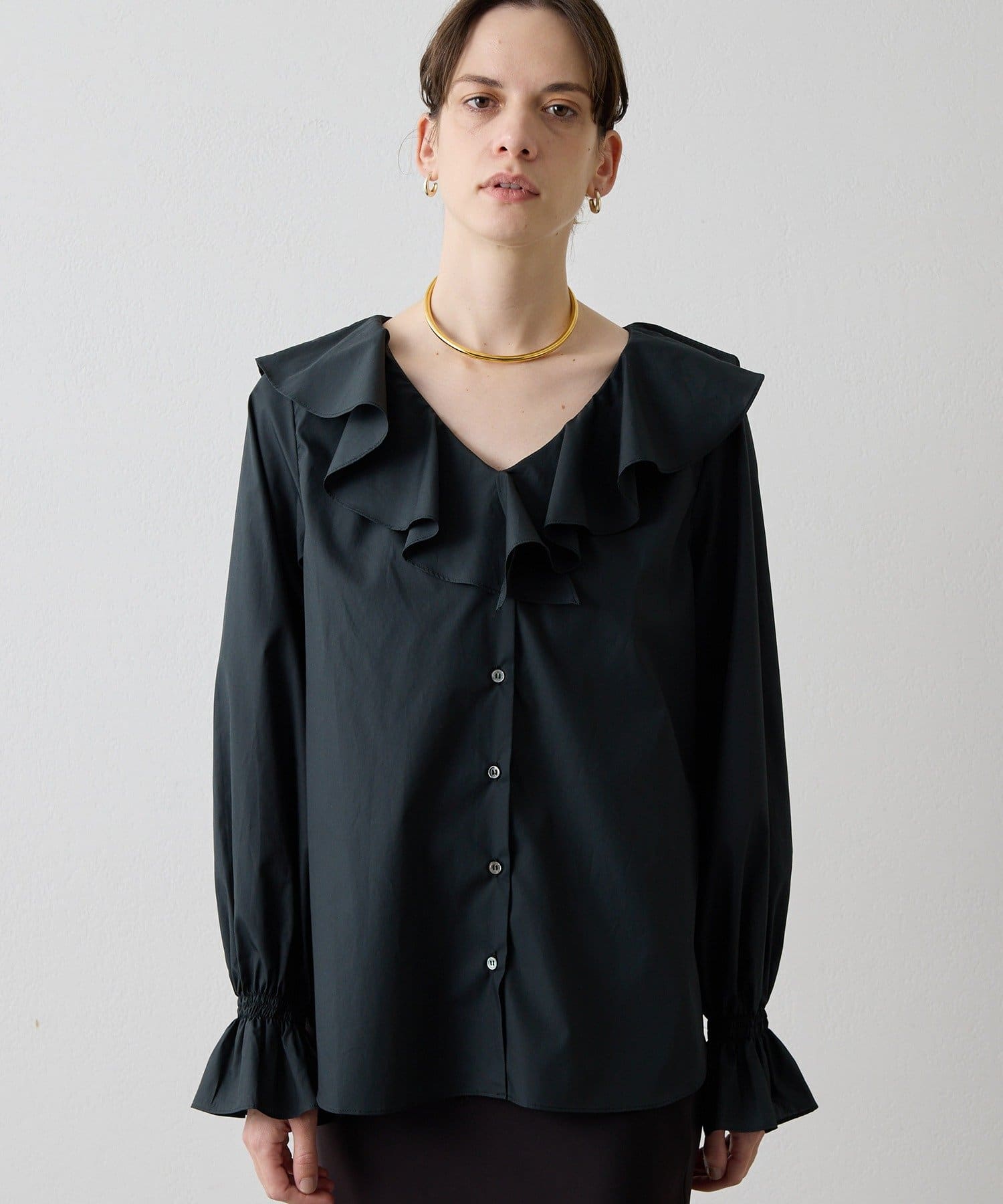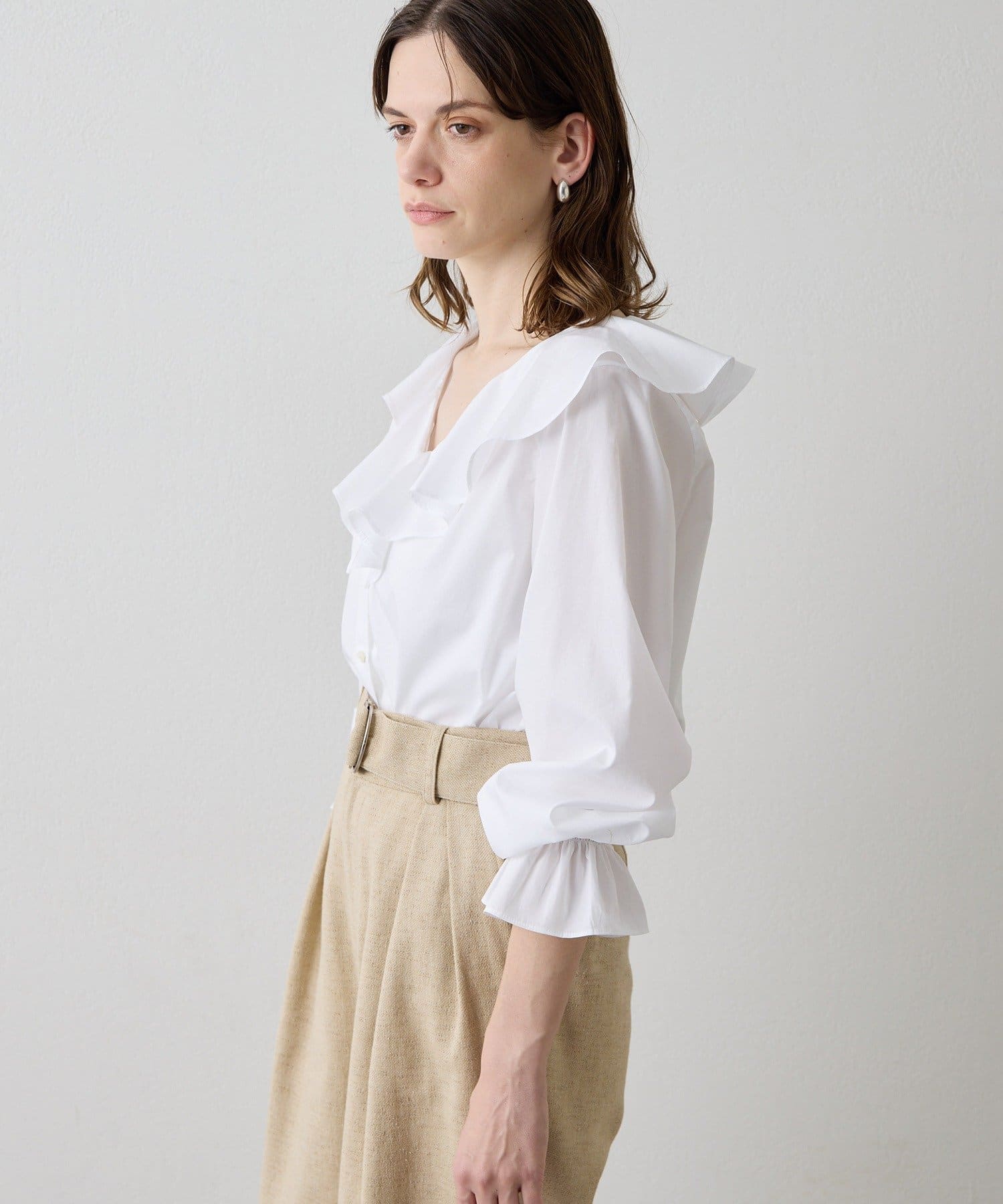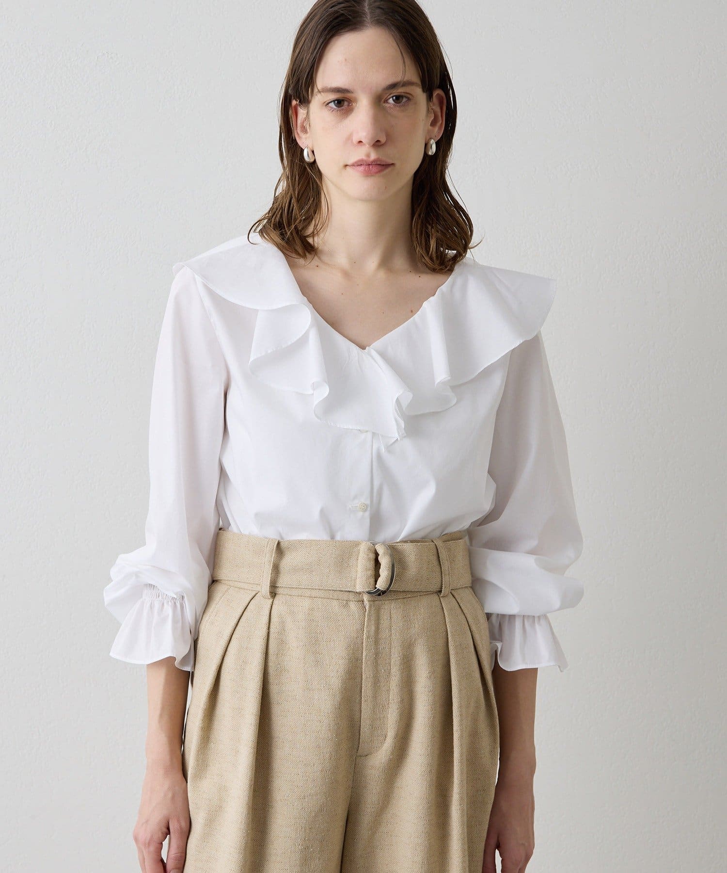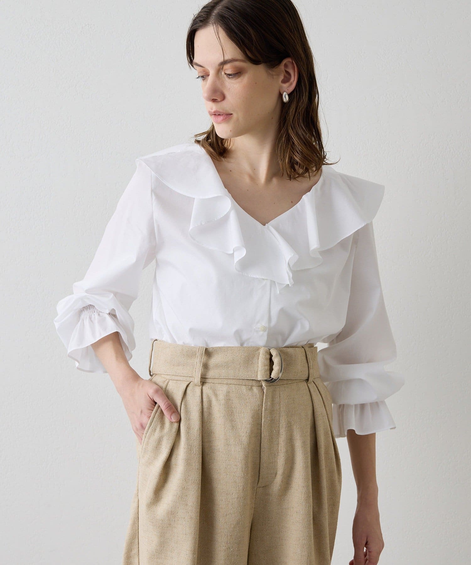 女性らしさを引き立てる、上質ラッフルカラーブラウス