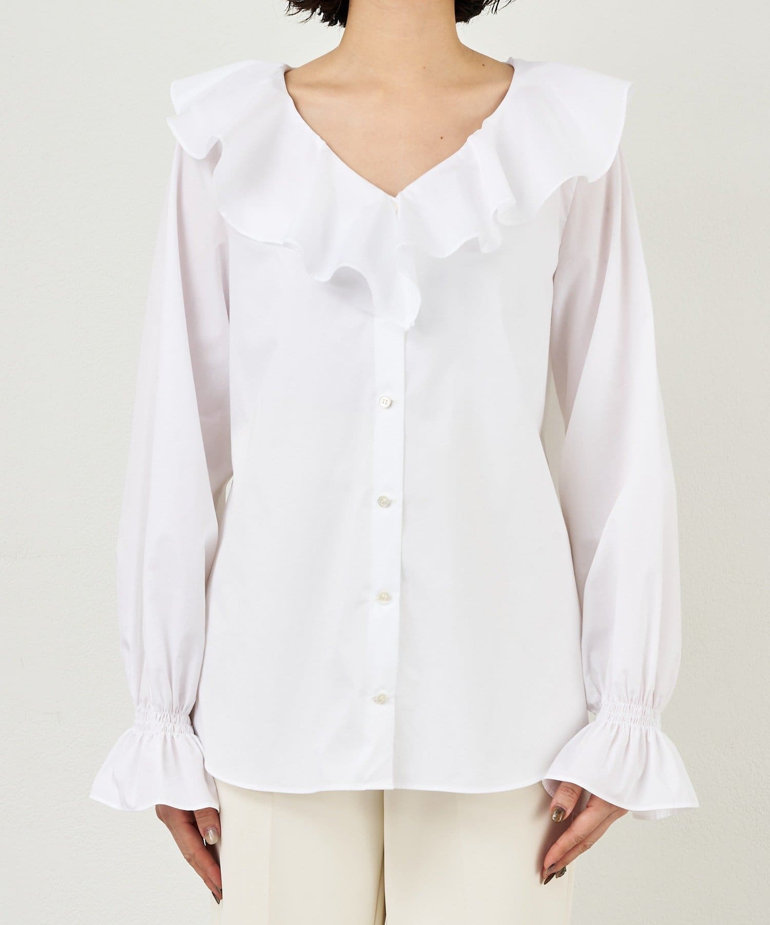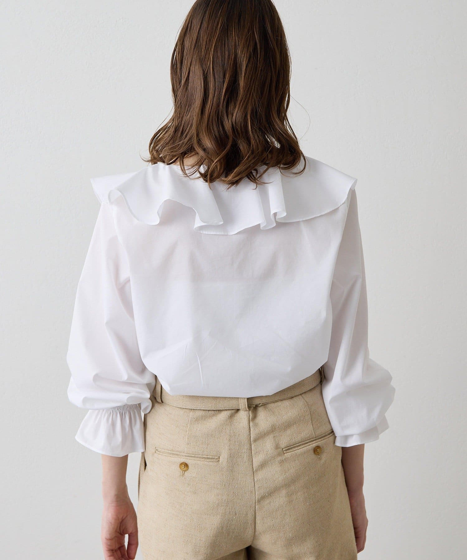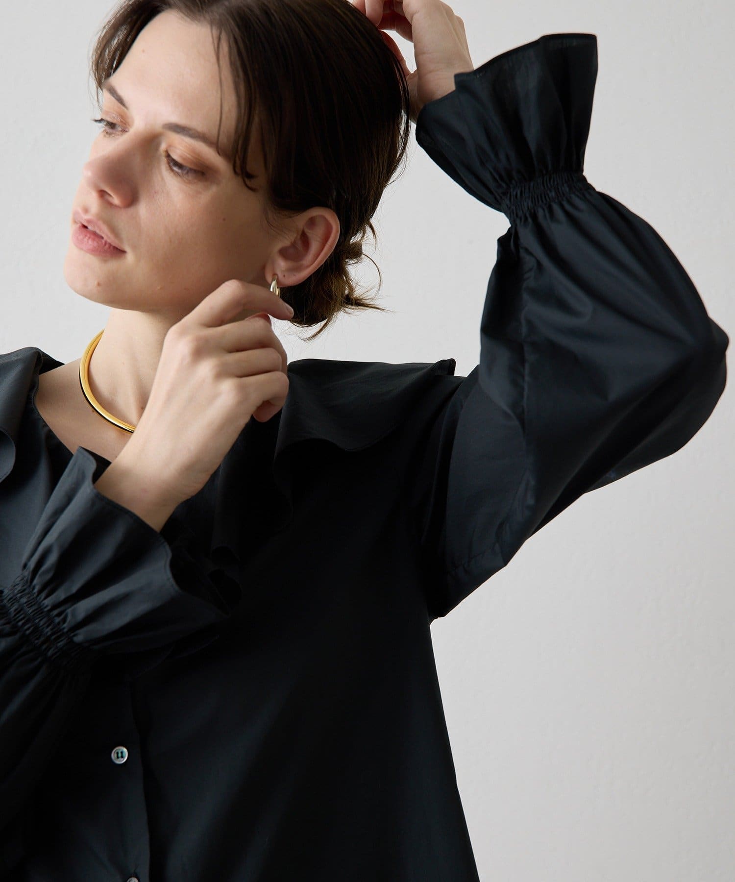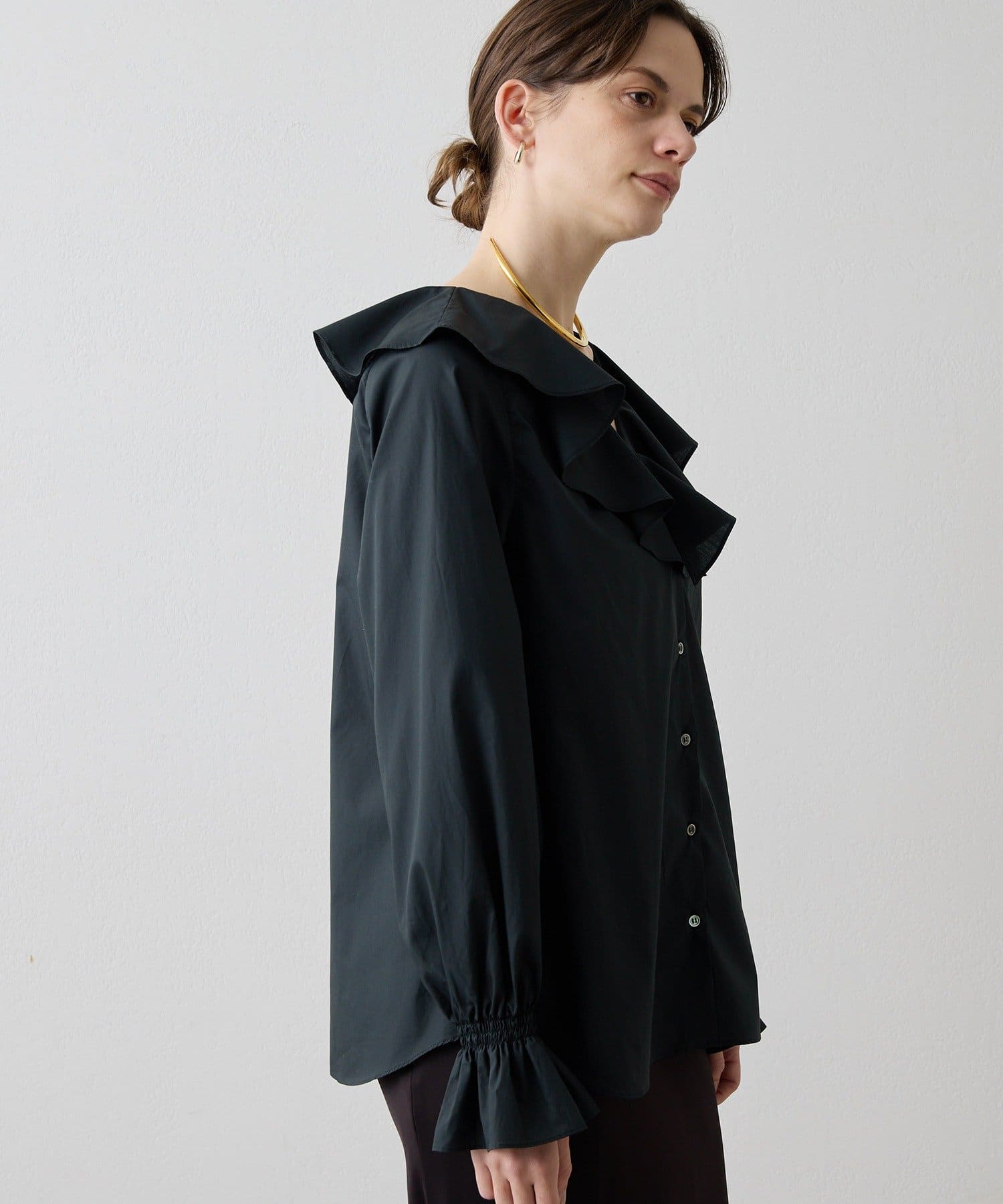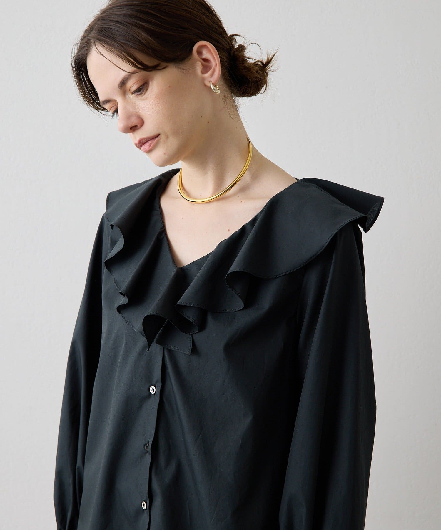 女性らしさを引き立てる、上質ラッフルカラーブラウス