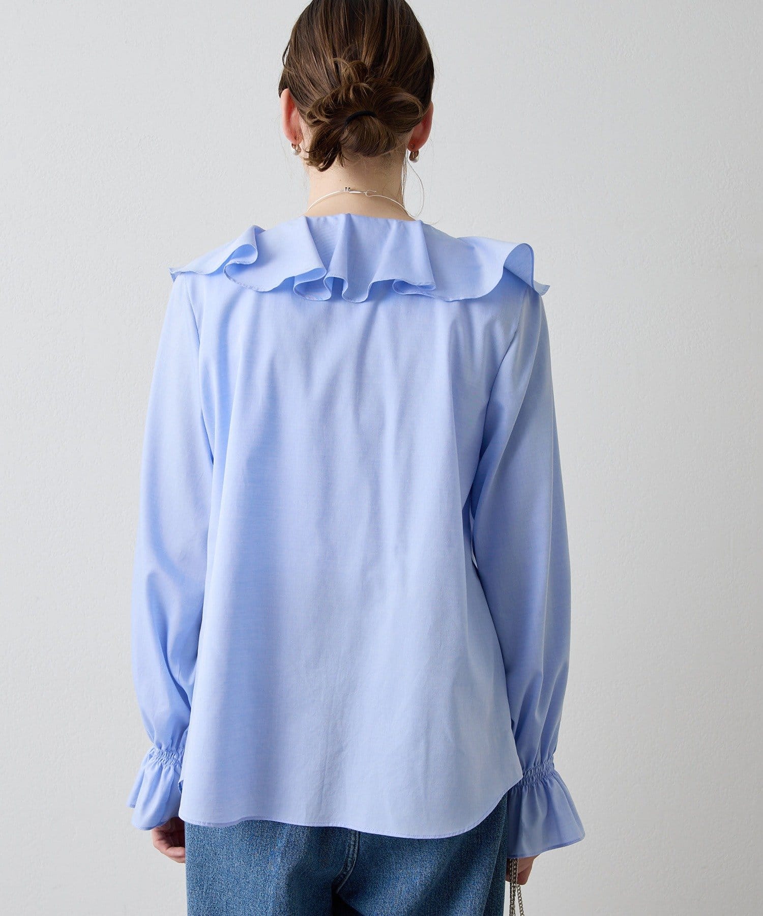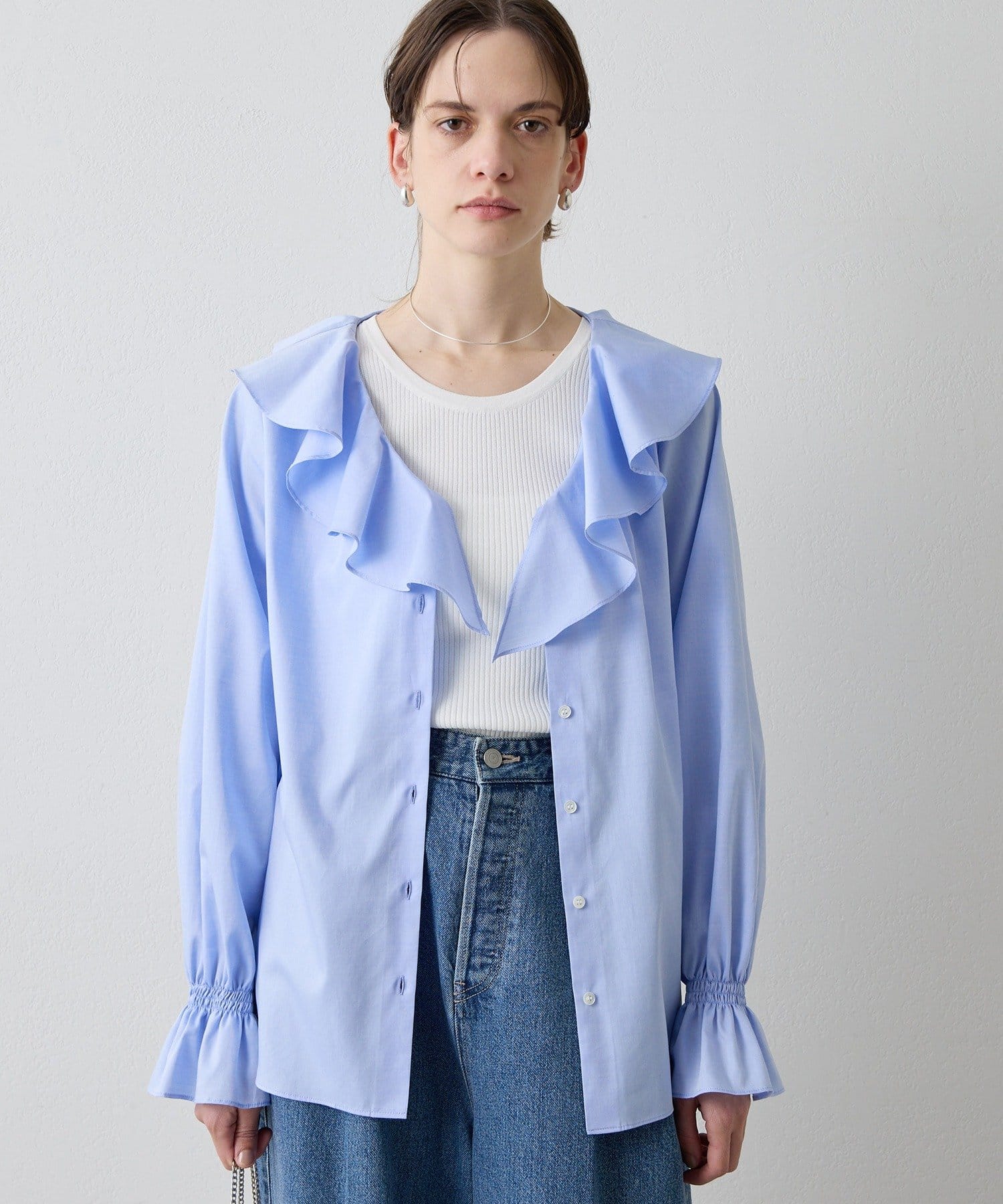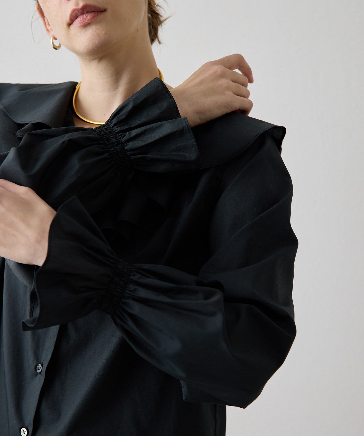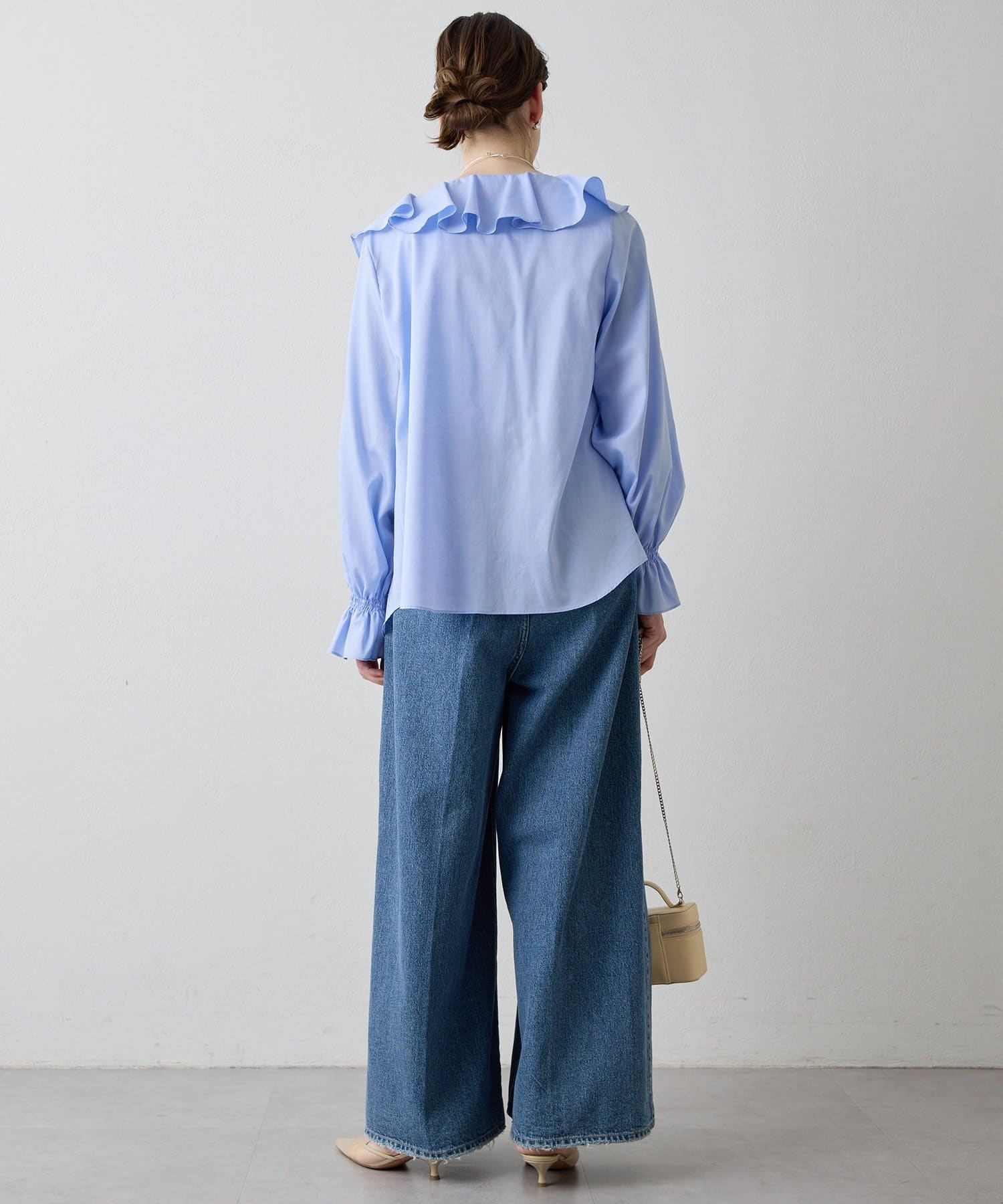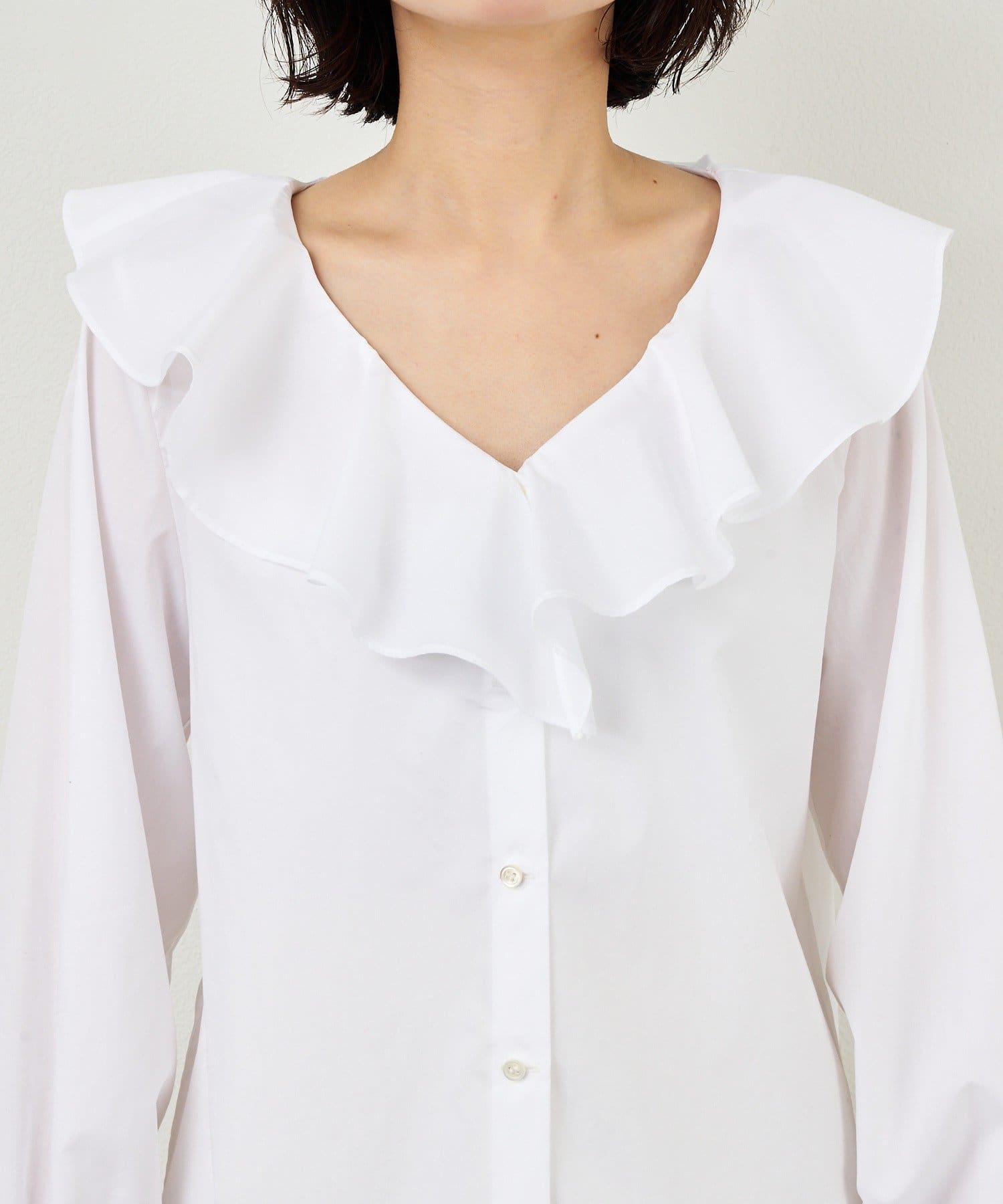 女性らしさを引き立てる、上質ラッフルカラーブラウス