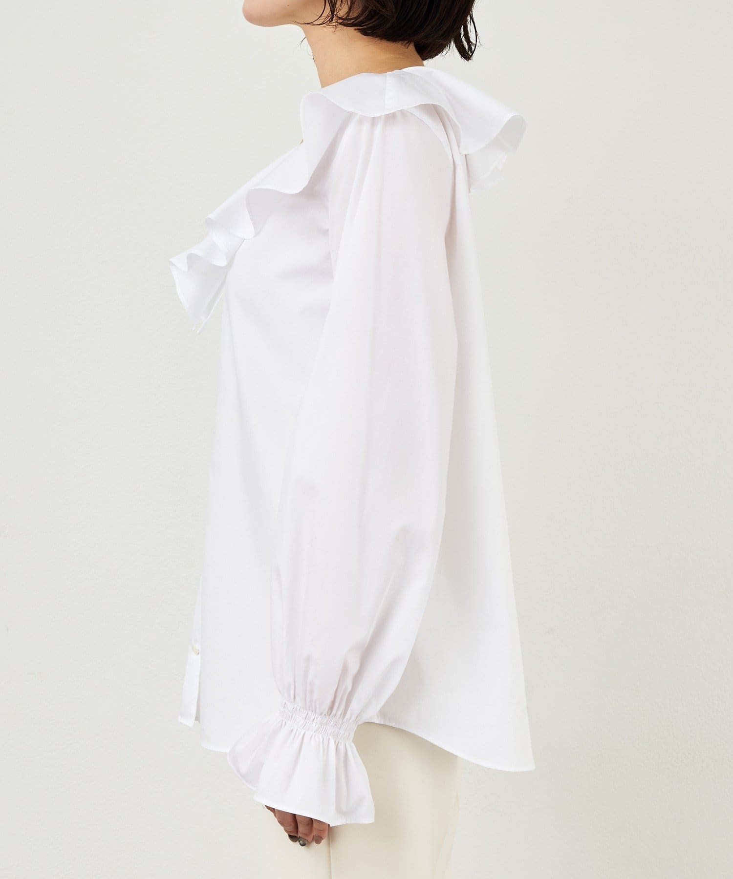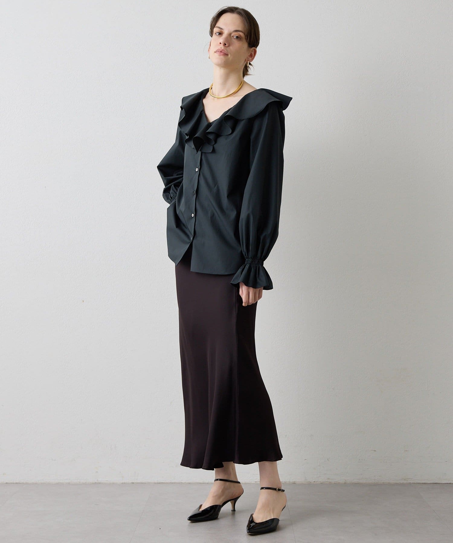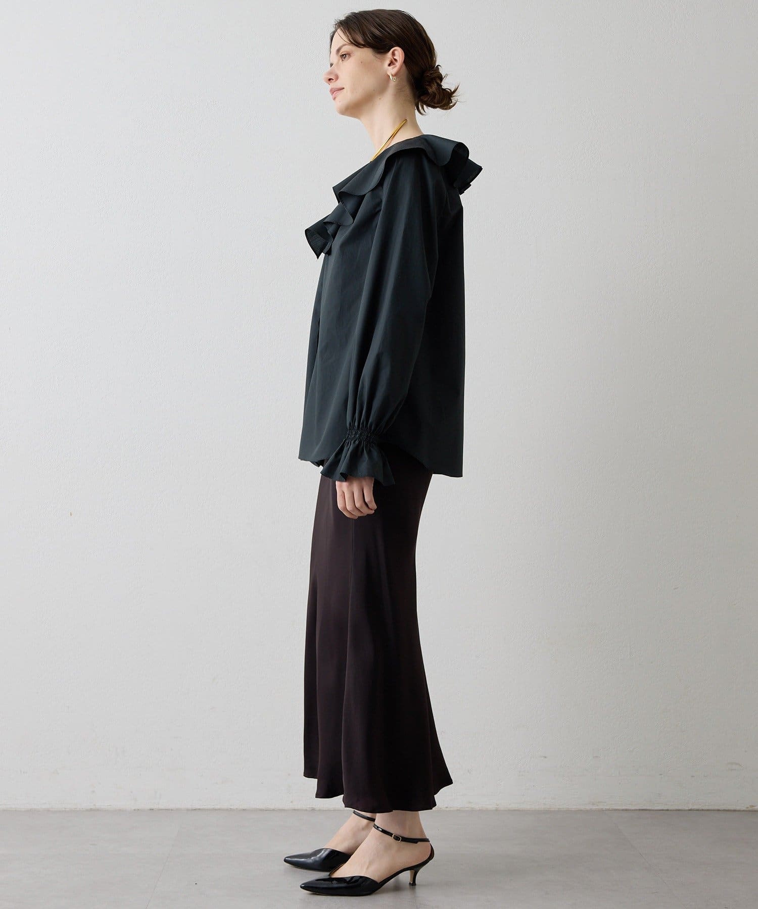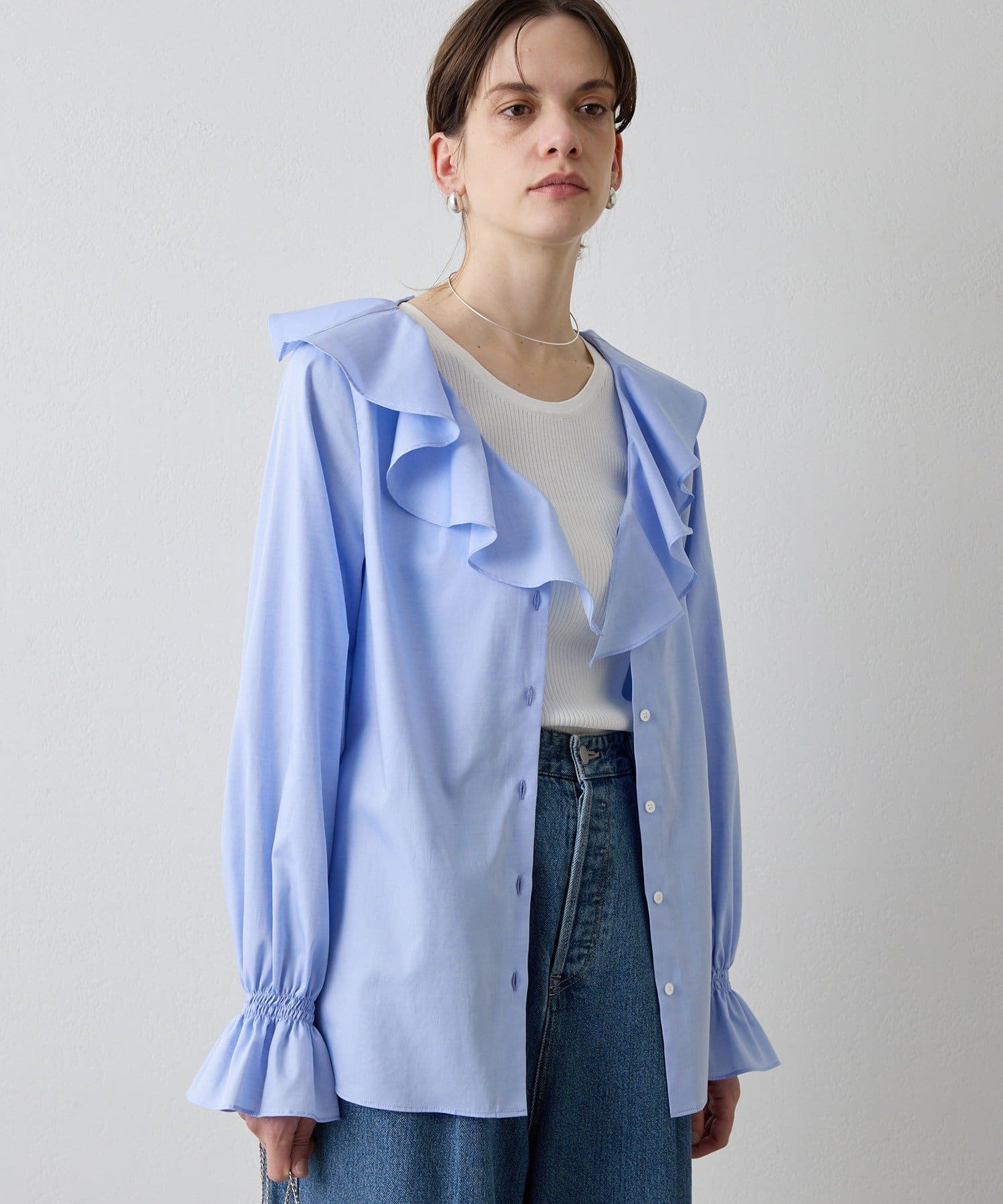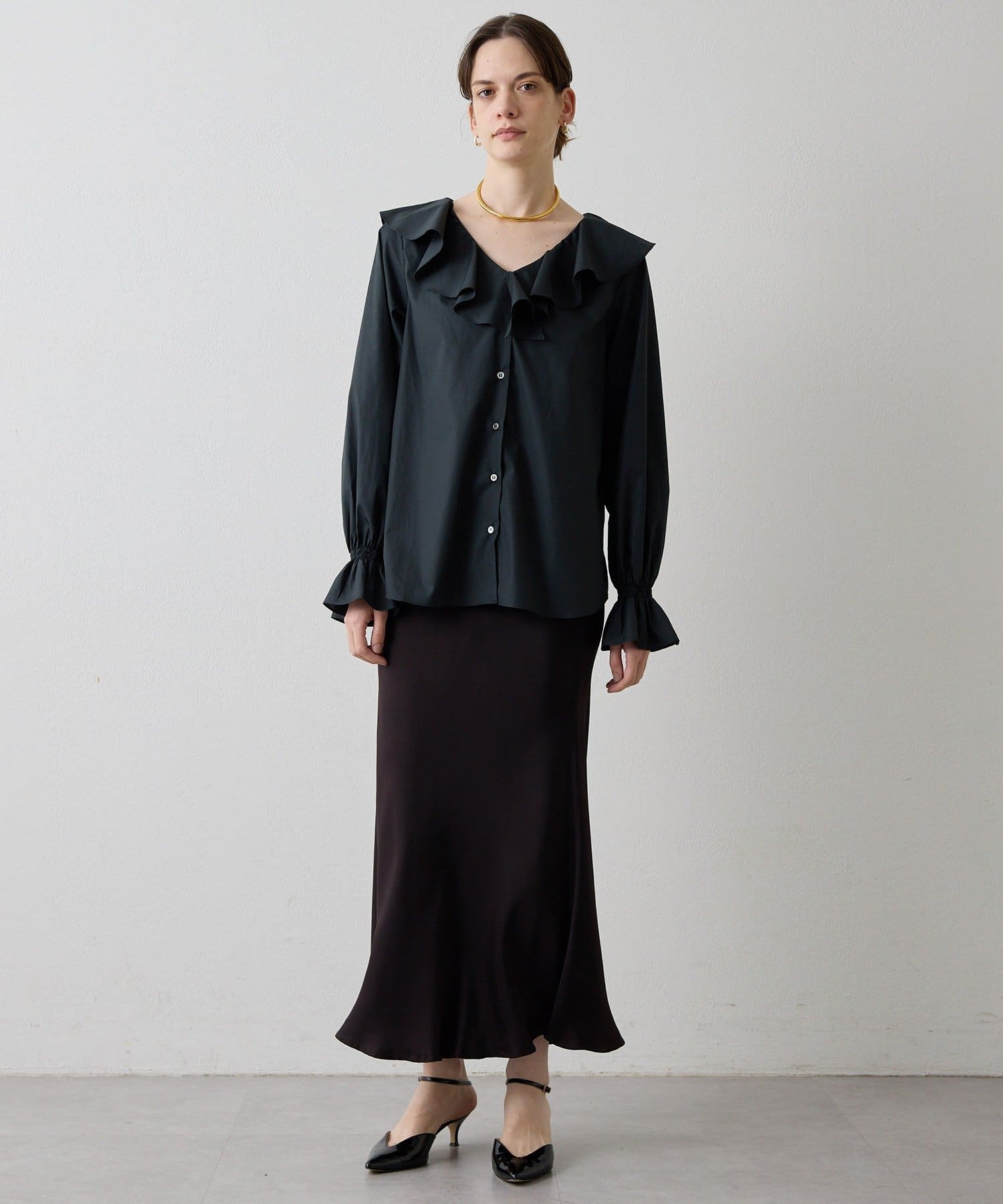 女性らしさを引き立てる、上質ラッフルカラーブラウス