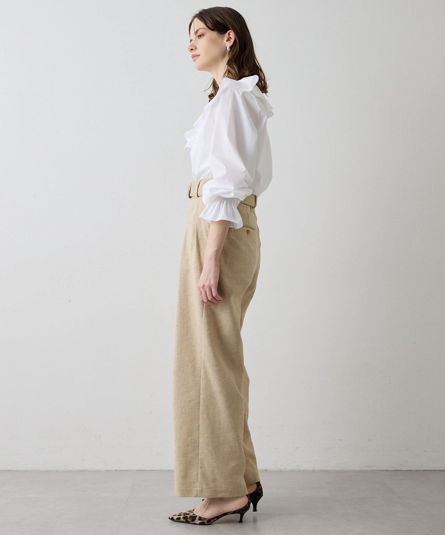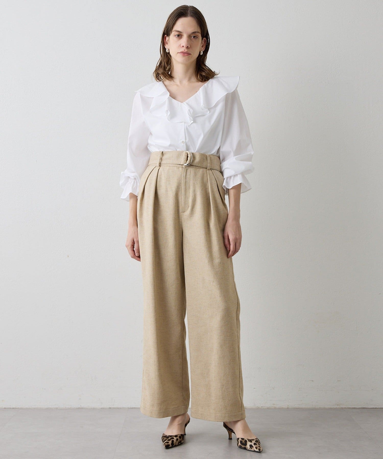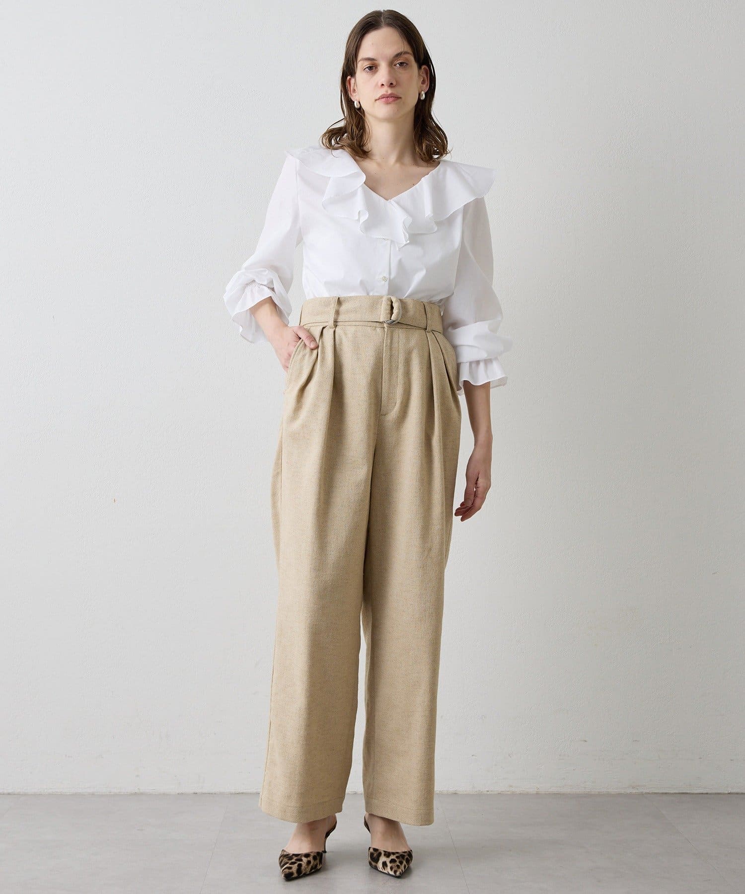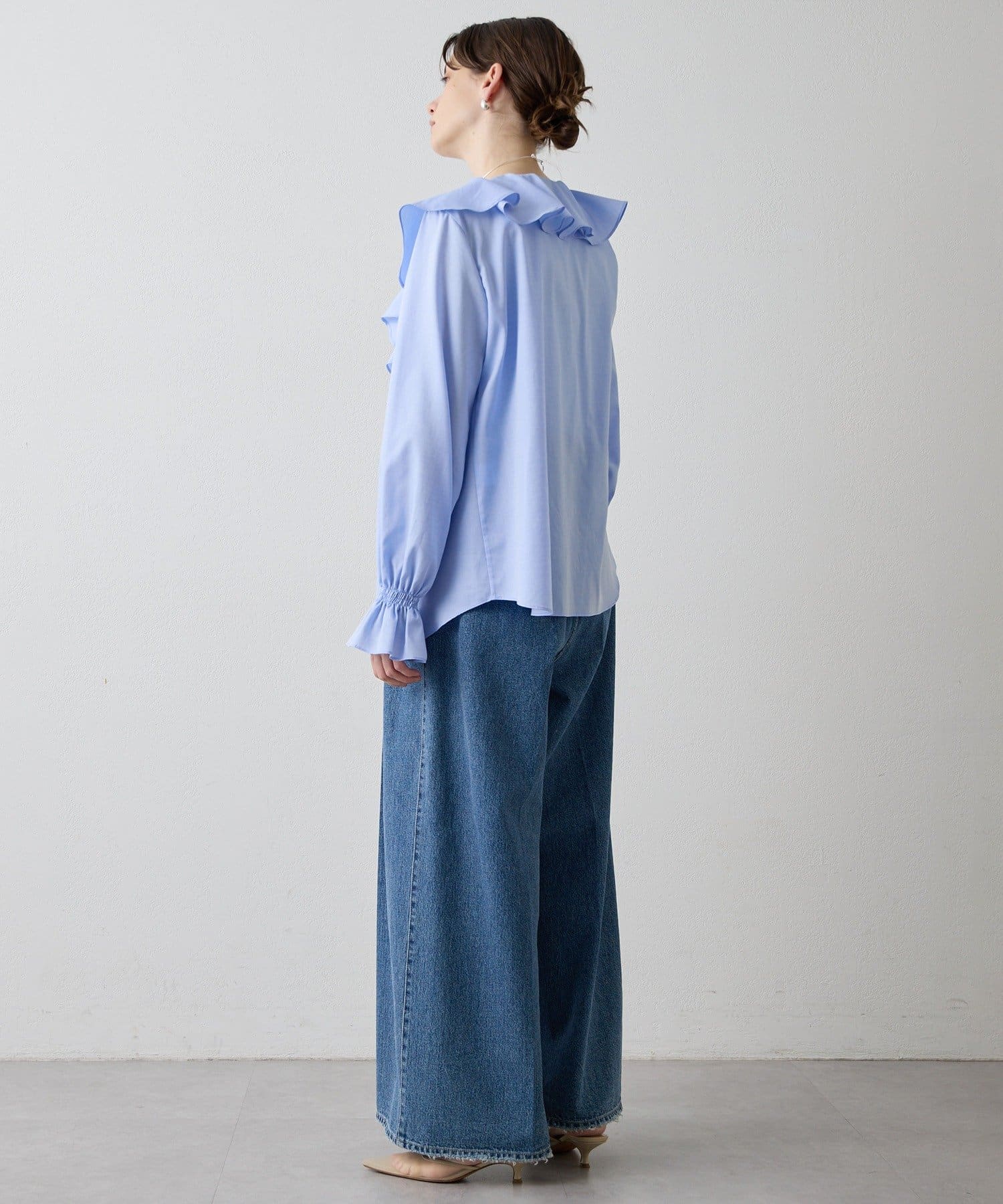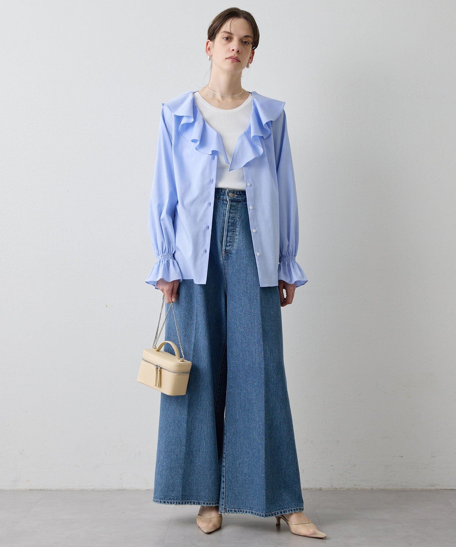 女性らしさを引き立てる、上質ラッフルカラーブラウス