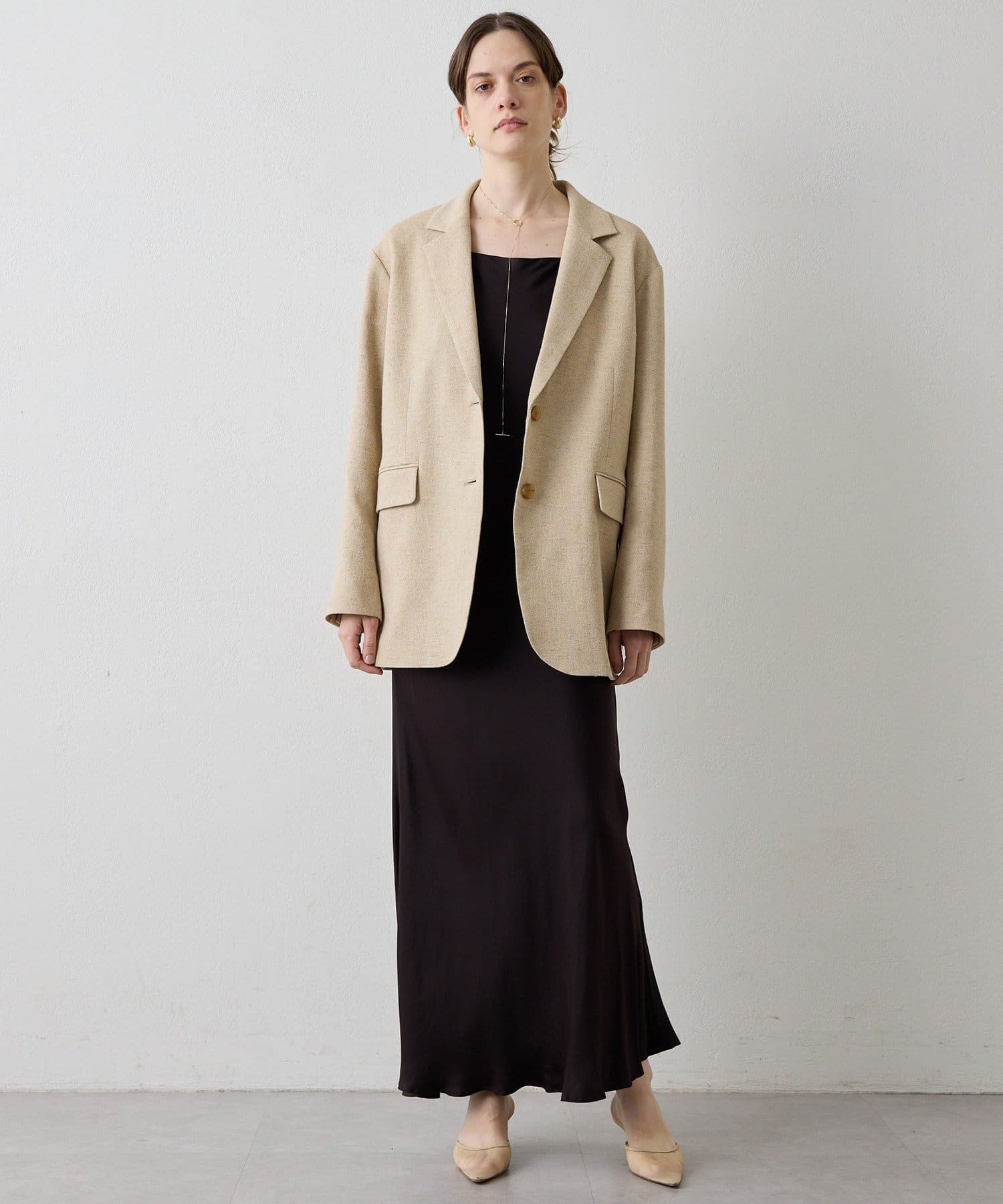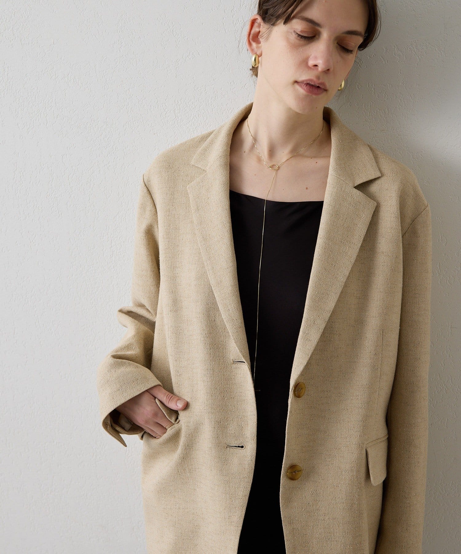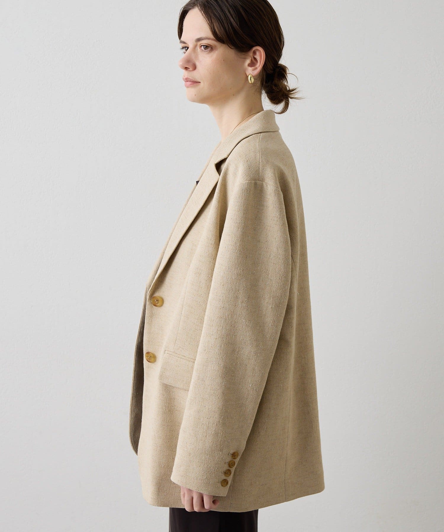 ■さらりと羽織ってもこなれ感の出る、肩を落としたオーバーシルエット。