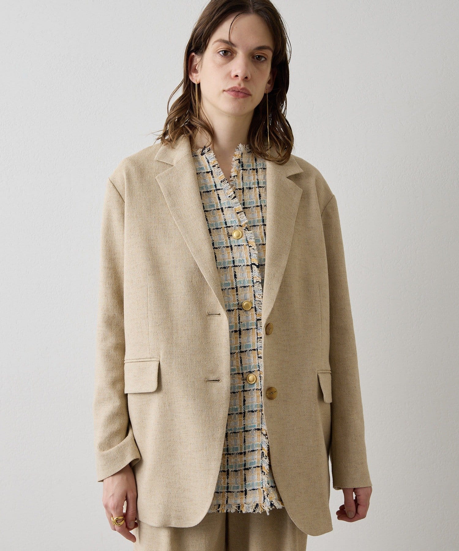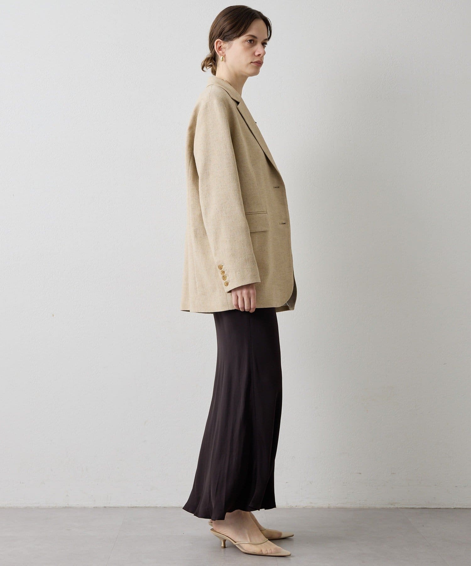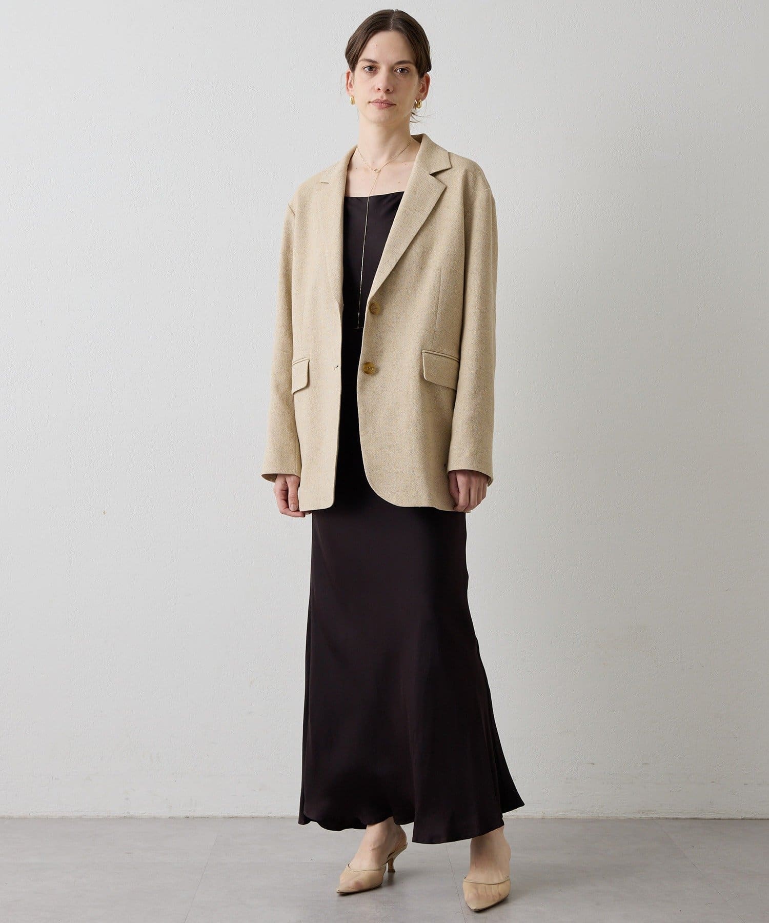 ■さらりと羽織ってもこなれ感の出る、肩を落としたオーバーシルエット。