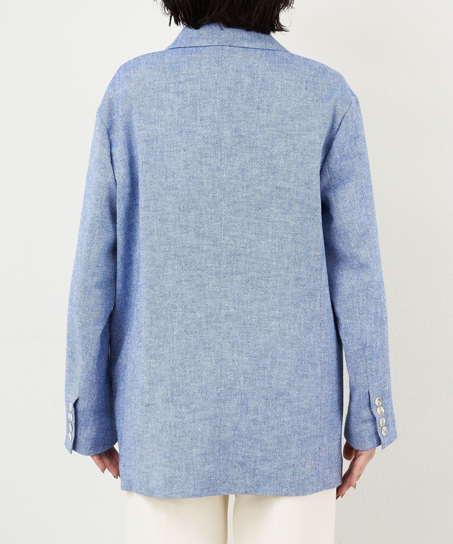 ■清涼感のあるドライタッチなダンガリー素材で仕立てたオーバージャケット。