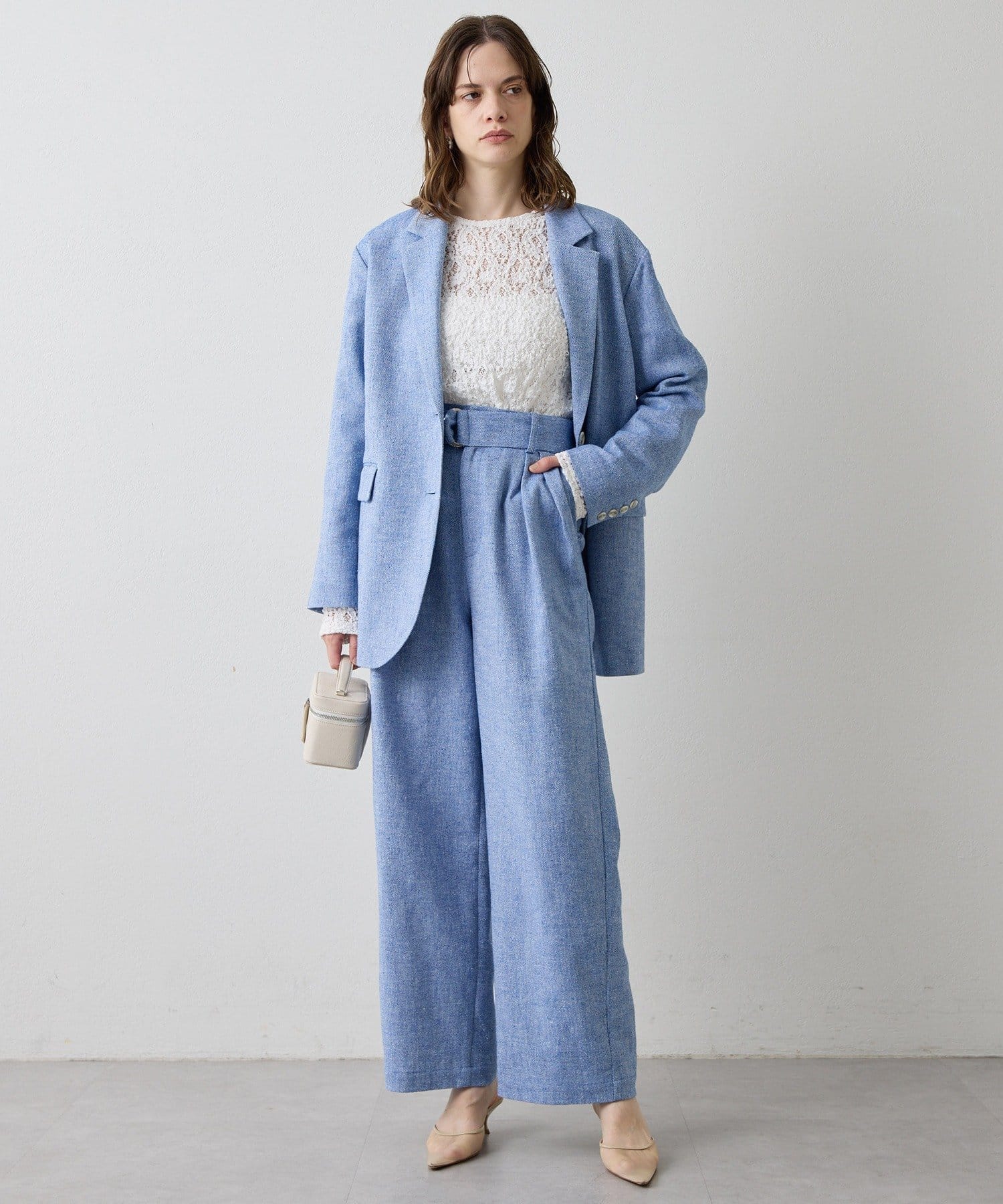 ■同シリーズのネップダンガリーベルト付きワイドパンツ(ブランド品番:DNZ1061102A0003)とのセットアップもおすすめ。