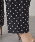 ■程よいサイズのドット柄が大人なタックギャザーパンツ。