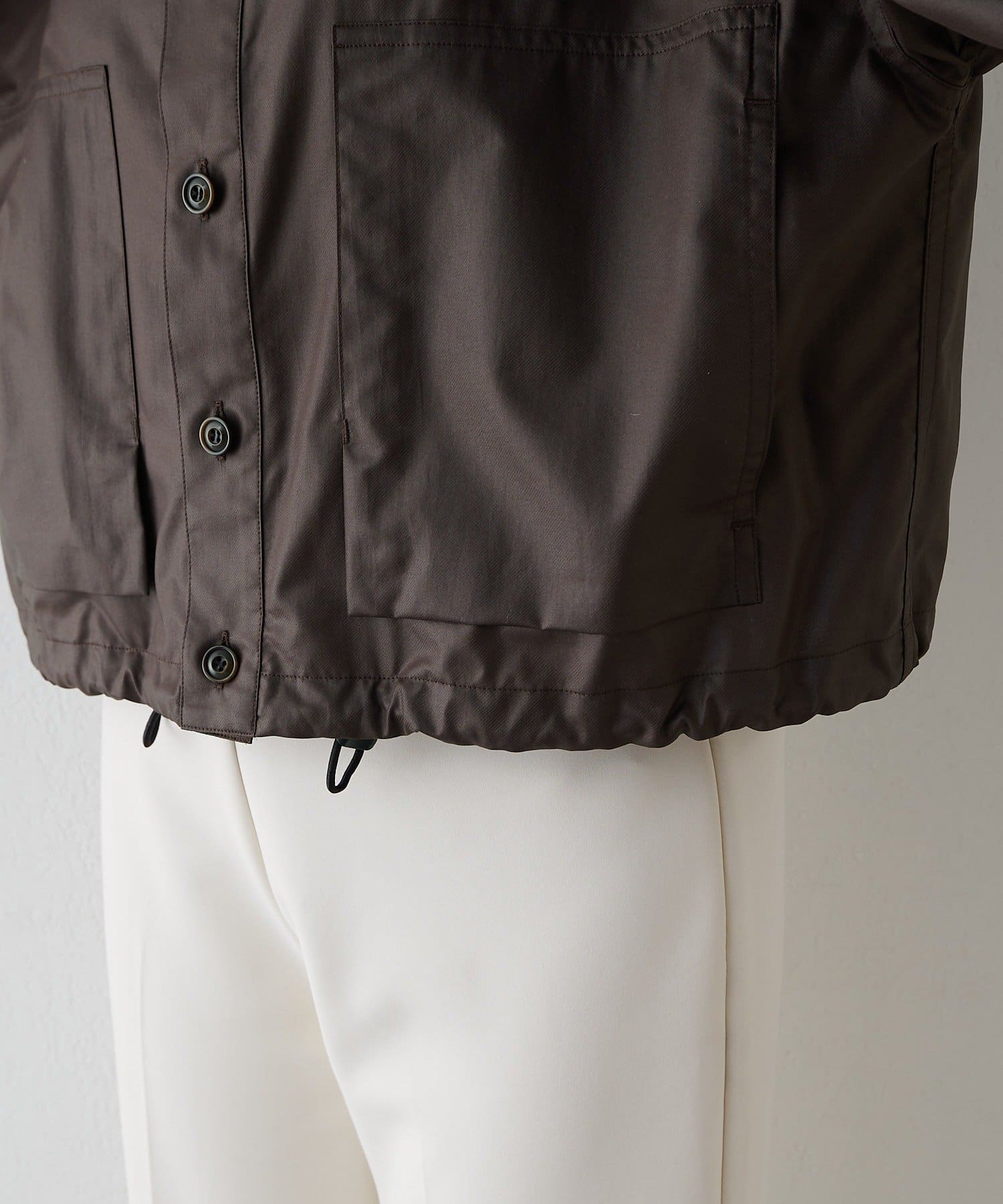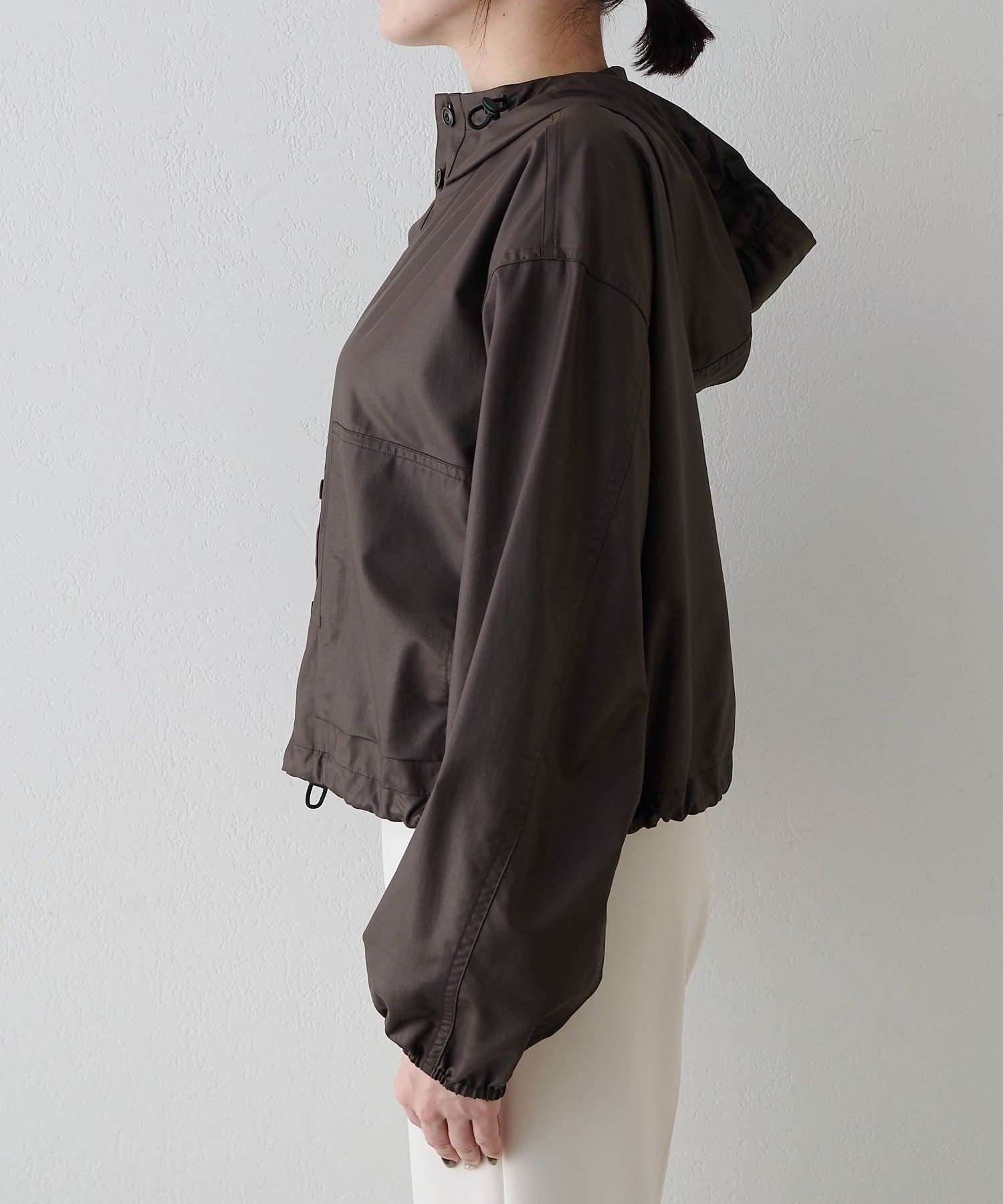 ■フード口と裾口はストッパー付のコードゴムを通し、お好みのシルエットに調整可能。