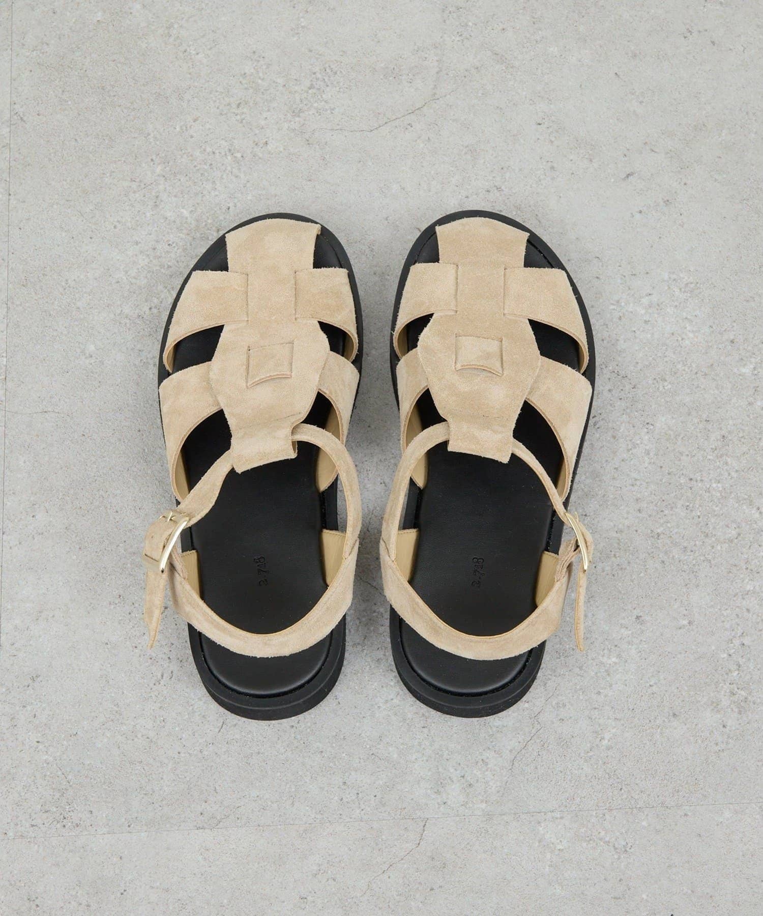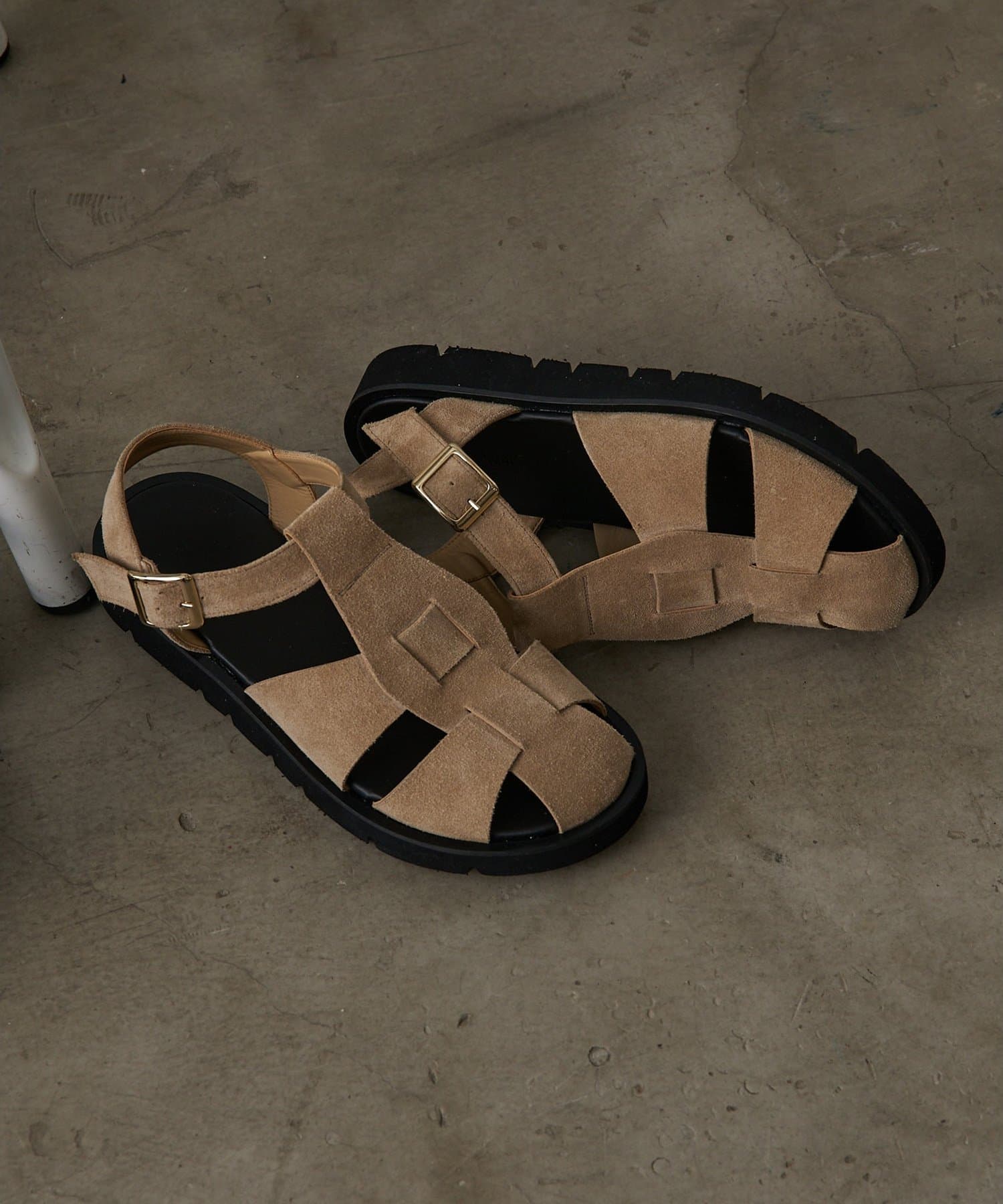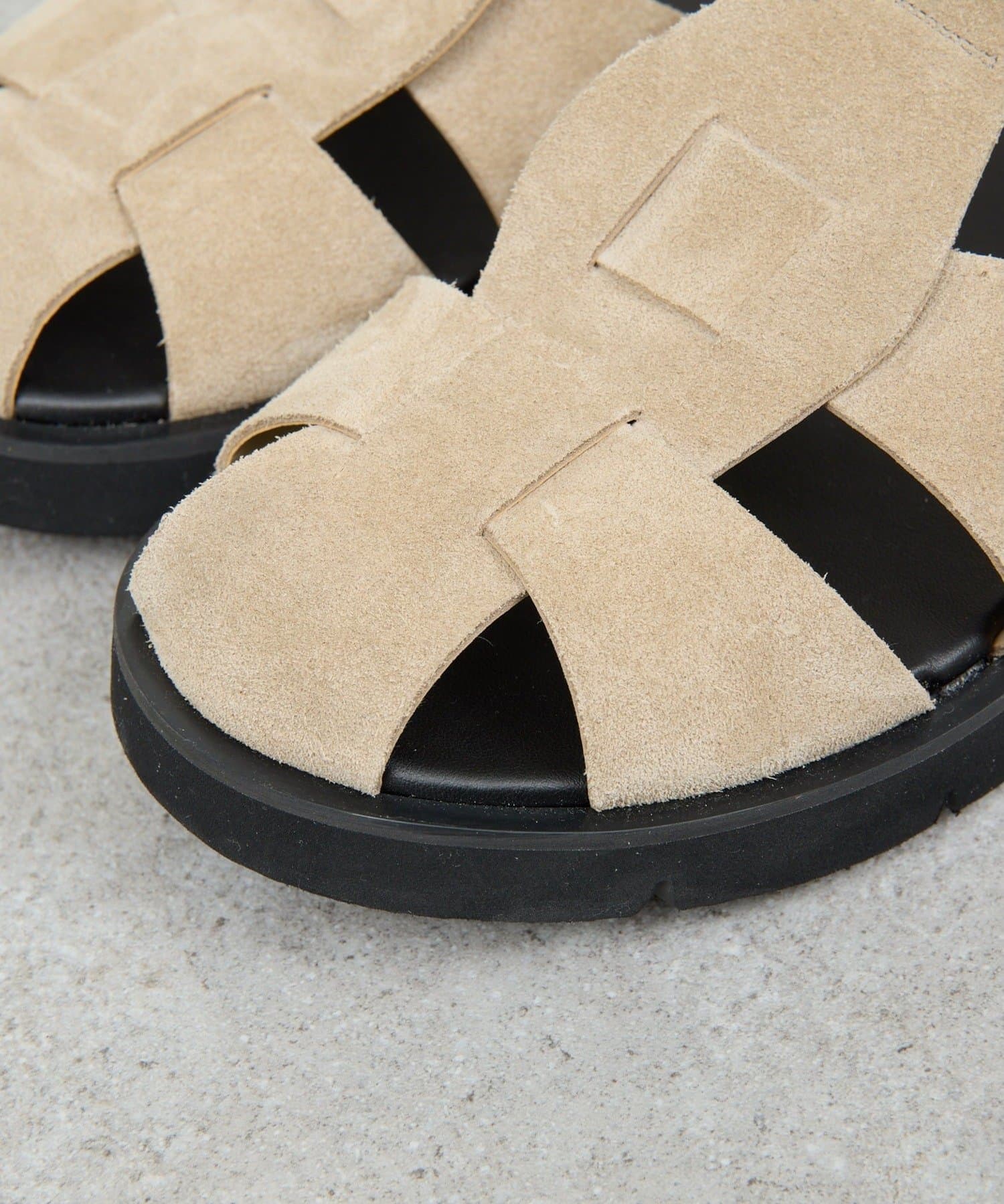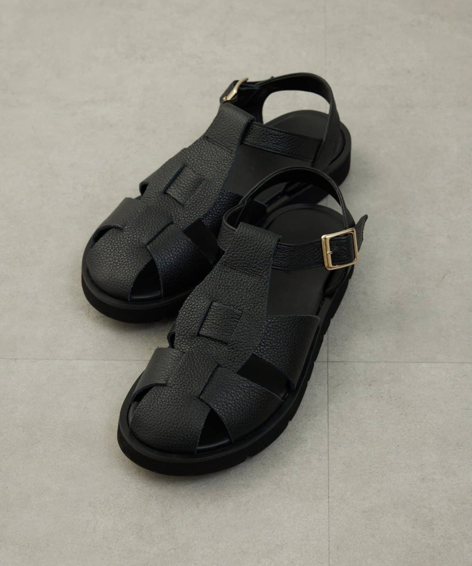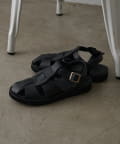 ■編み込まれたレザーと丸みのあるトゥが特徴のグルカサンダル。