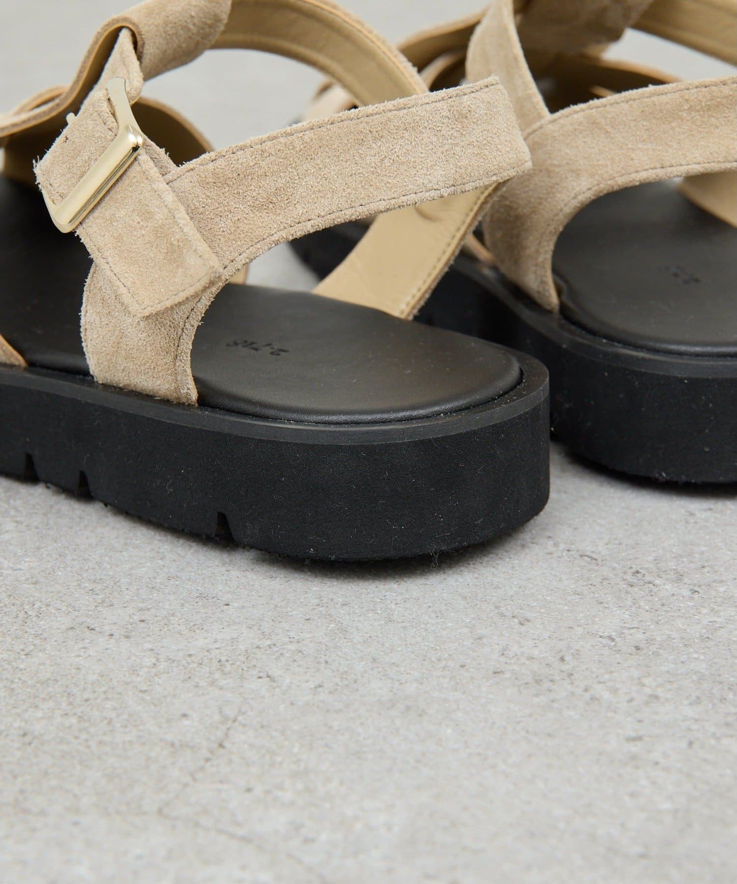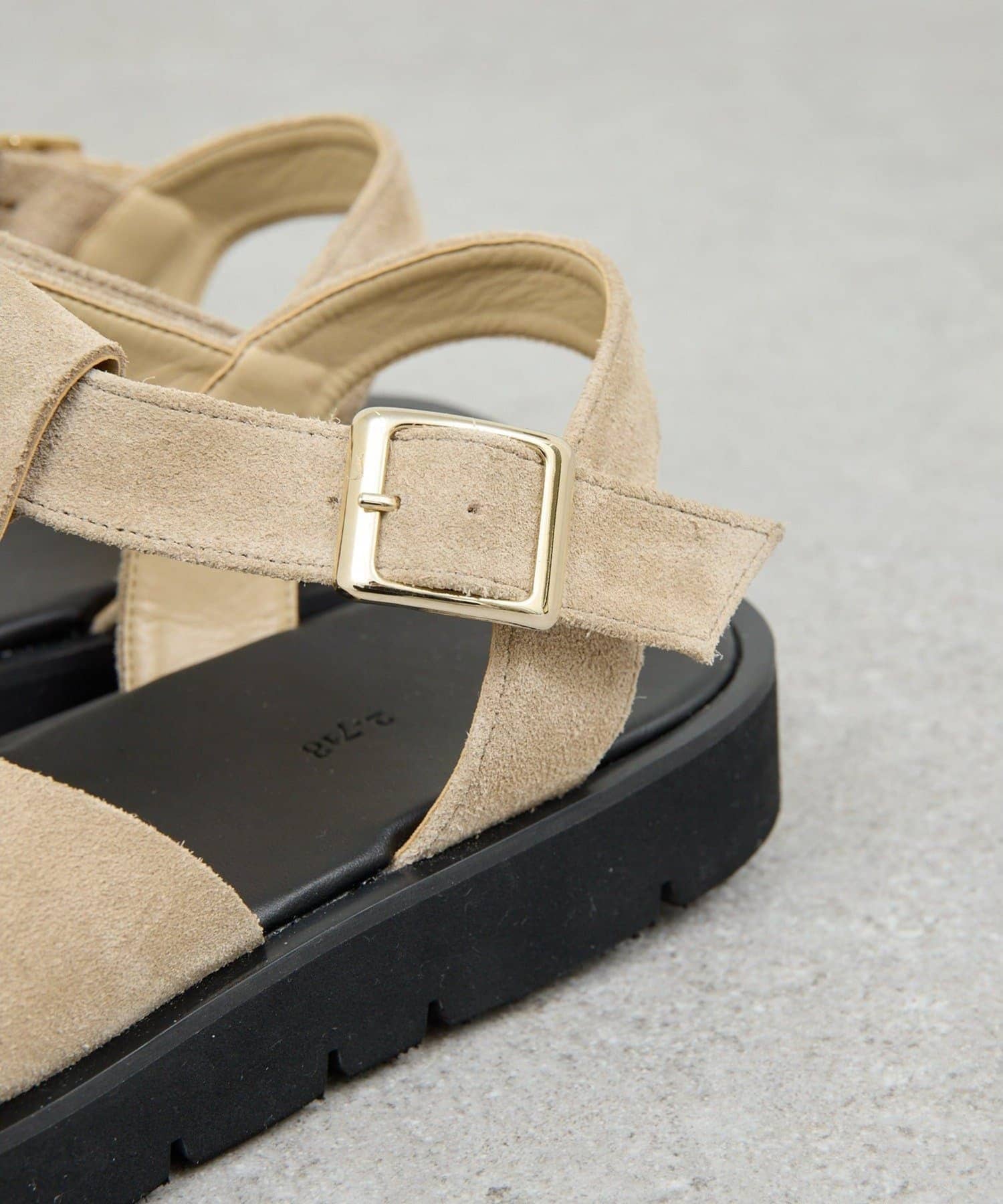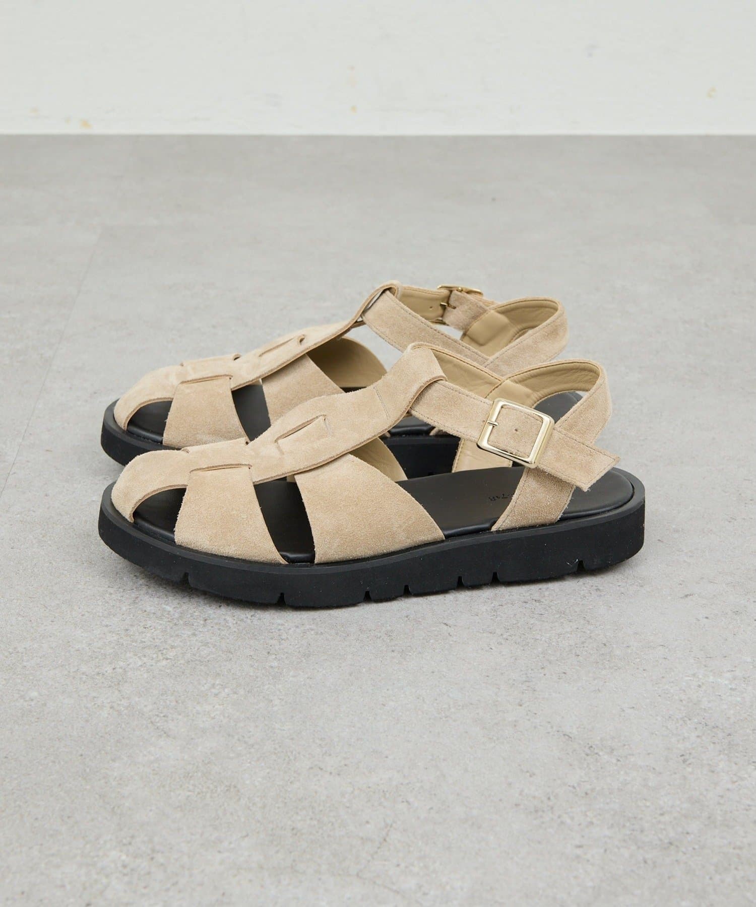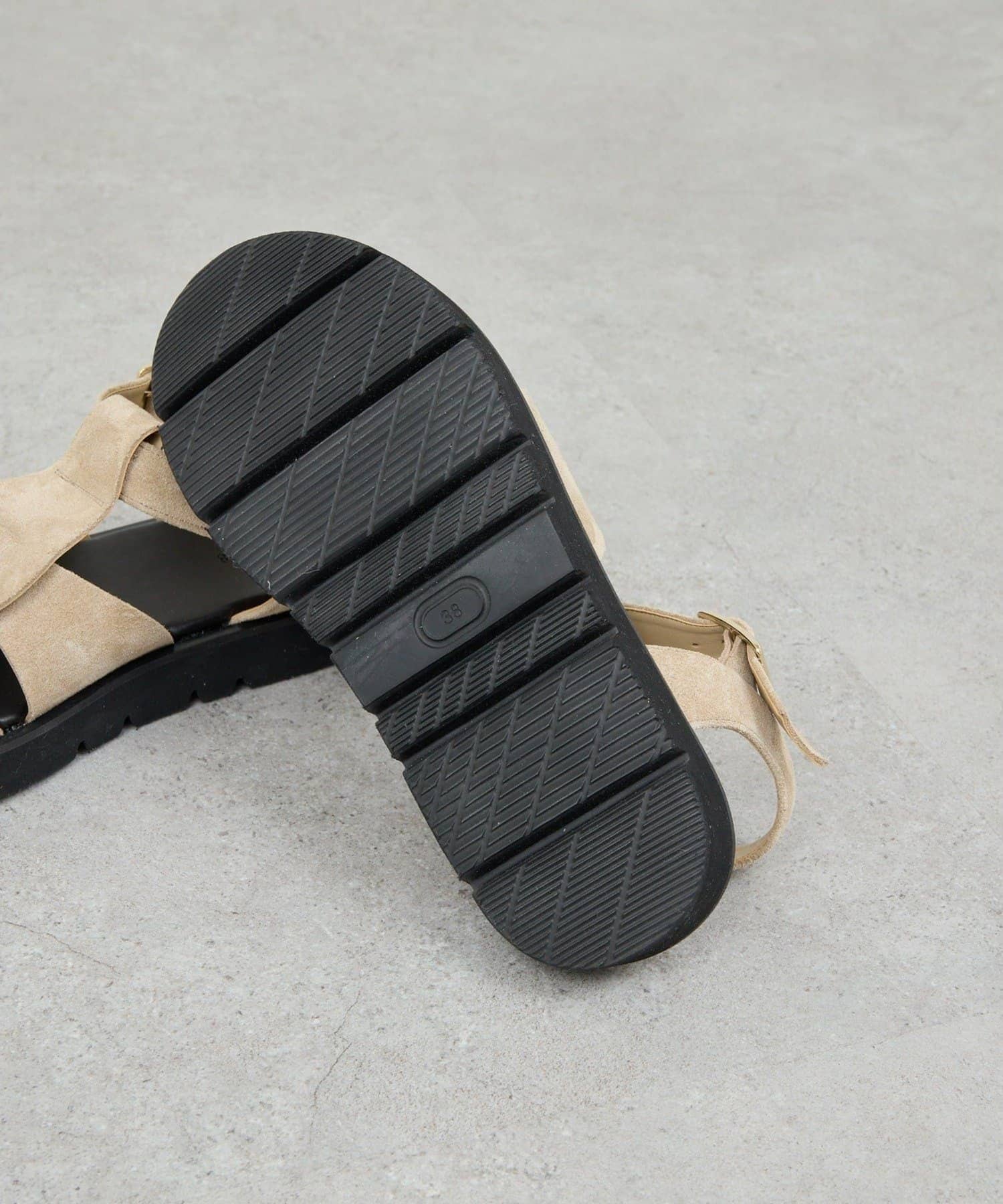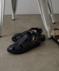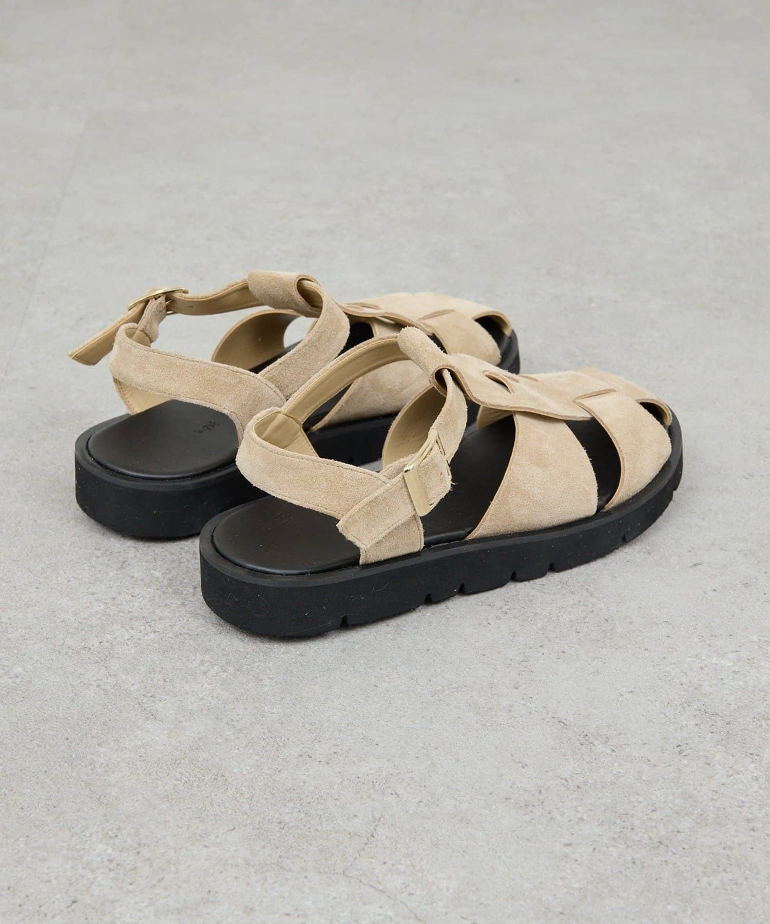■編み込まれたレザーと丸みのあるトゥが特徴のグルカサンダル。
