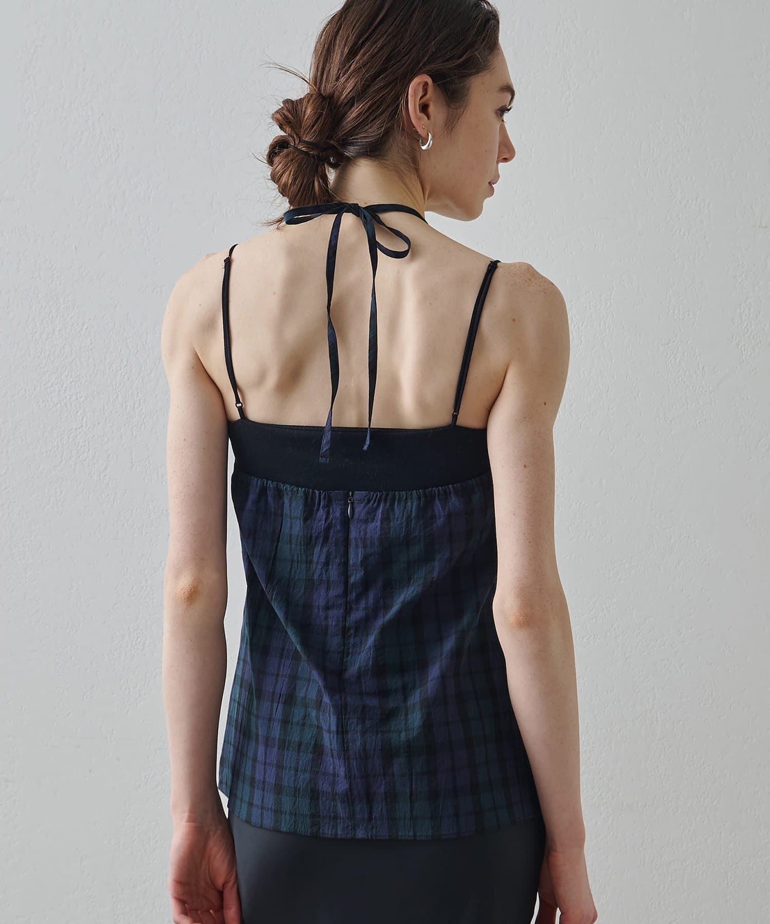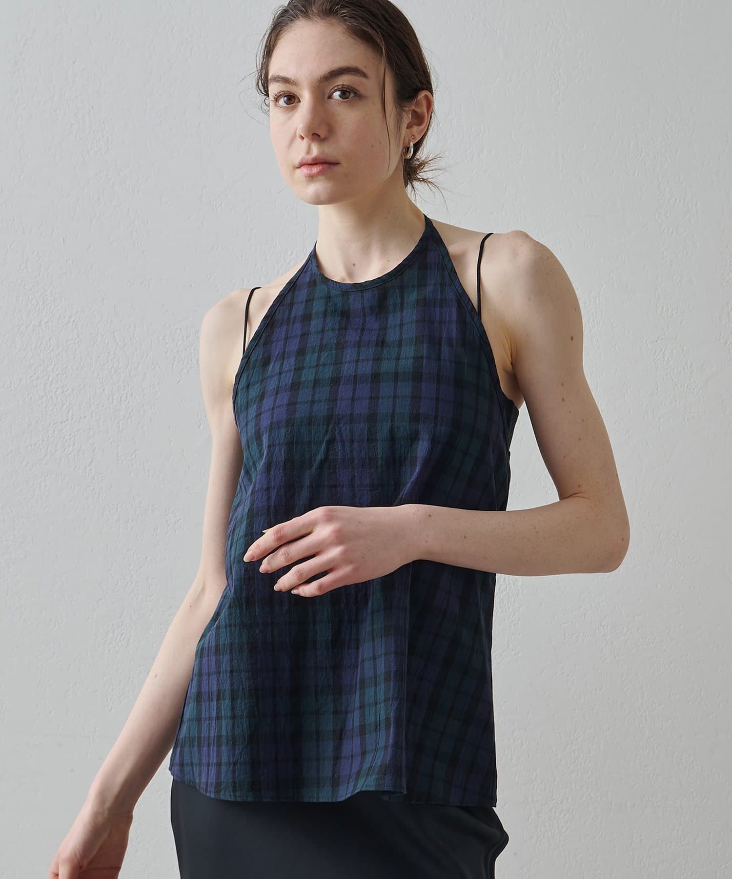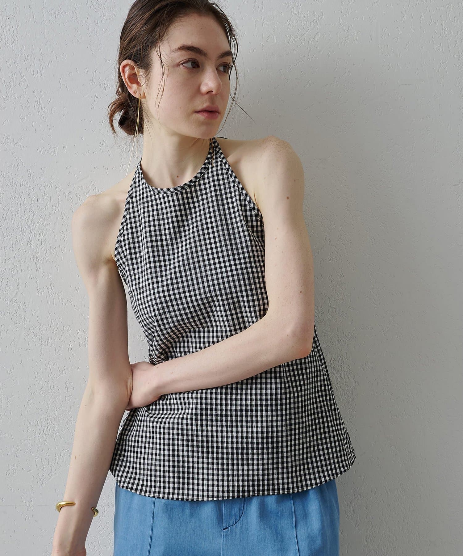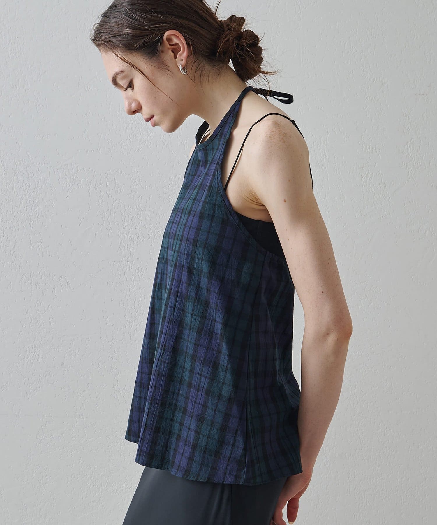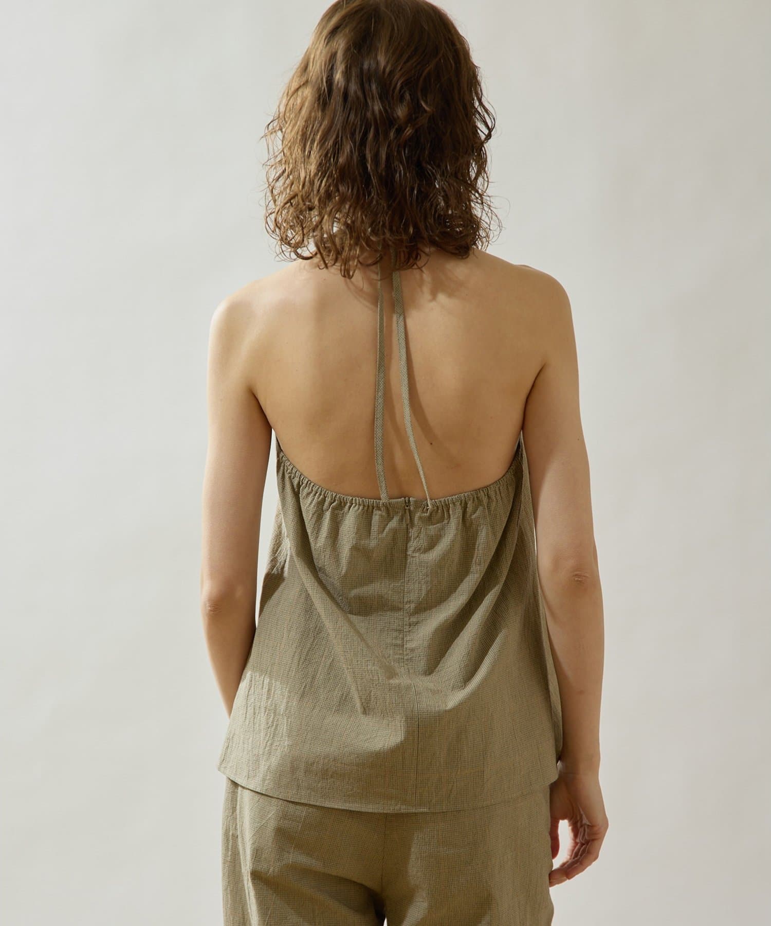 ■清涼感のある繊細なチェック柄生地で仕立てたホルターネックキャミソール。