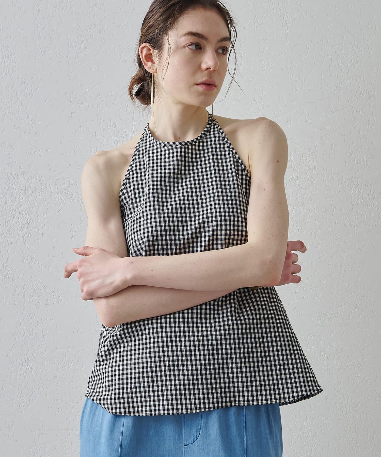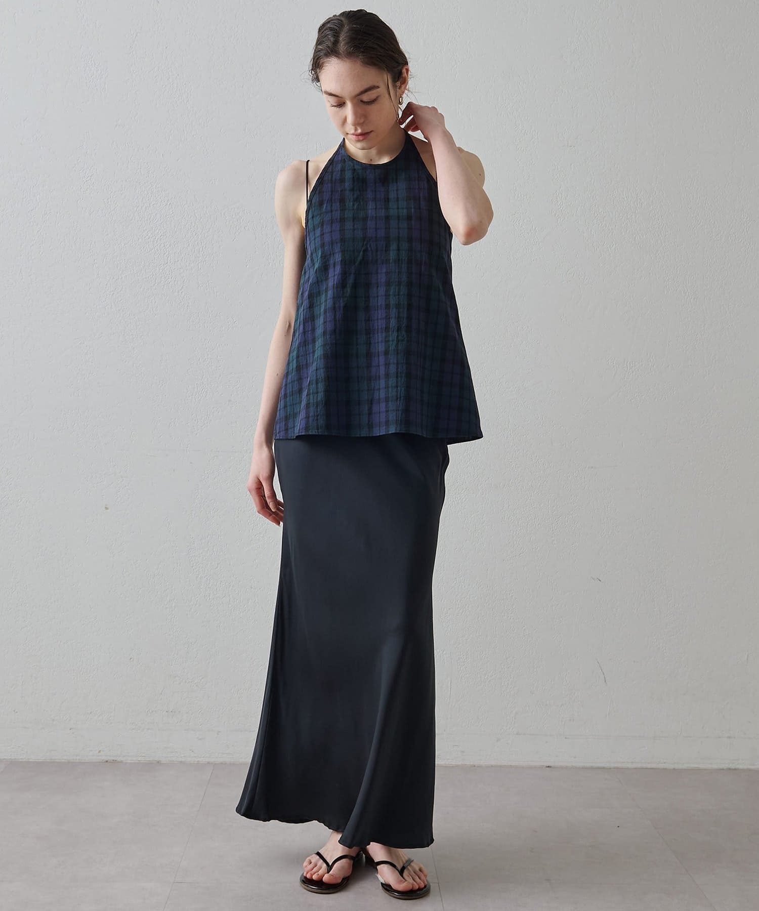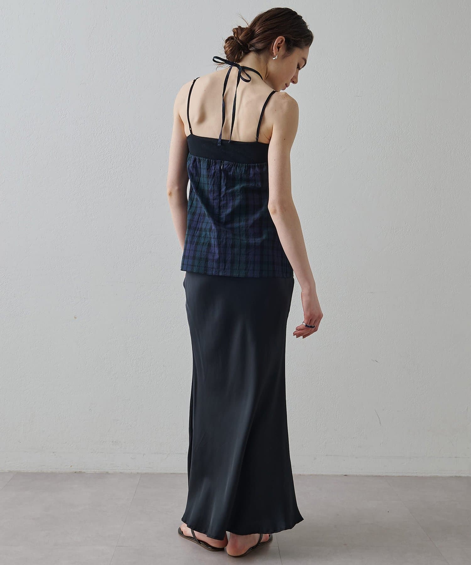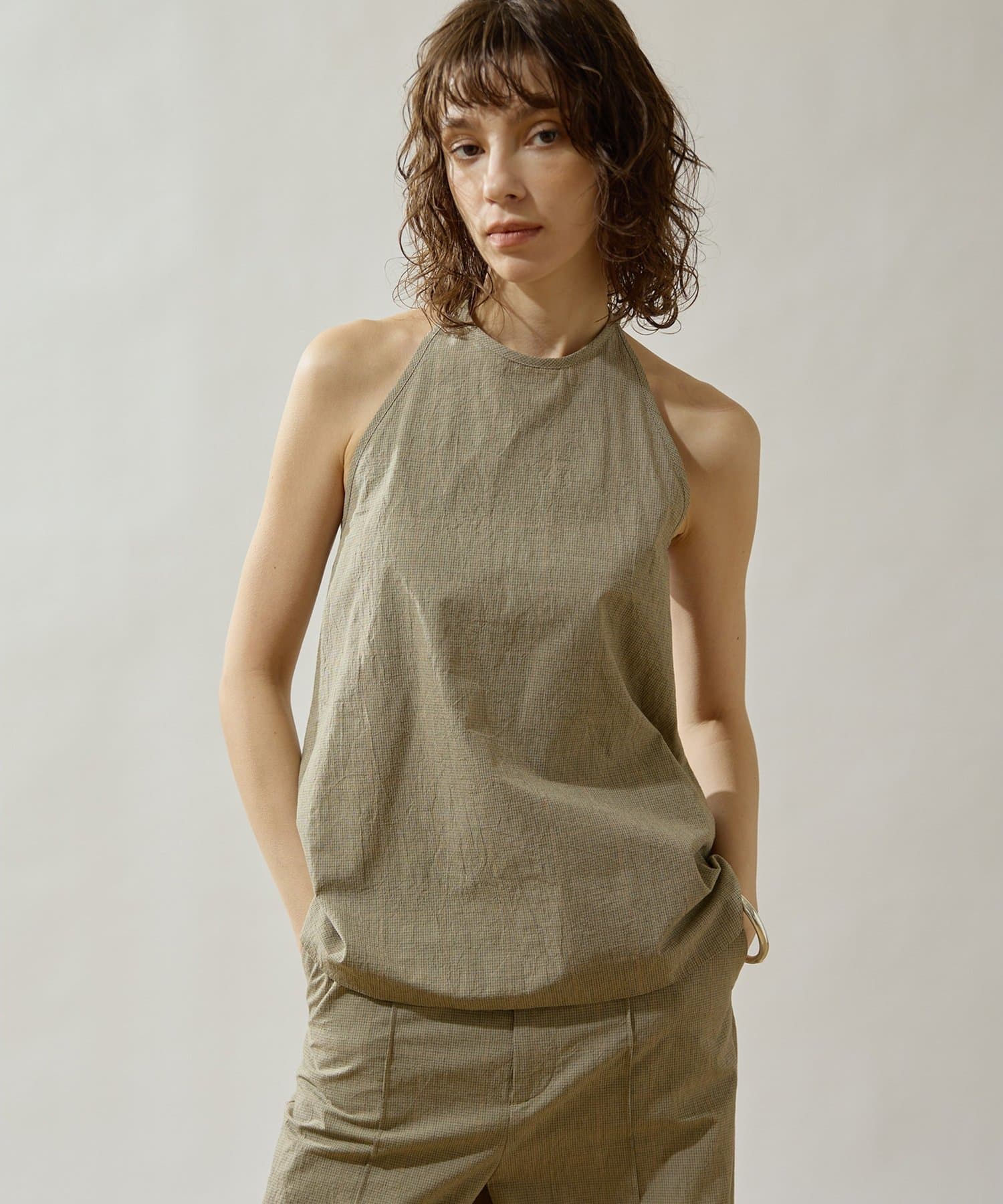 ■清涼感のある繊細なチェック柄生地で仕立てたホルターネックキャミソール。