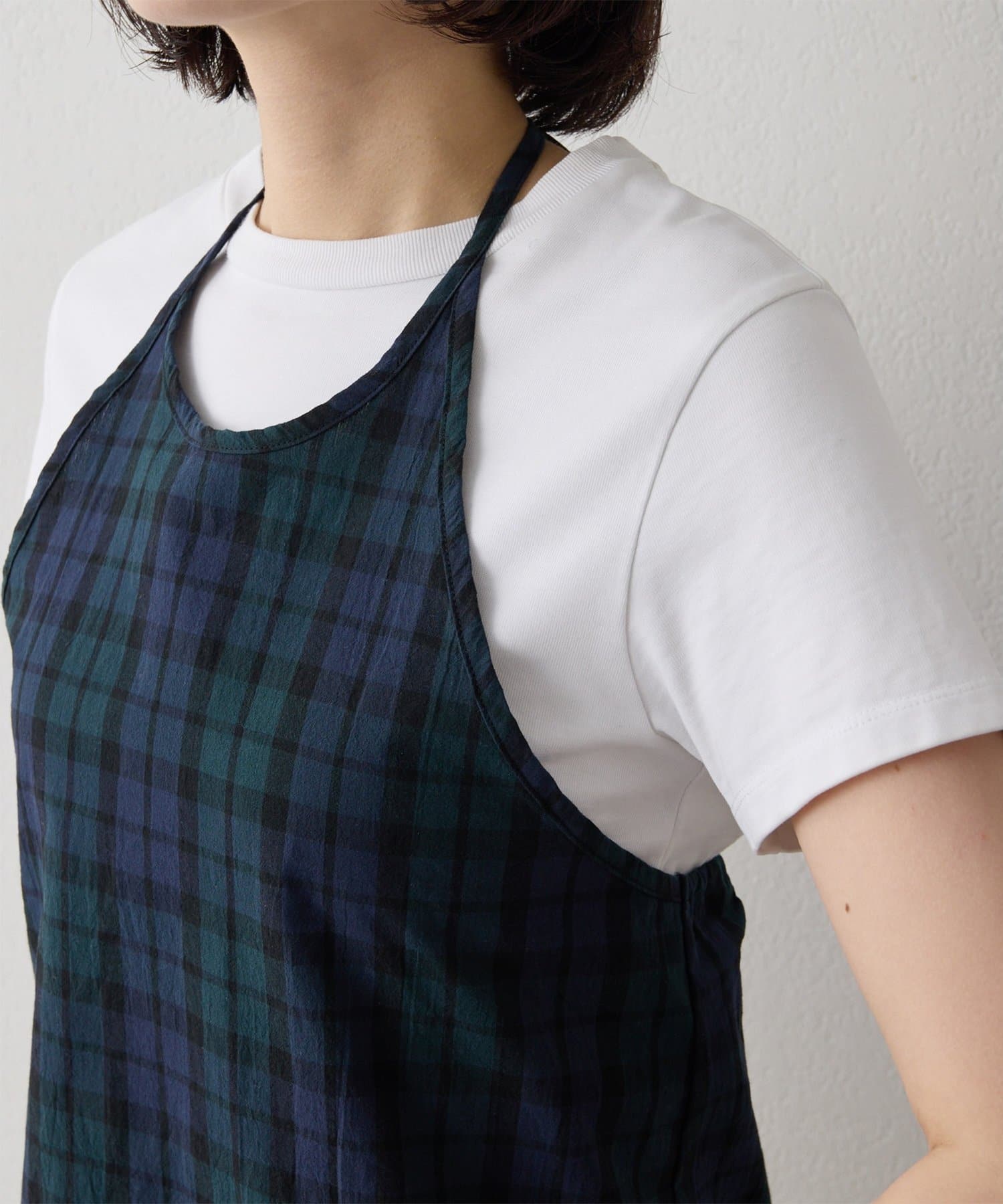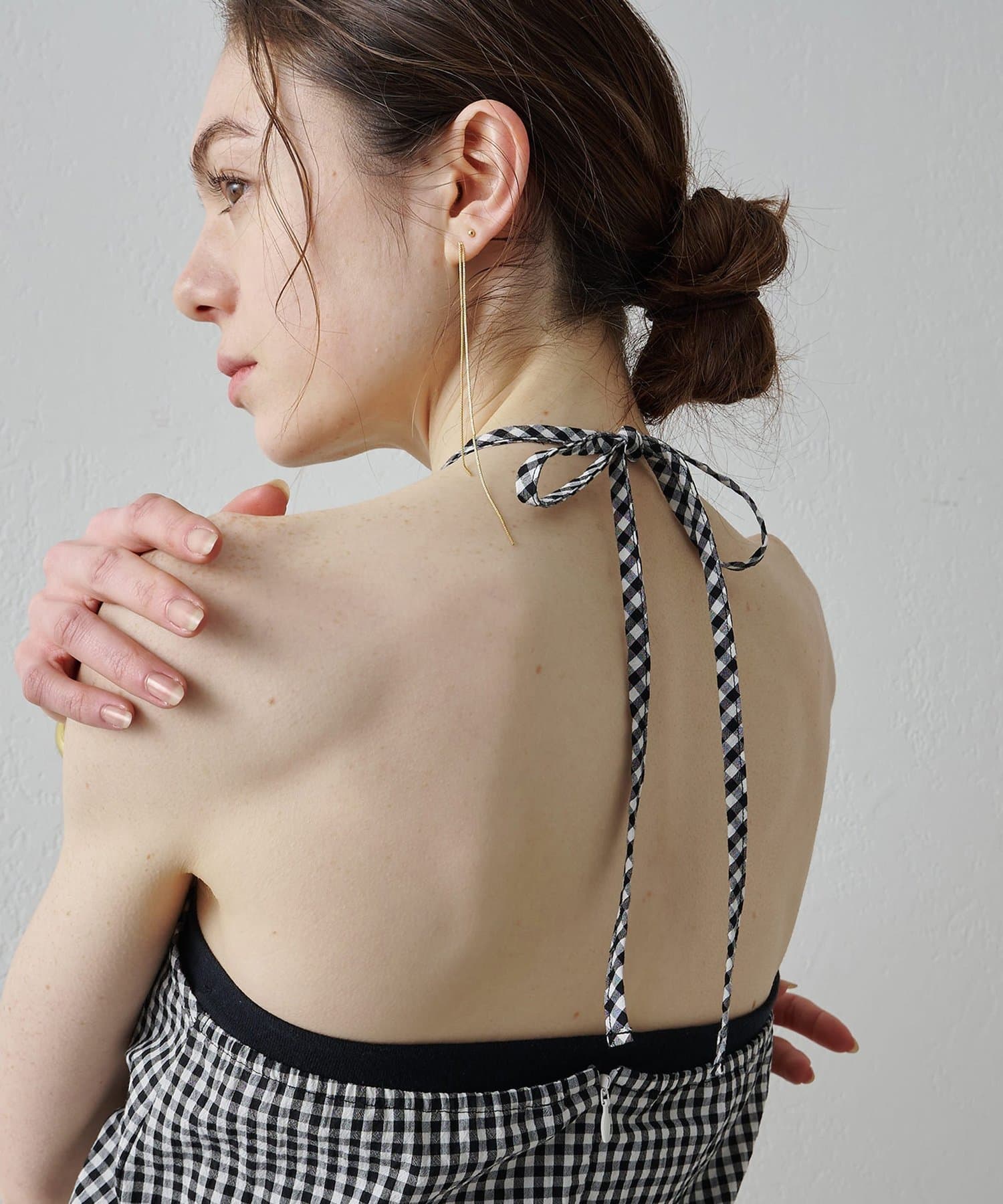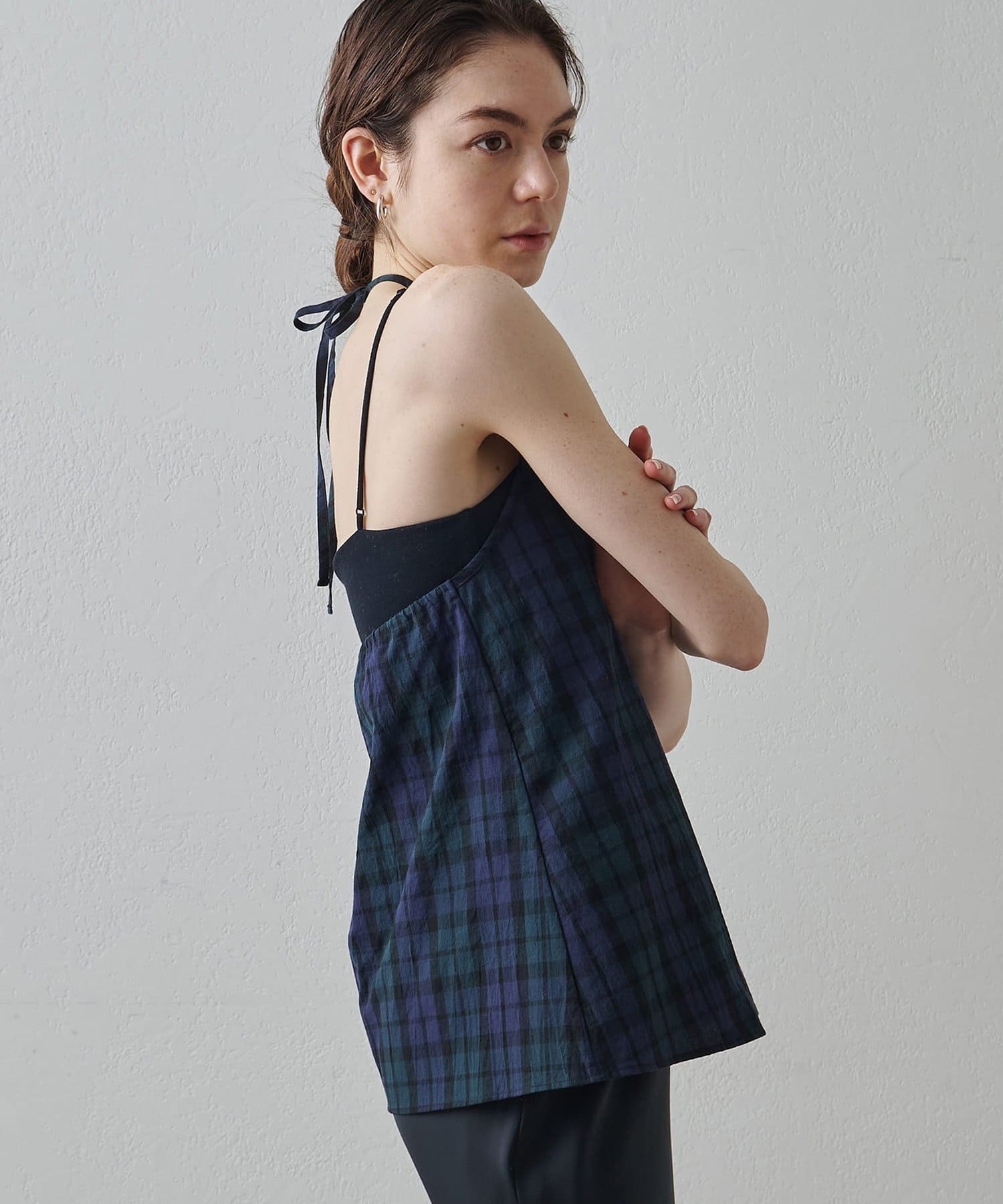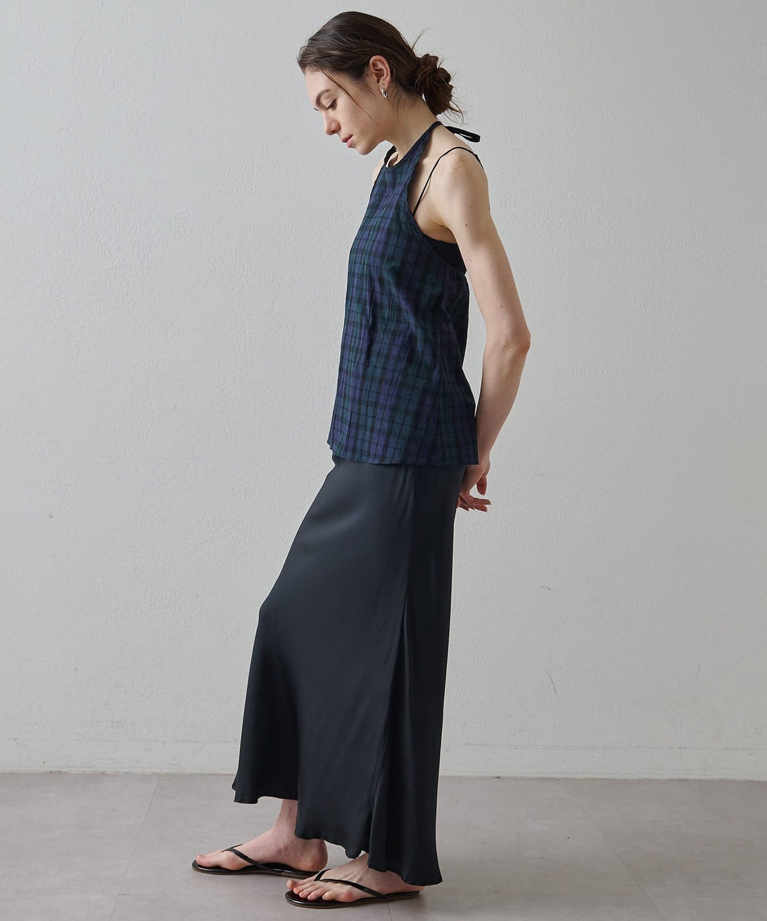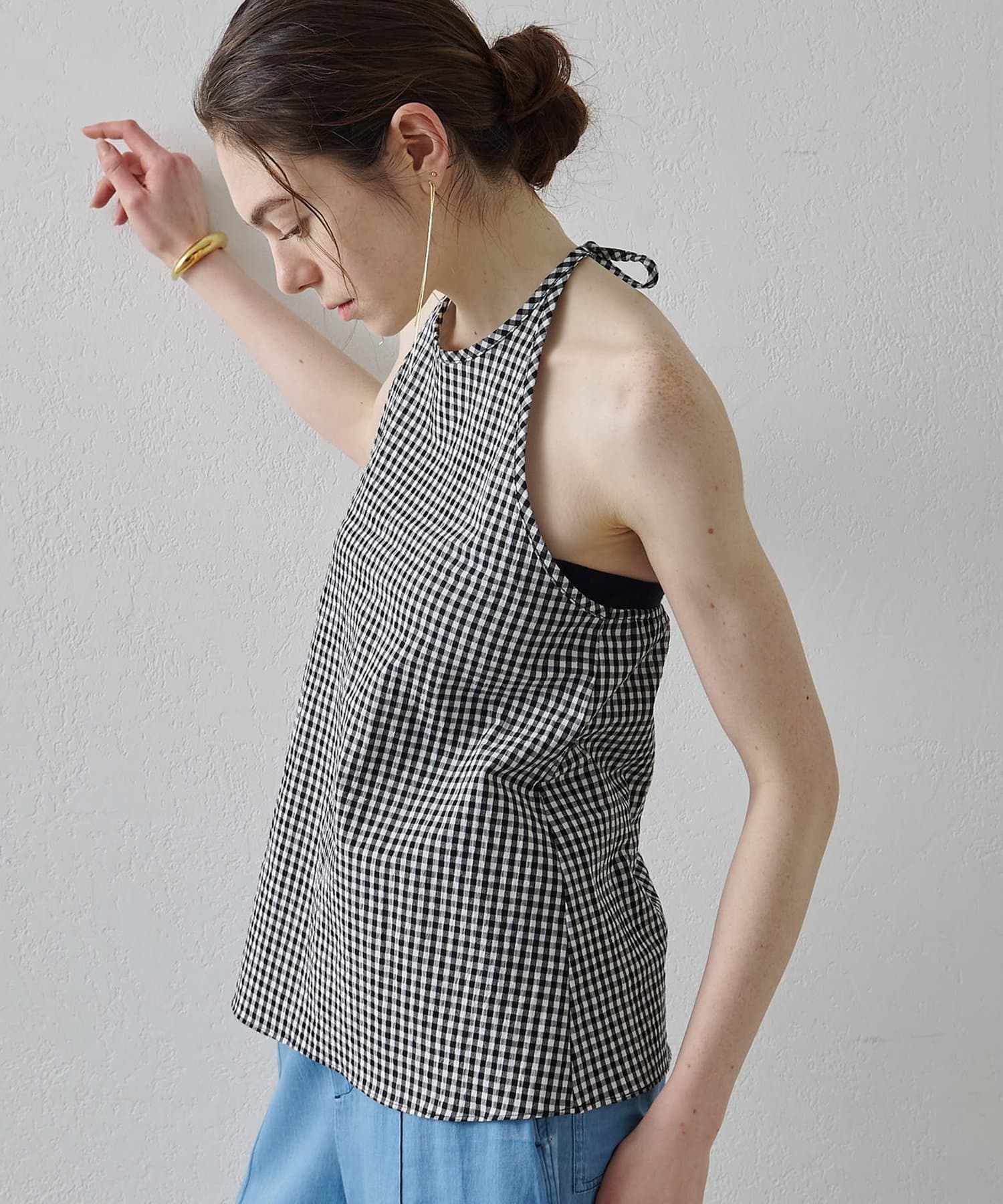 ■清涼感のある繊細なチェック柄生地で仕立てたホルターネックキャミソール。