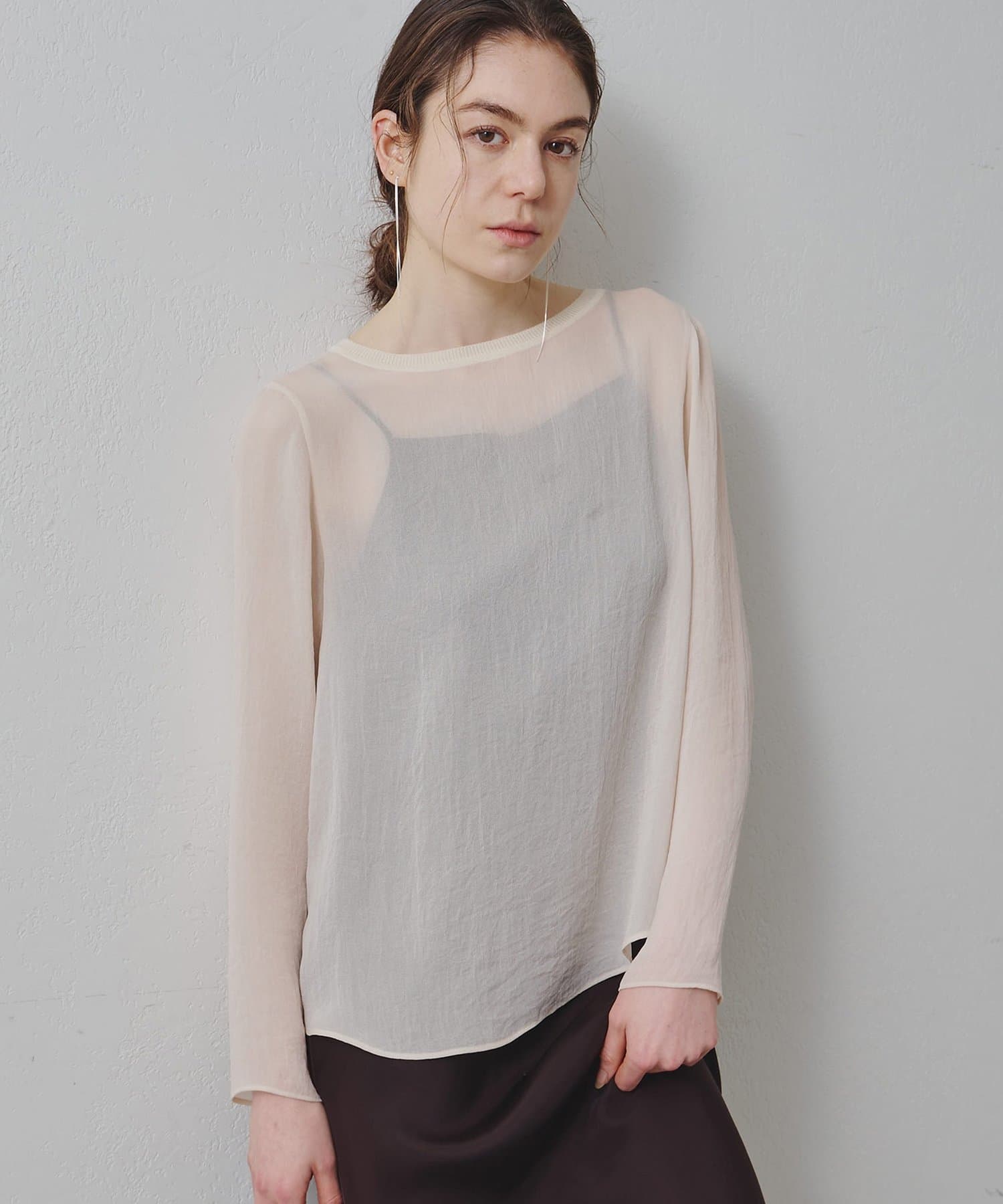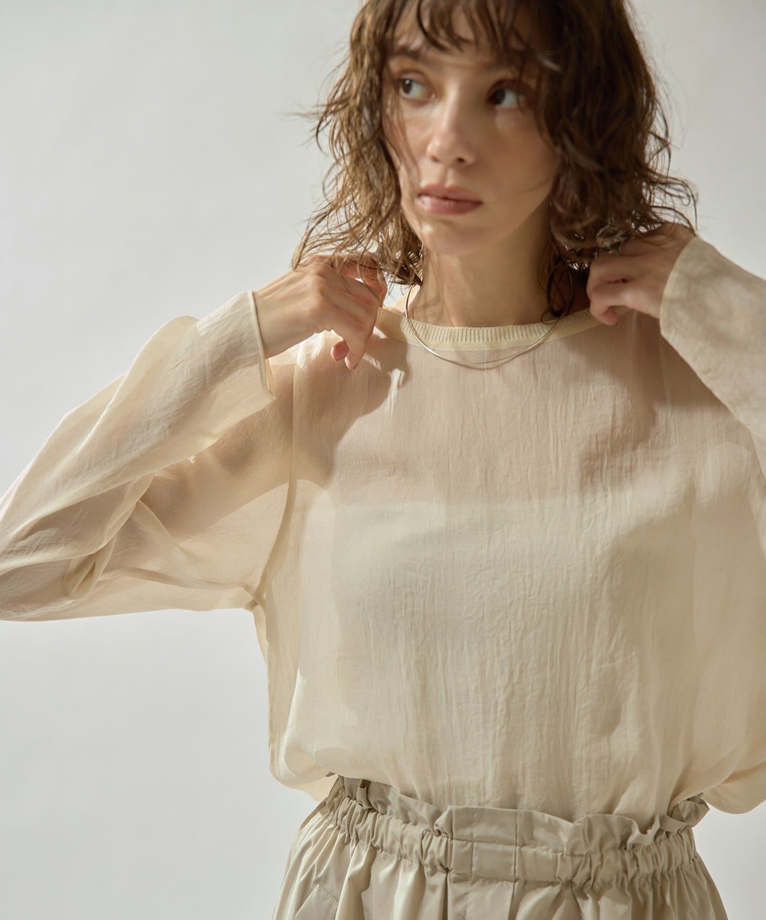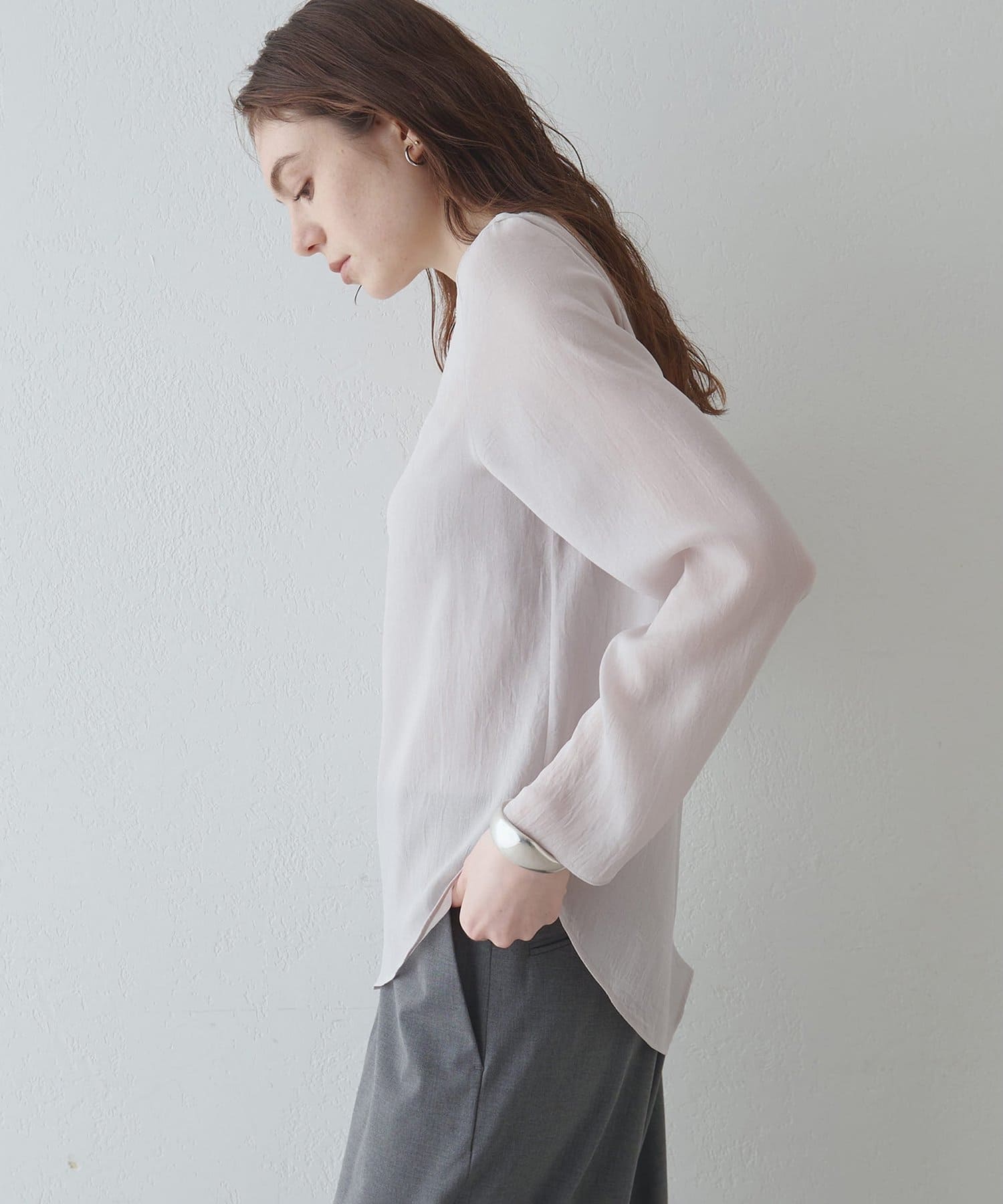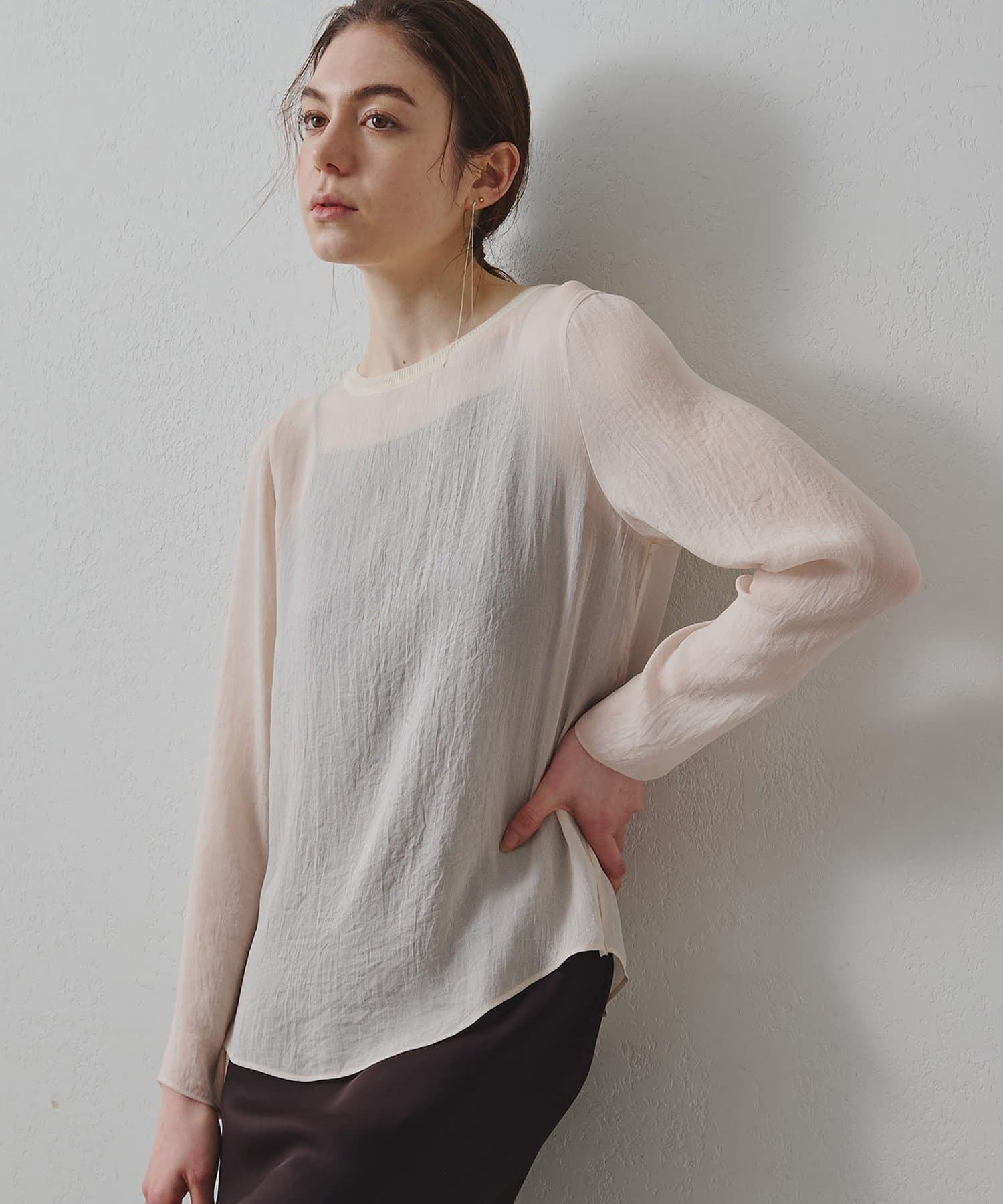 ■薄手のジョーゼット素材を使用したシアーブラウス。