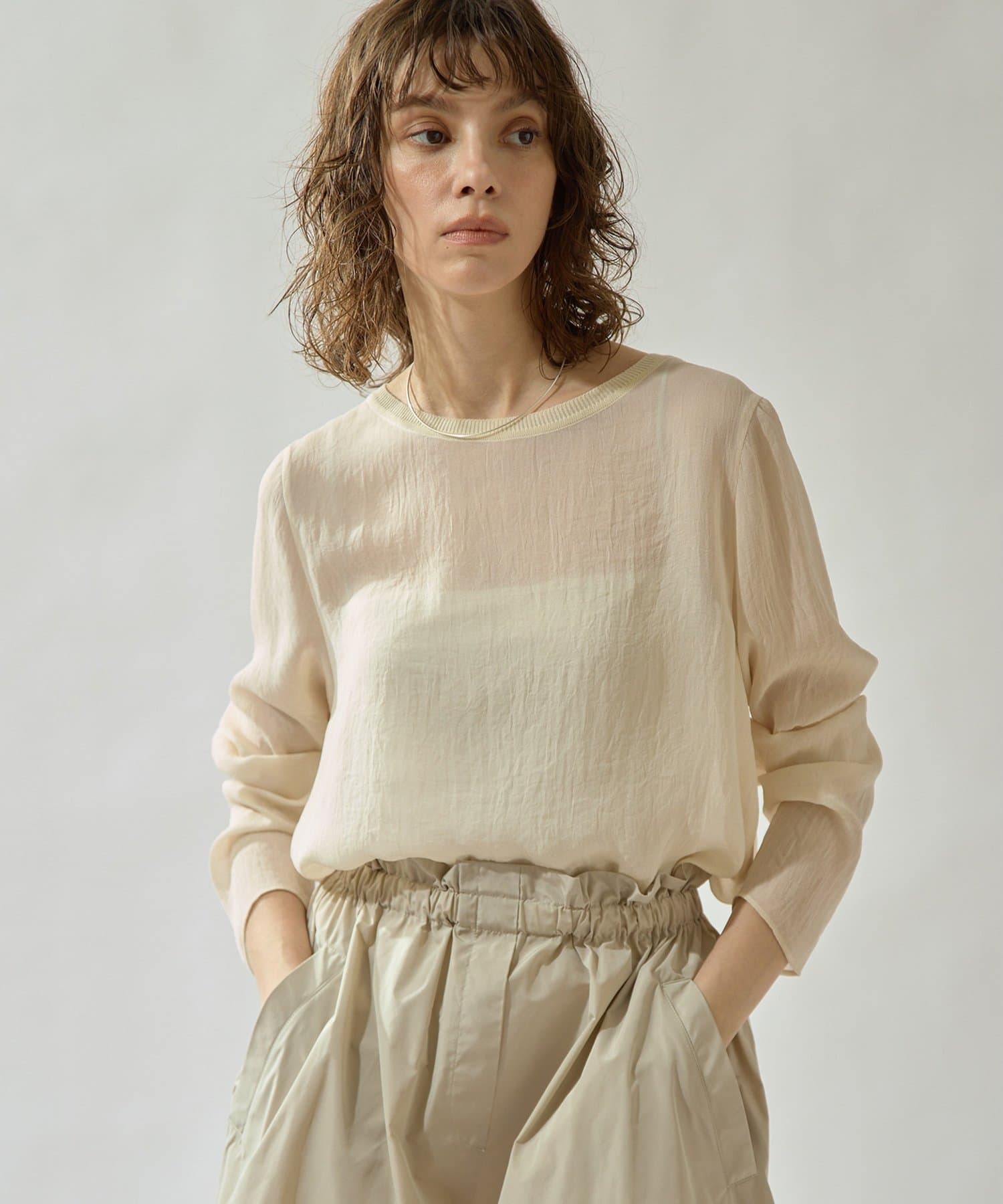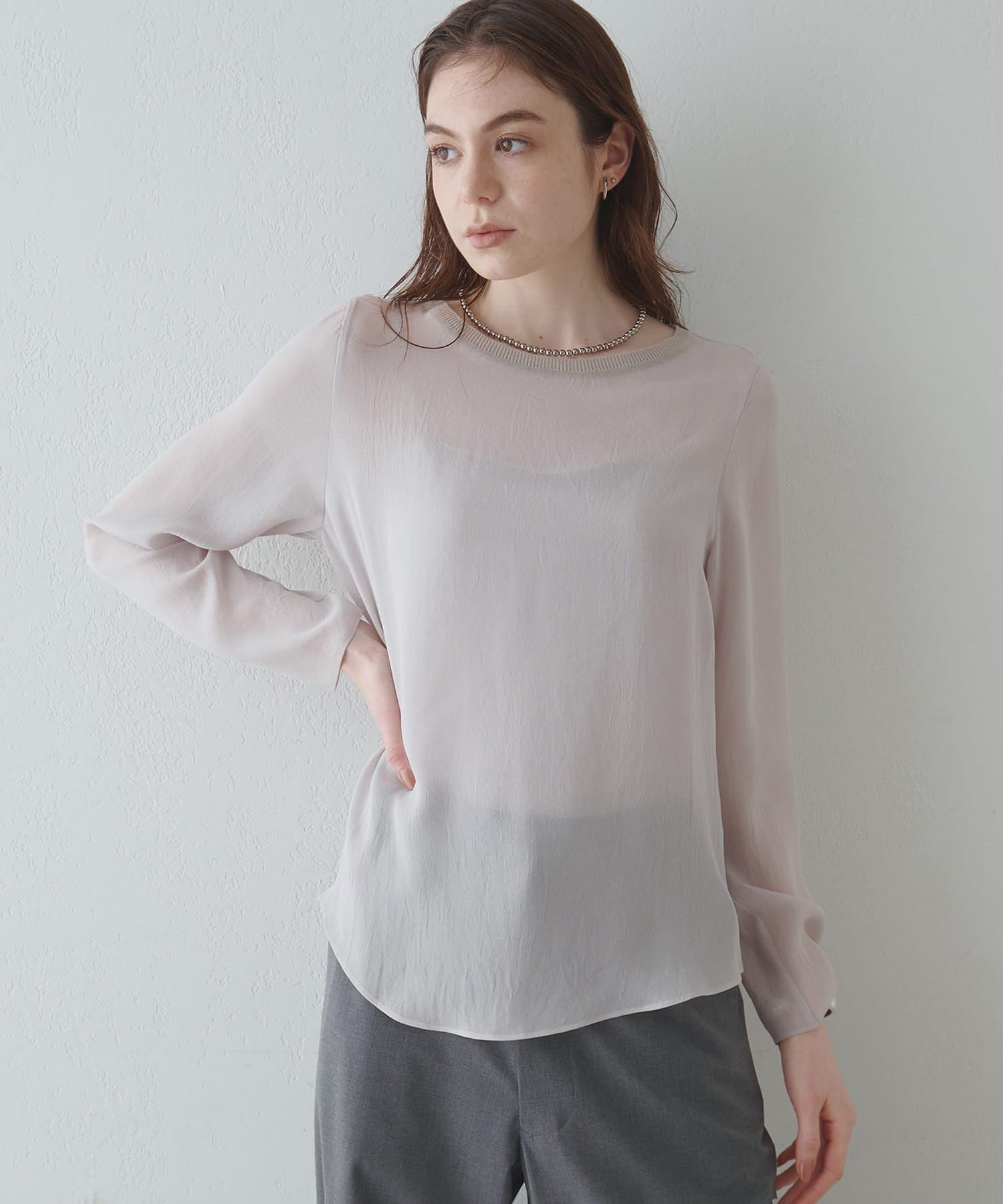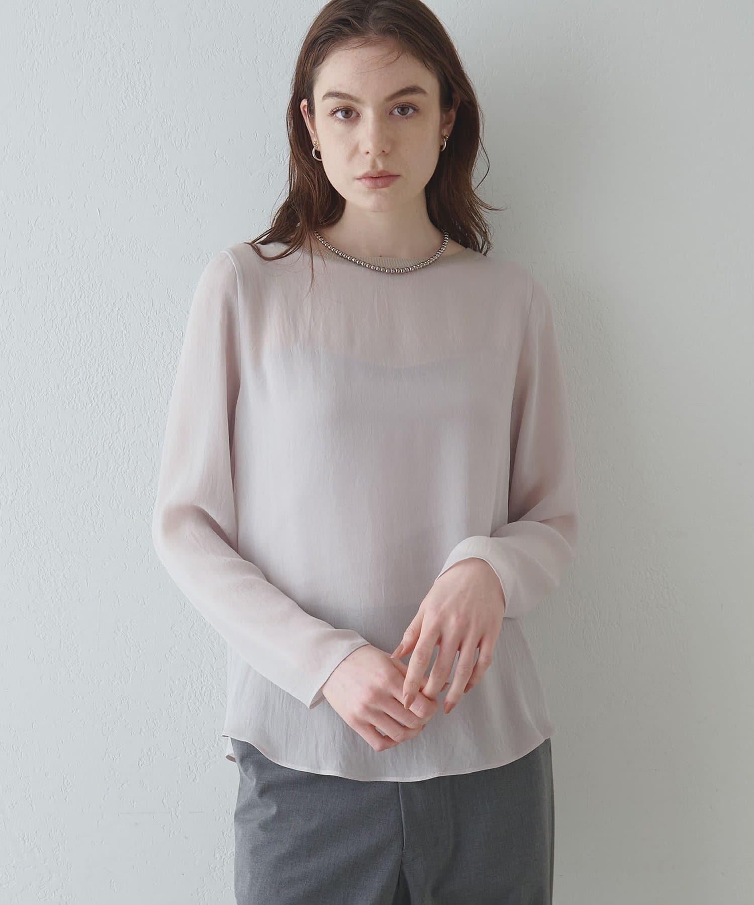 ■薄手のジョーゼット素材を使用したシアーブラウス。