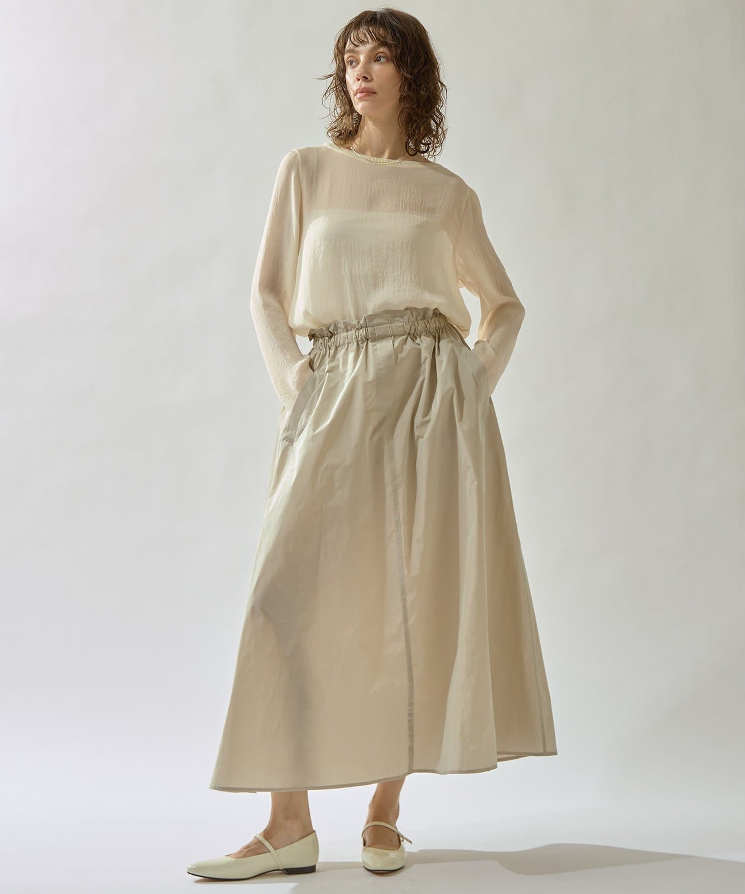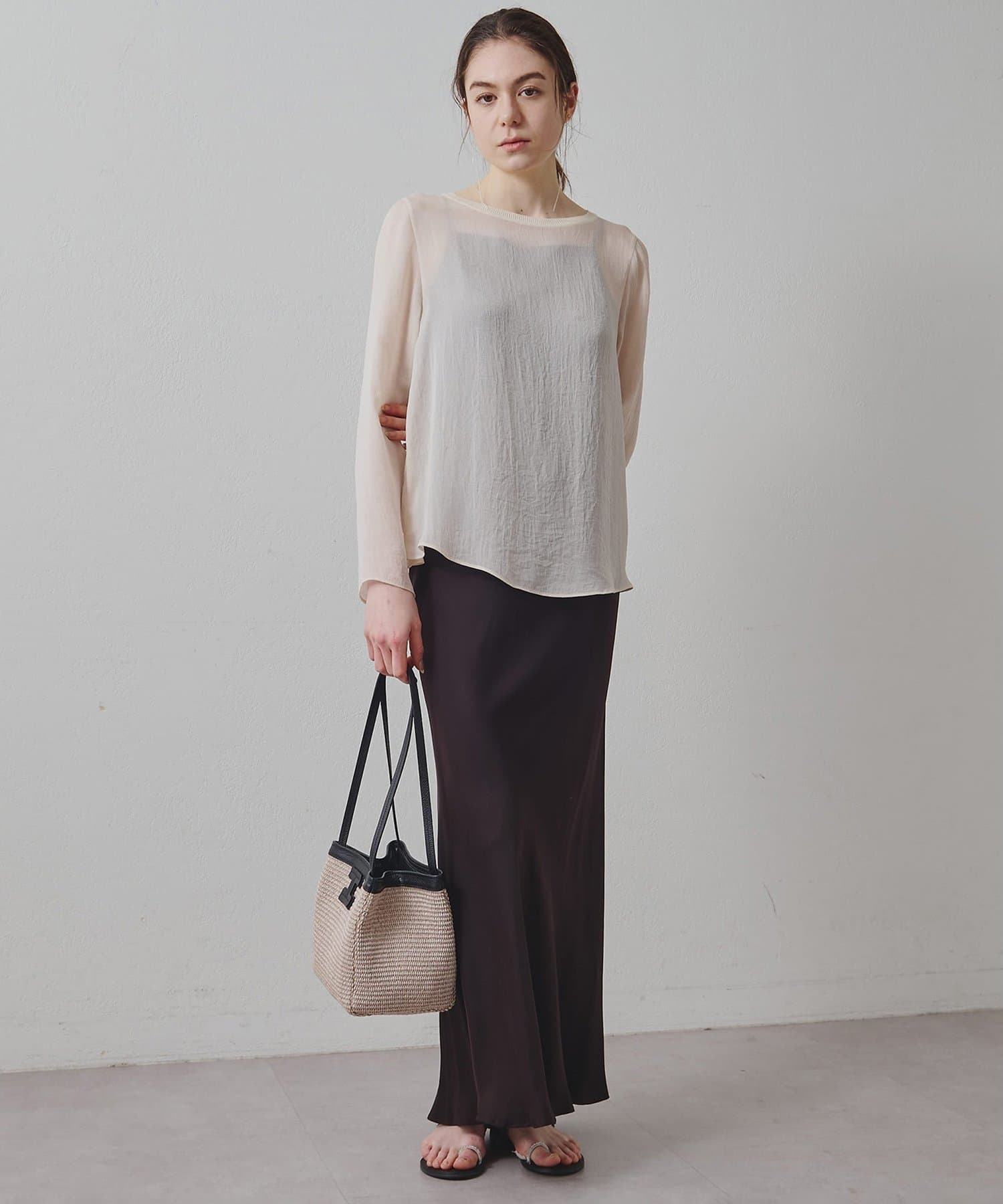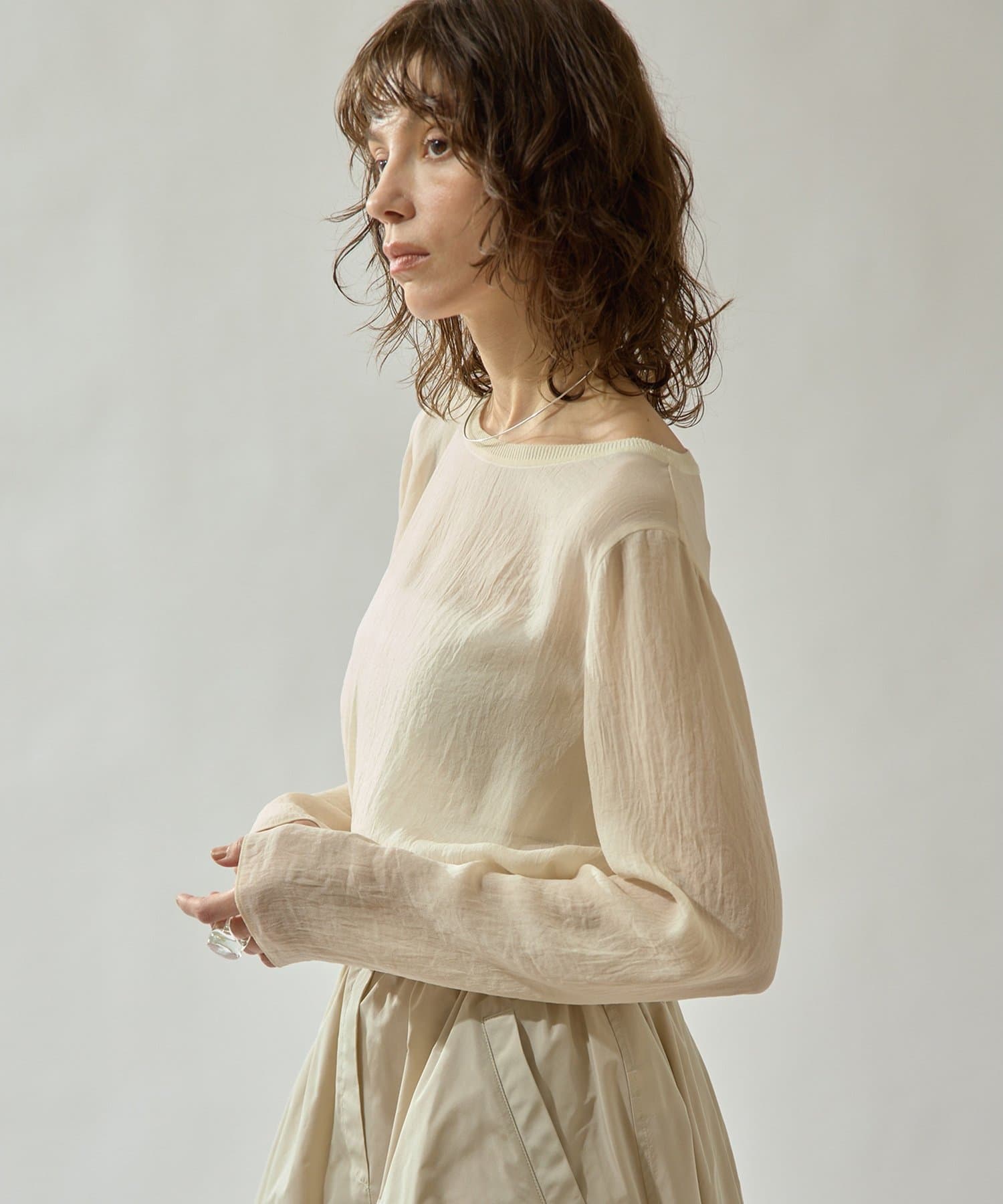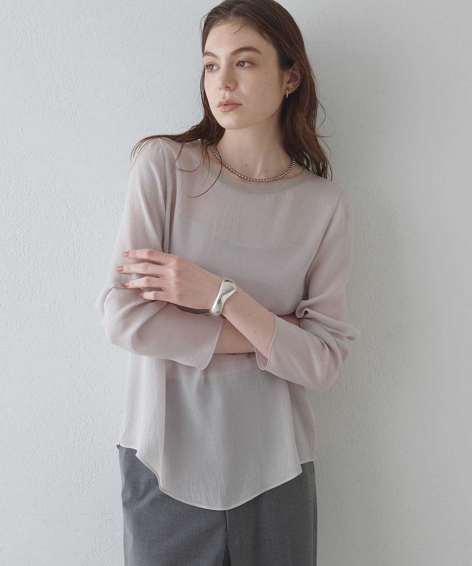 ■薄手のジョーゼット素材を使用したシアーブラウス。