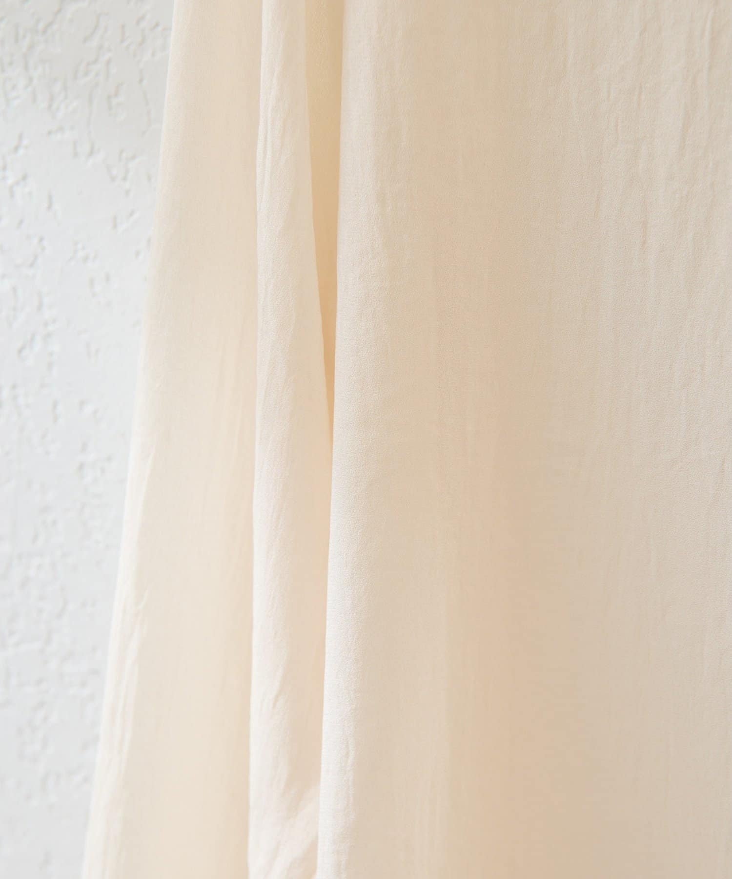 トリアセテートの持つふくらみ感とジョーゼット組織によるシャリ感を併せ持つ素材。