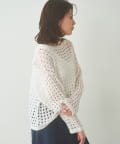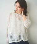 編み地の表情がポイントになる、透かし編みニットプルオーバー
