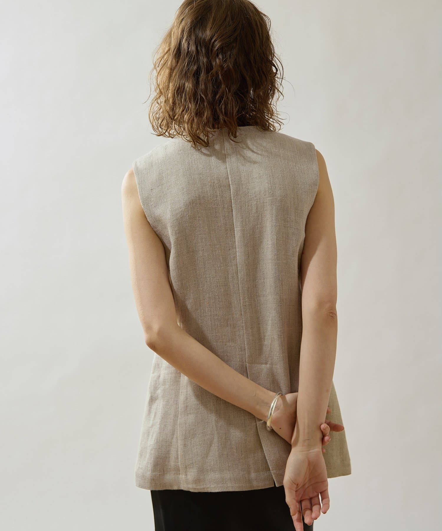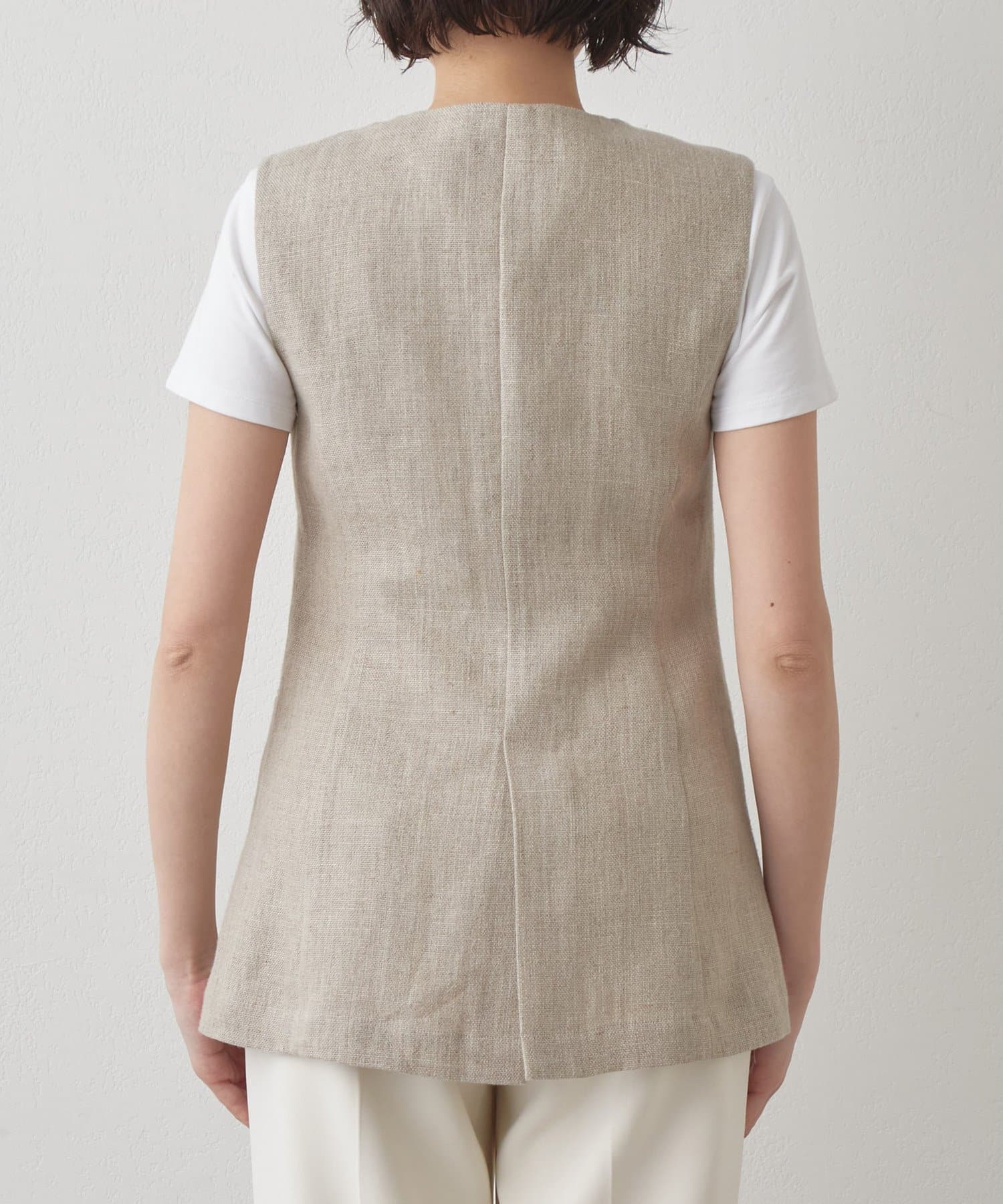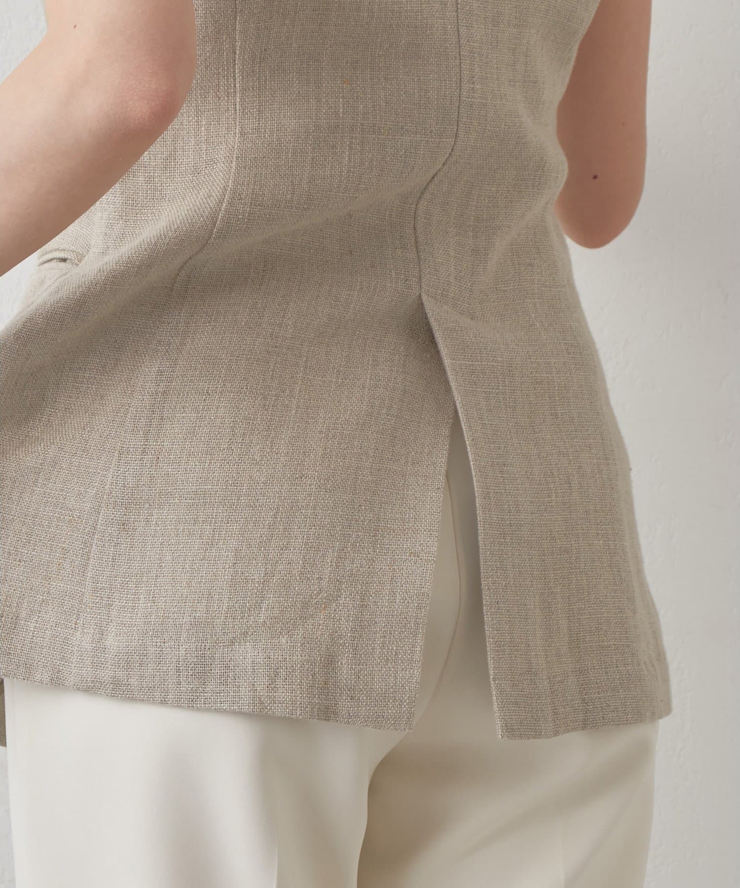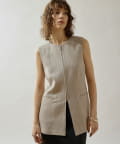 ■リネン100%素材で仕立てたクルーネックジレ。