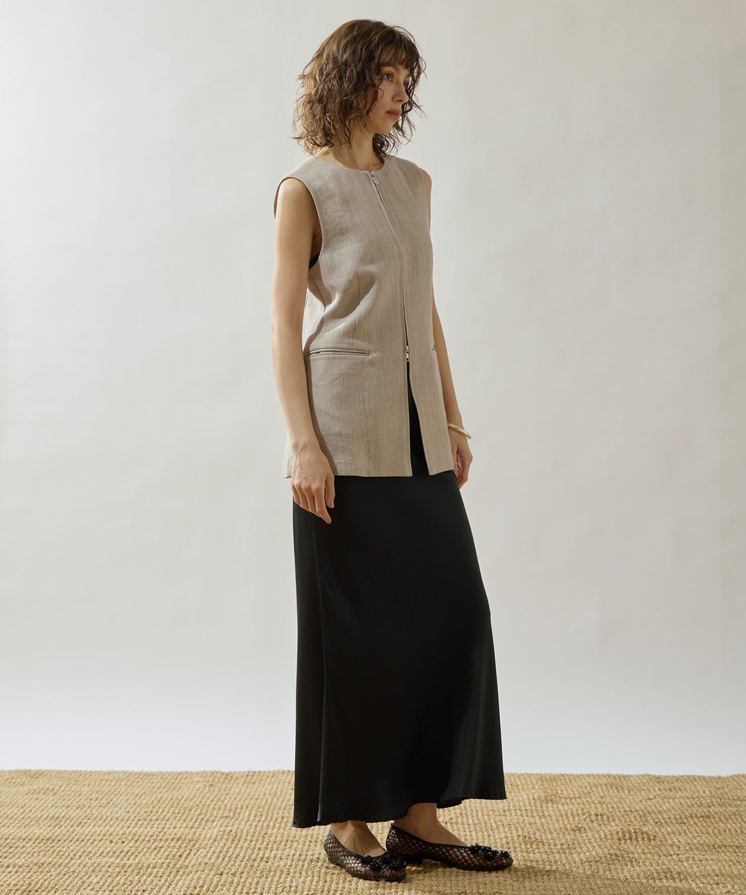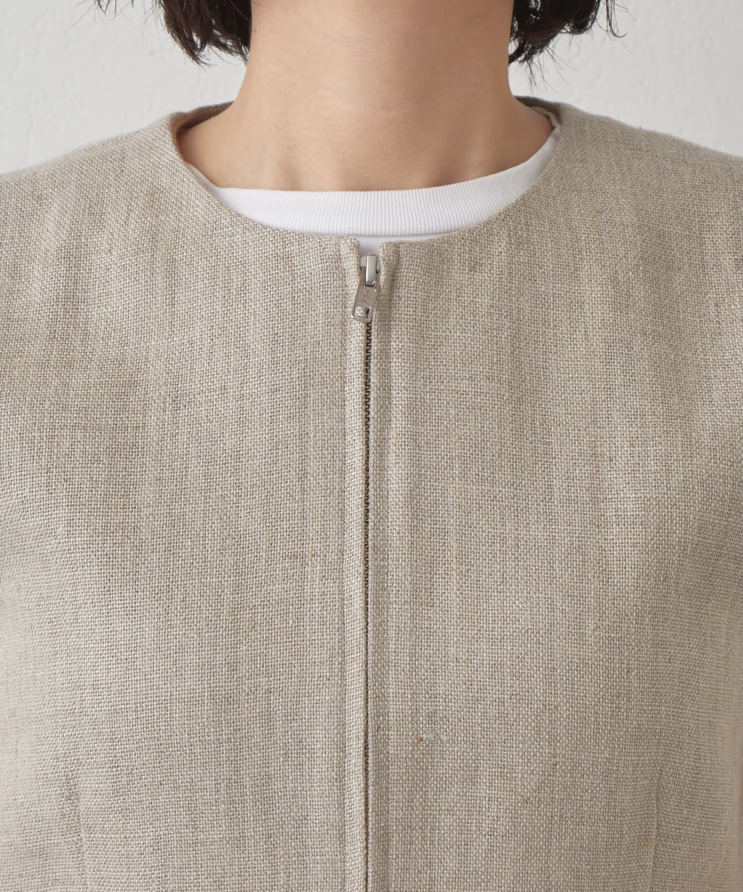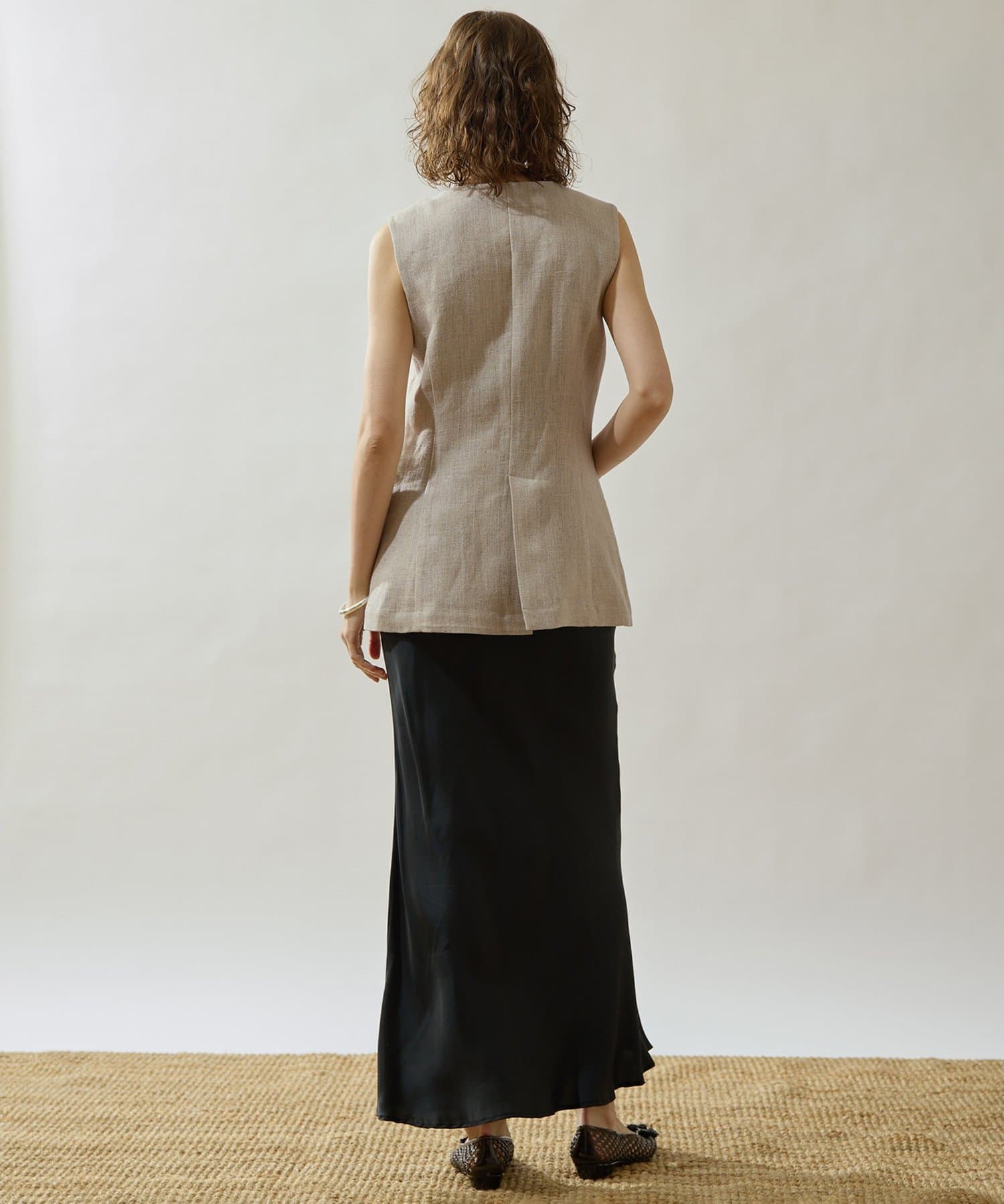■リネン100%素材で仕立てたクルーネックジレ。