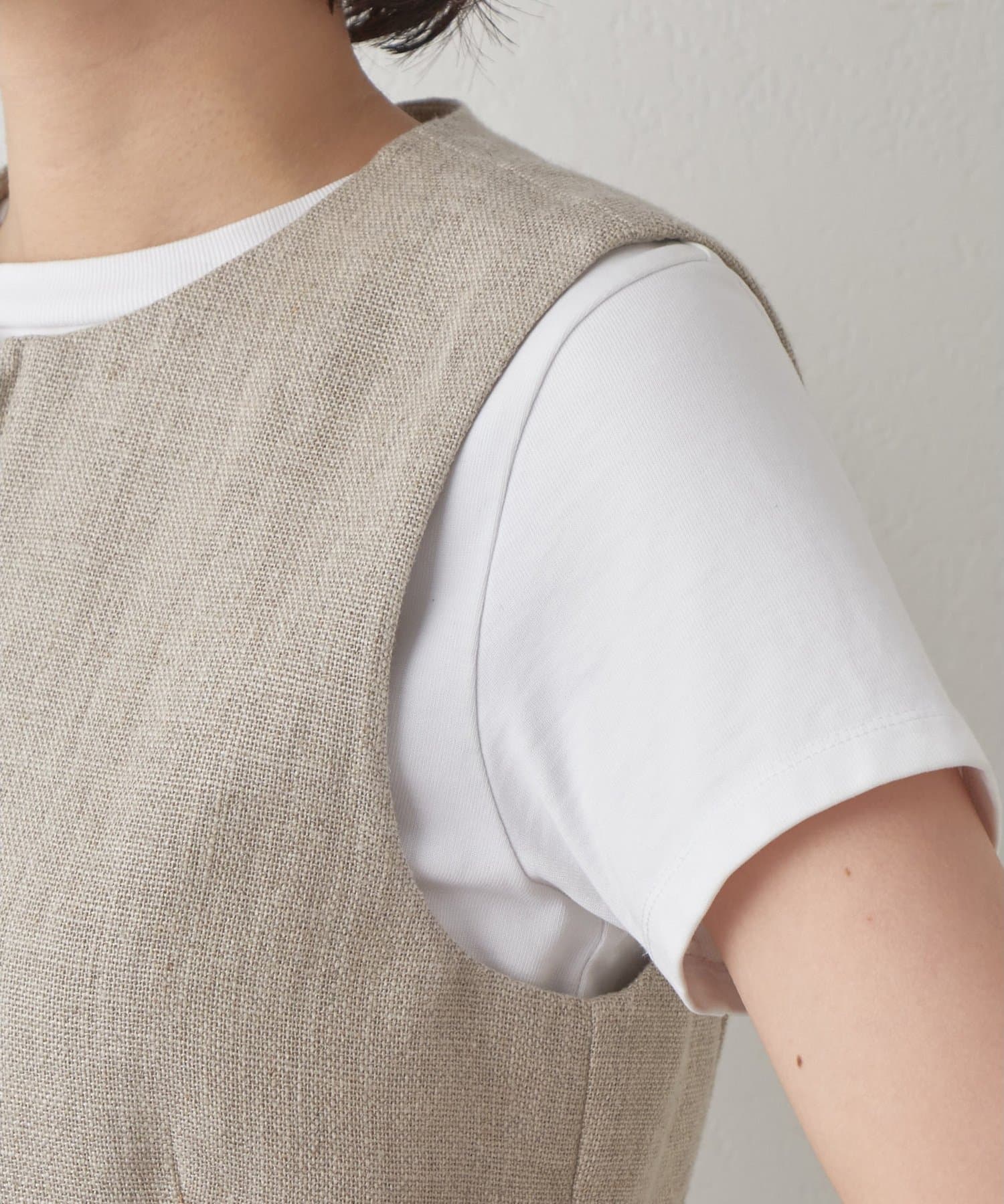 ■ノースリーブトップスとしてもレイヤードスタイルでも綺麗に着用できるすっきりとしたシルエット。