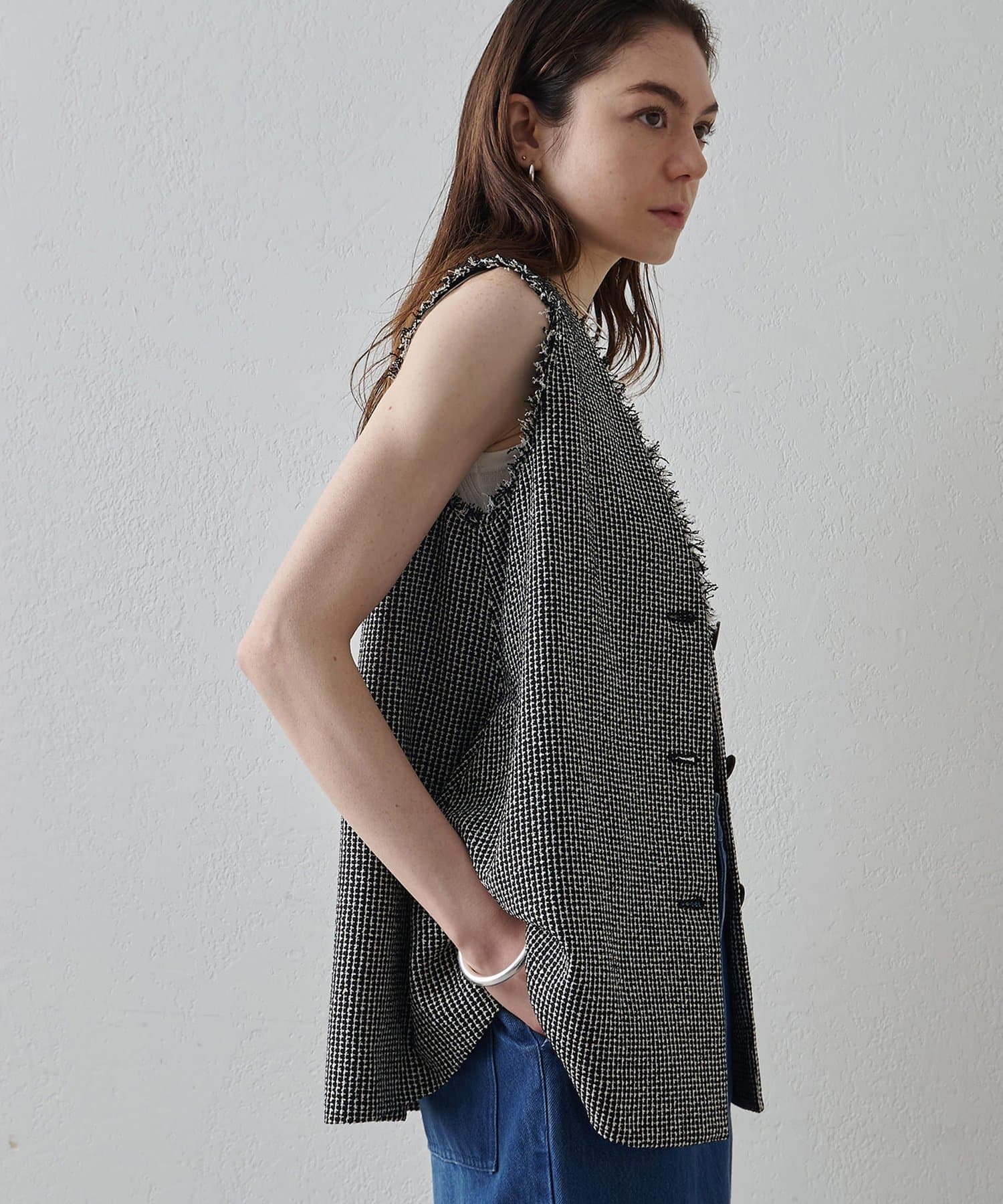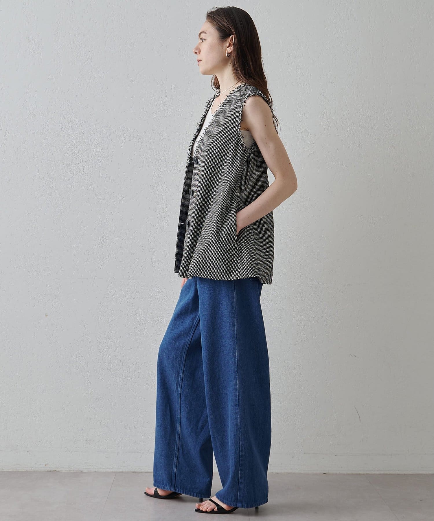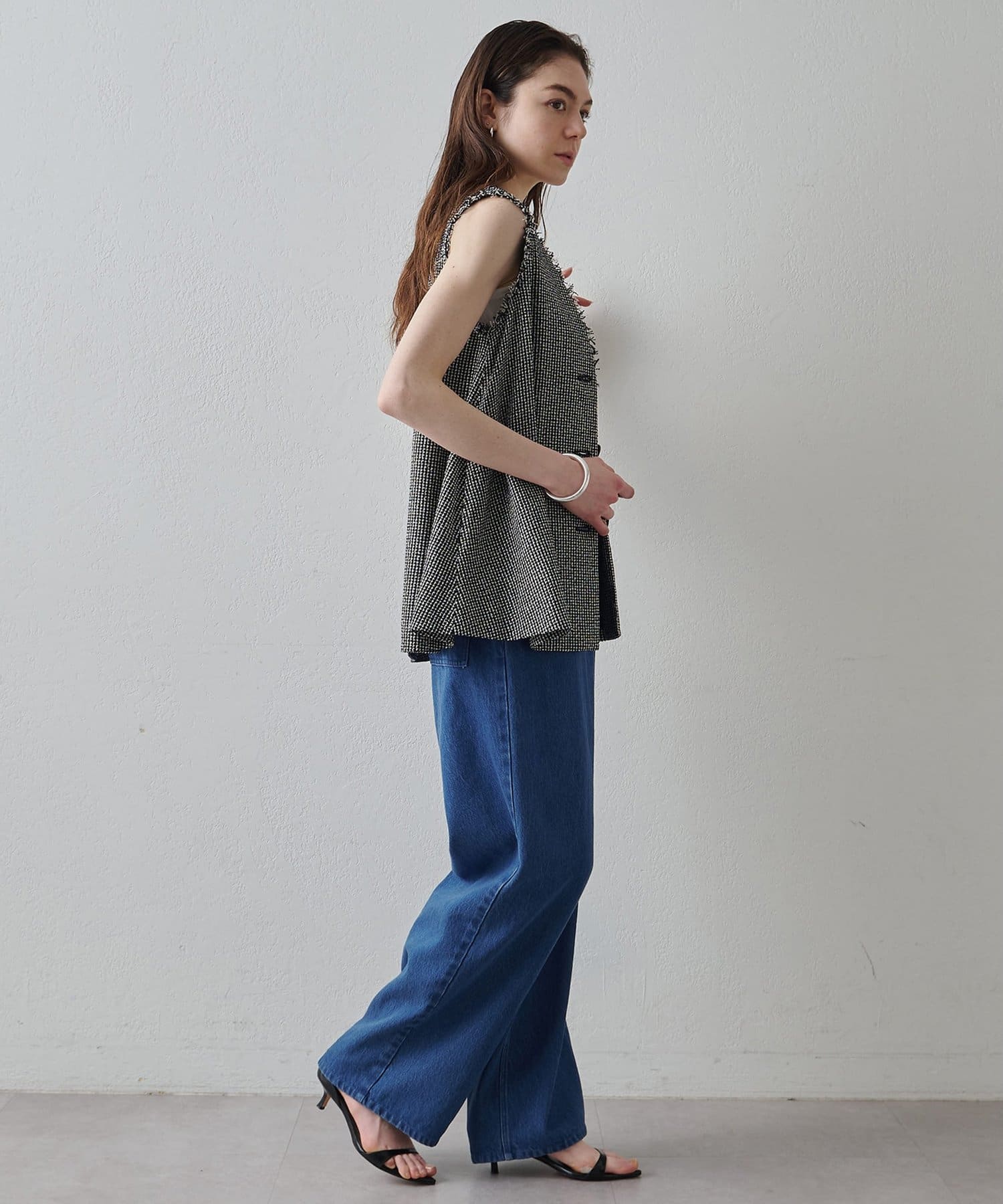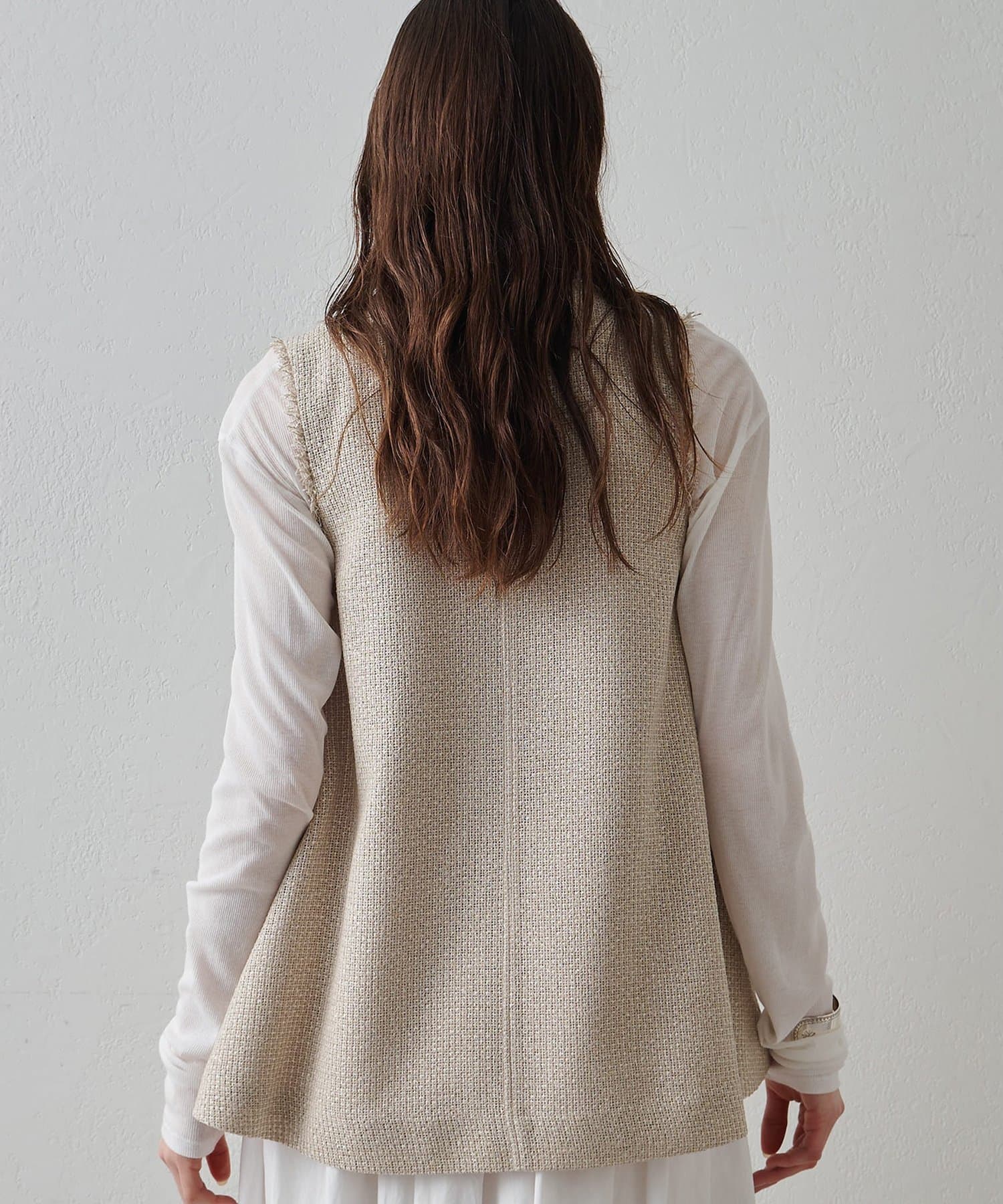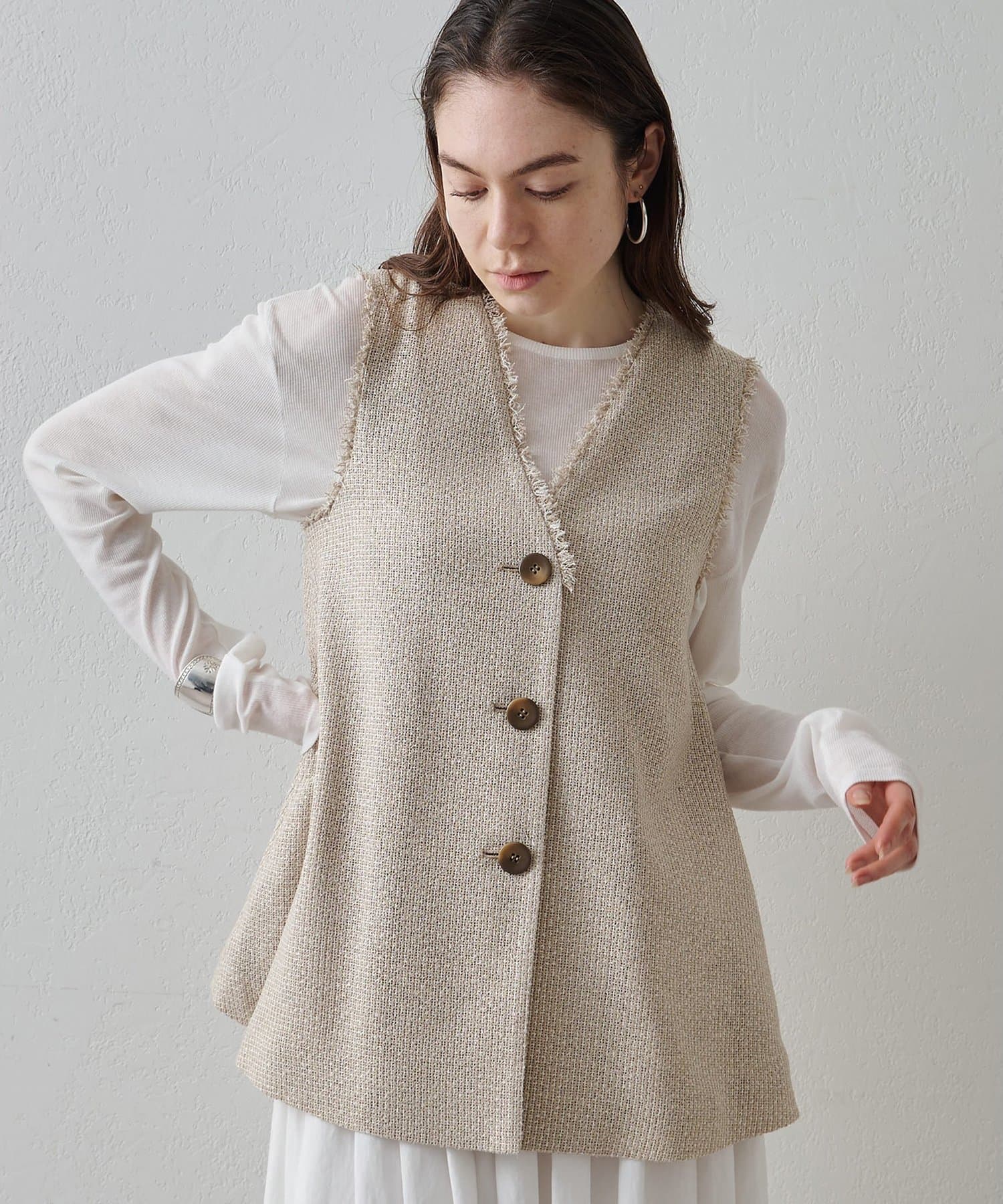 素材の表情もシルエットもアクセントになるフレアジレ