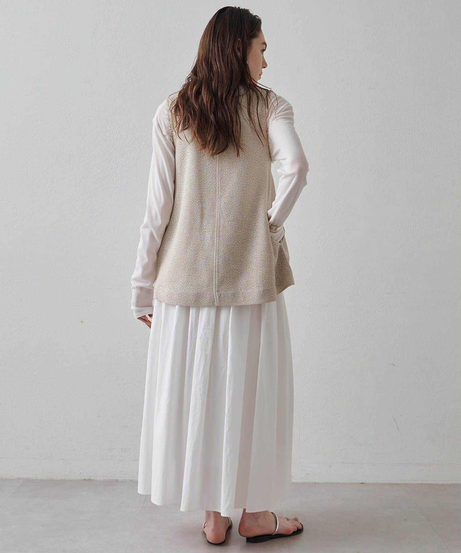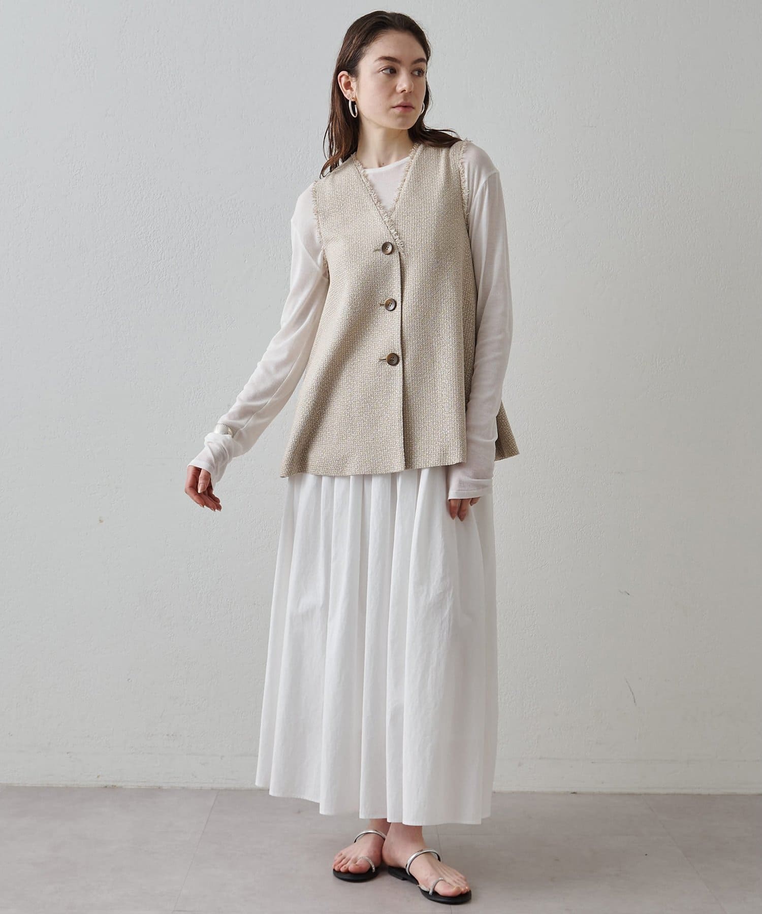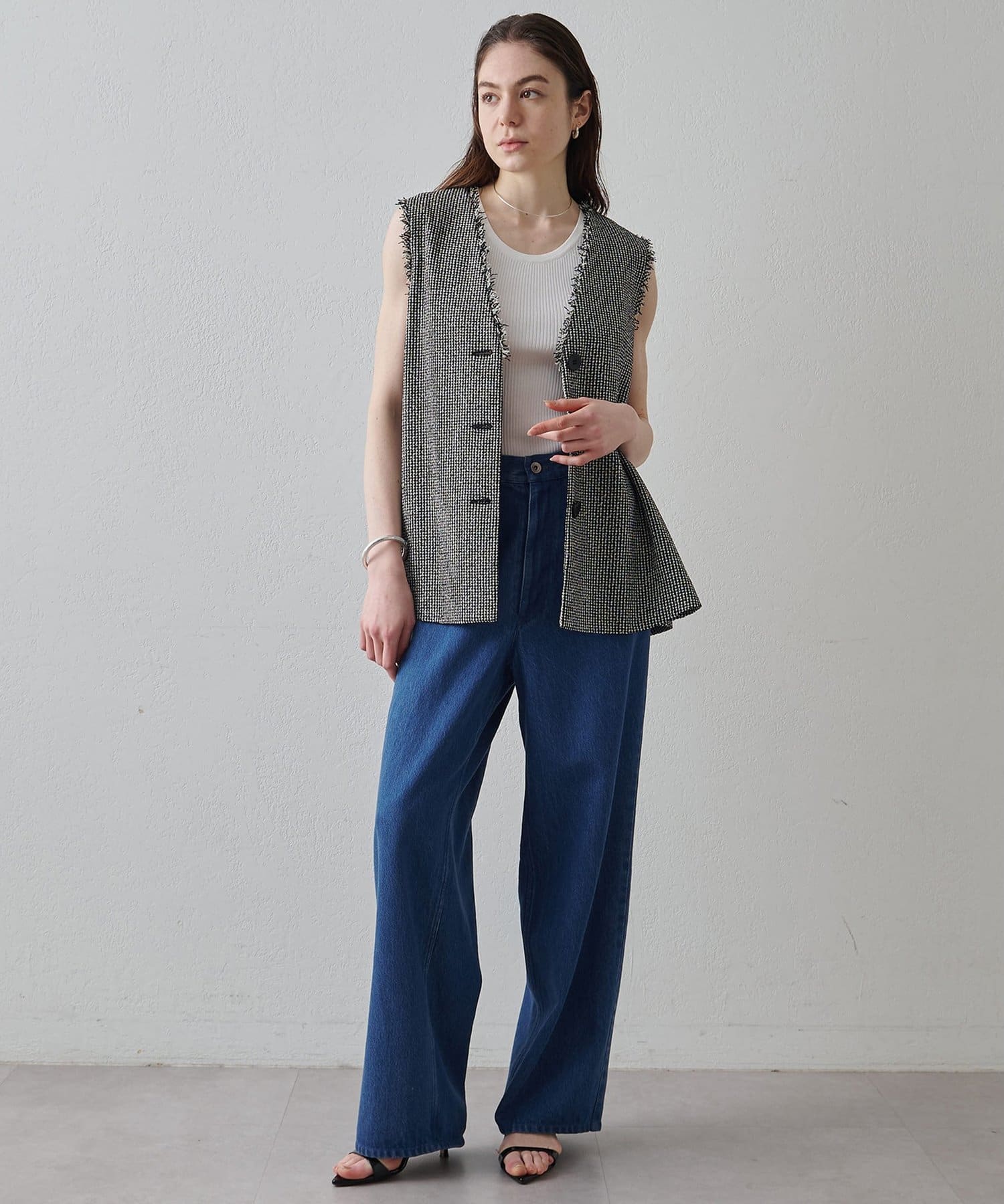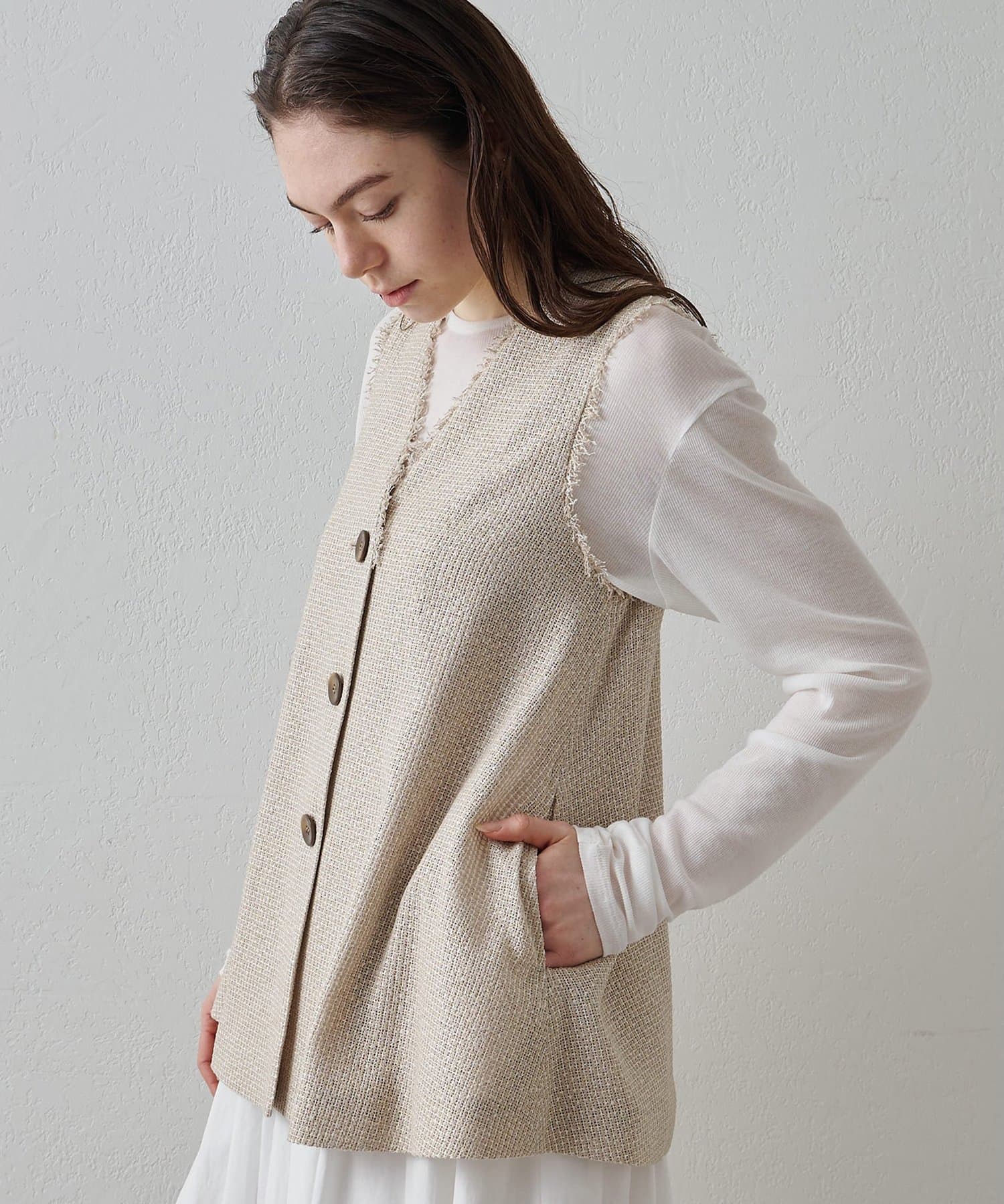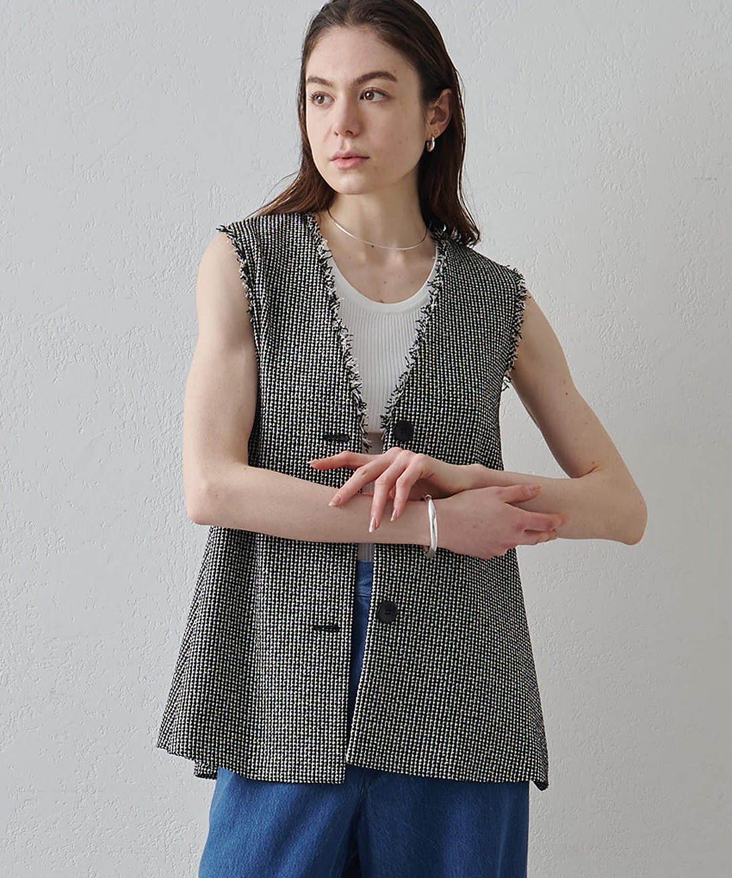 素材の表情もシルエットもアクセントになるフレアジレ