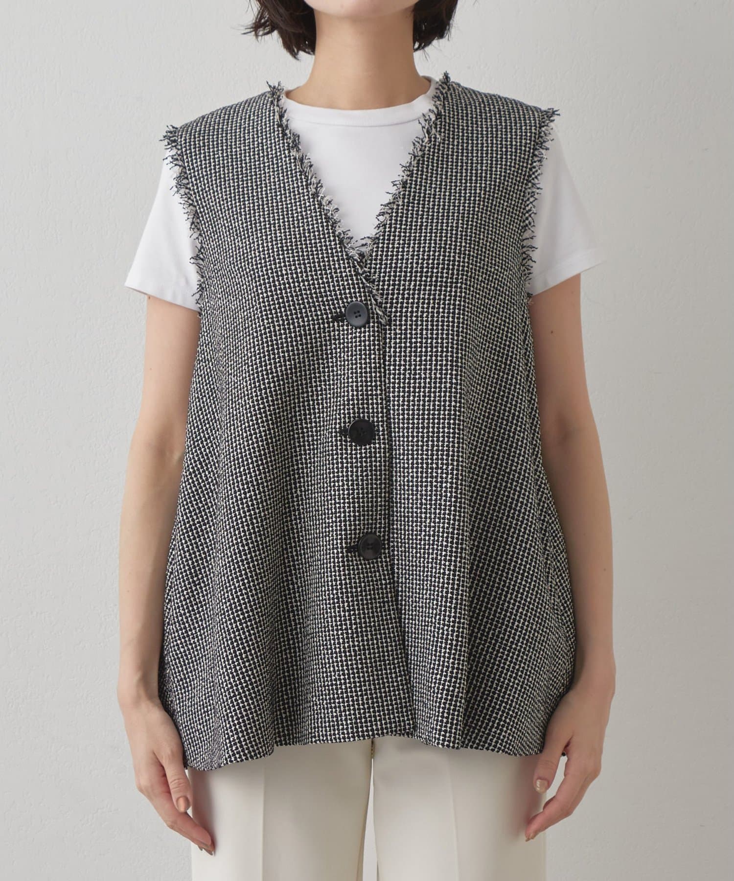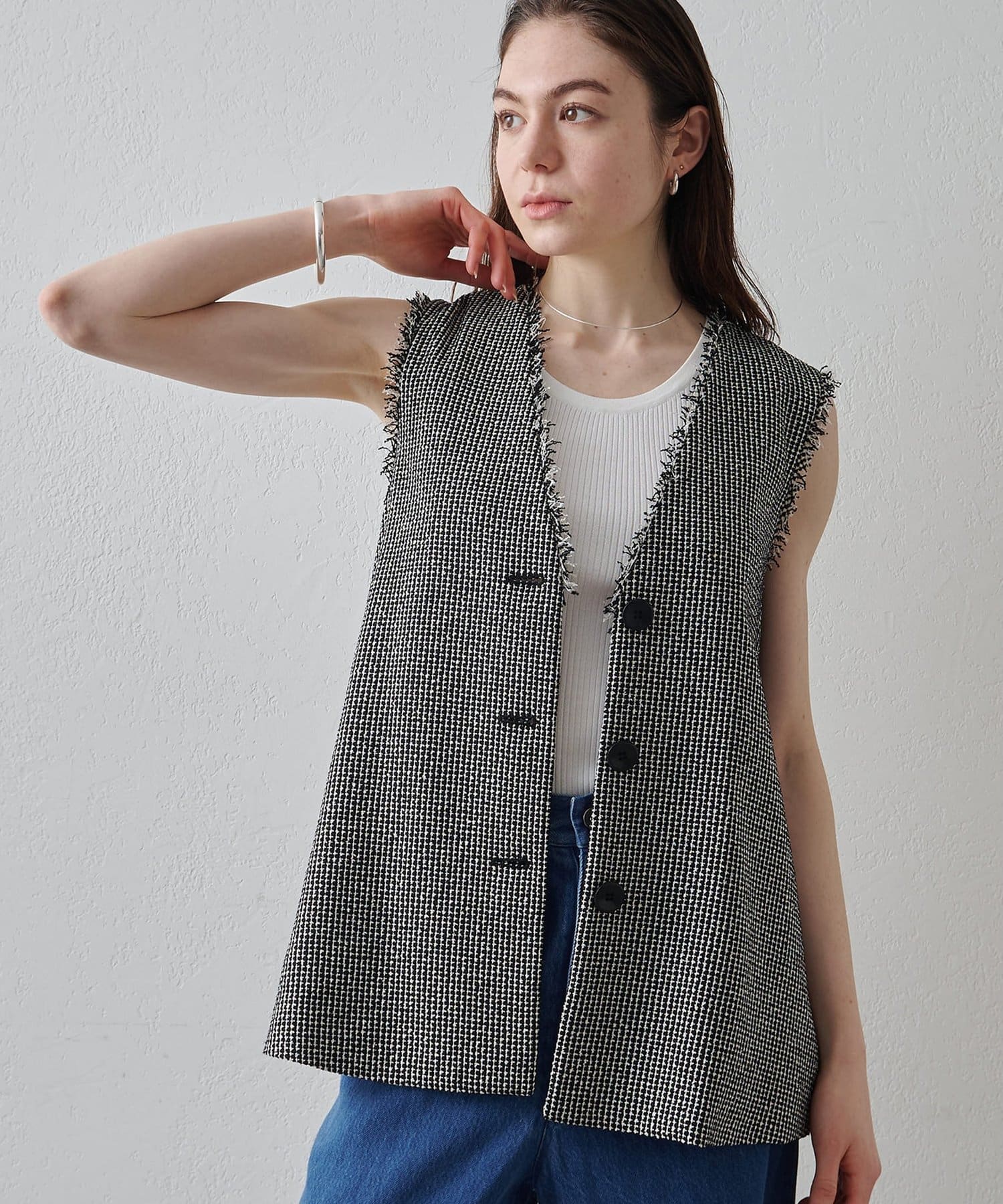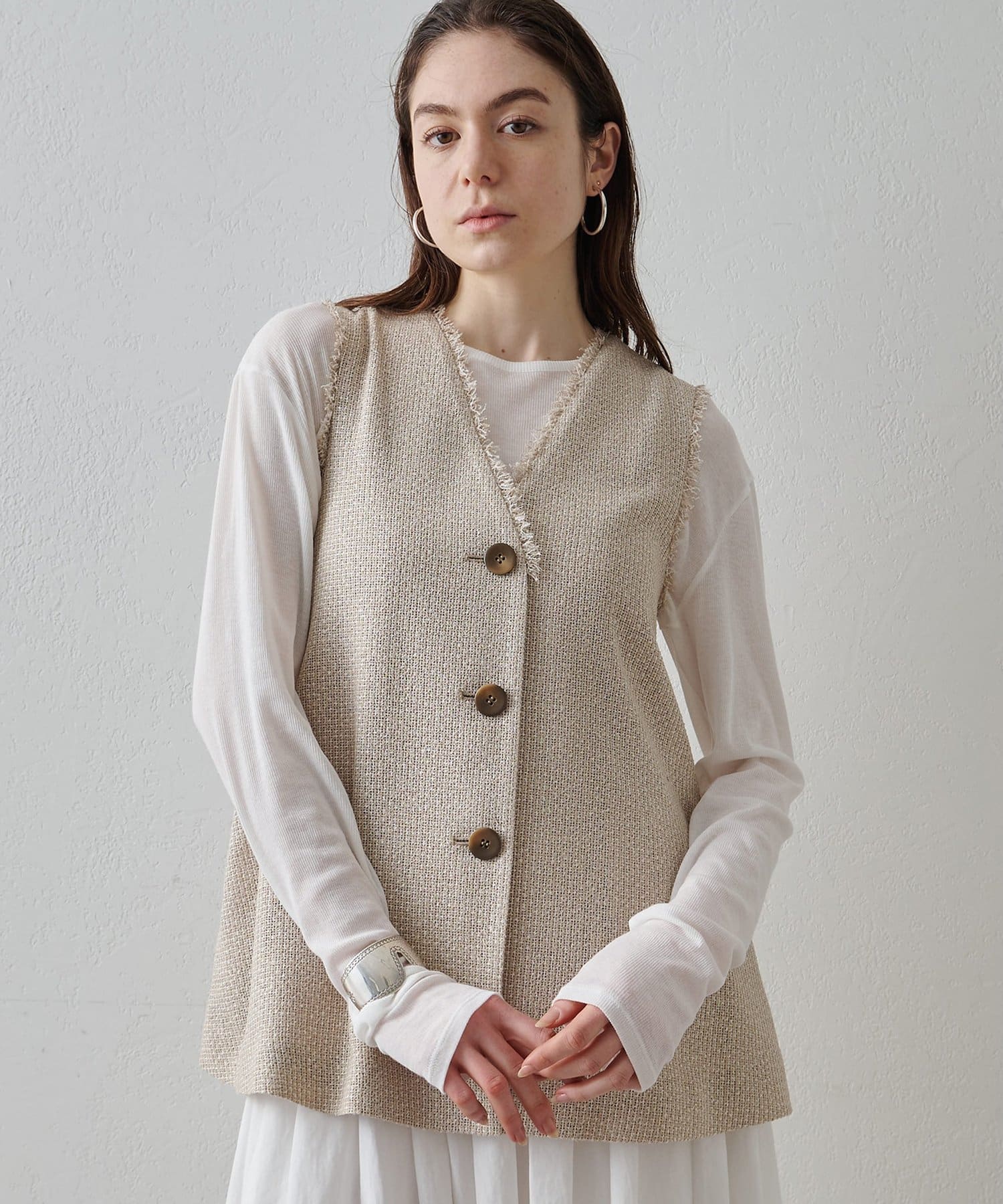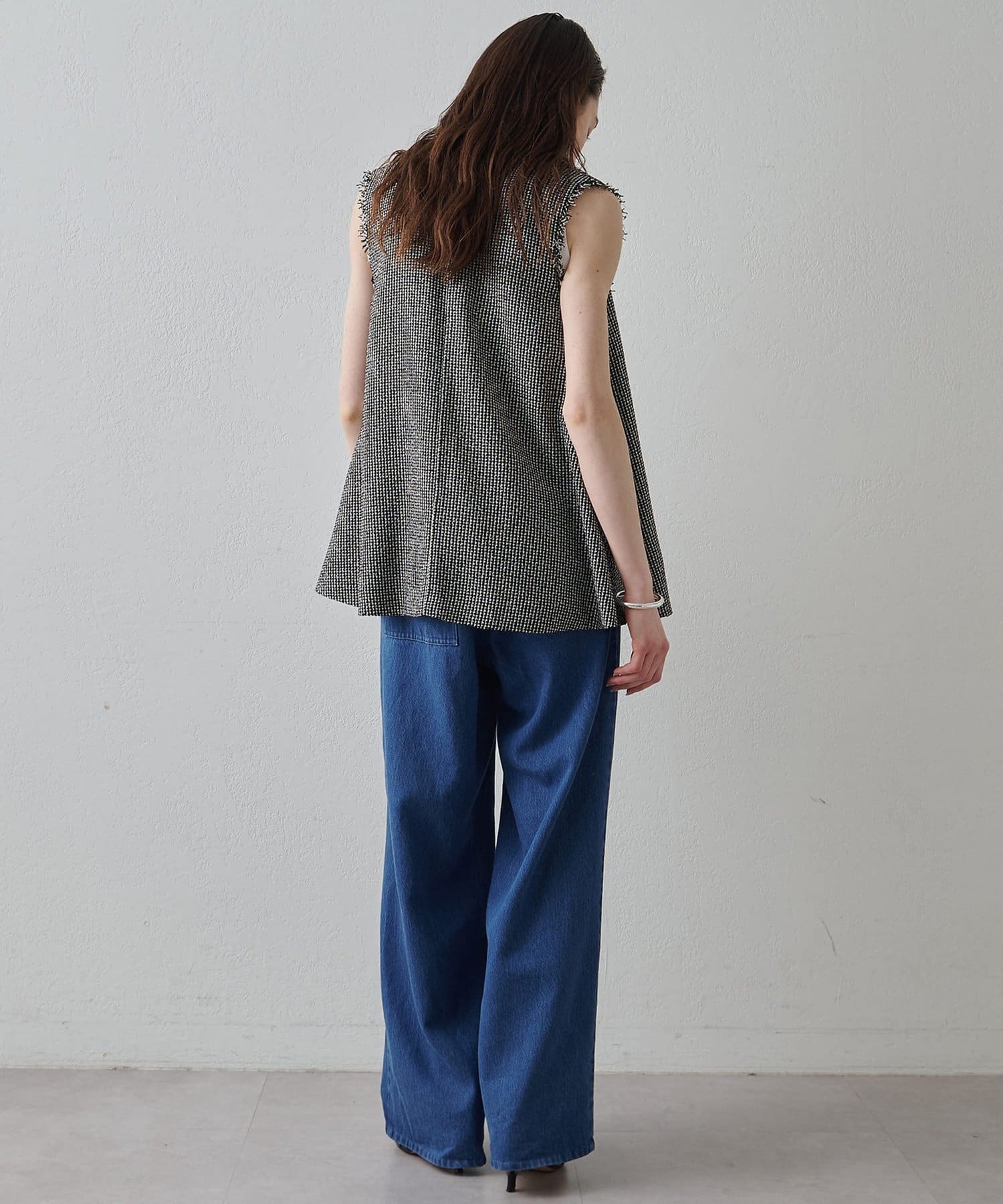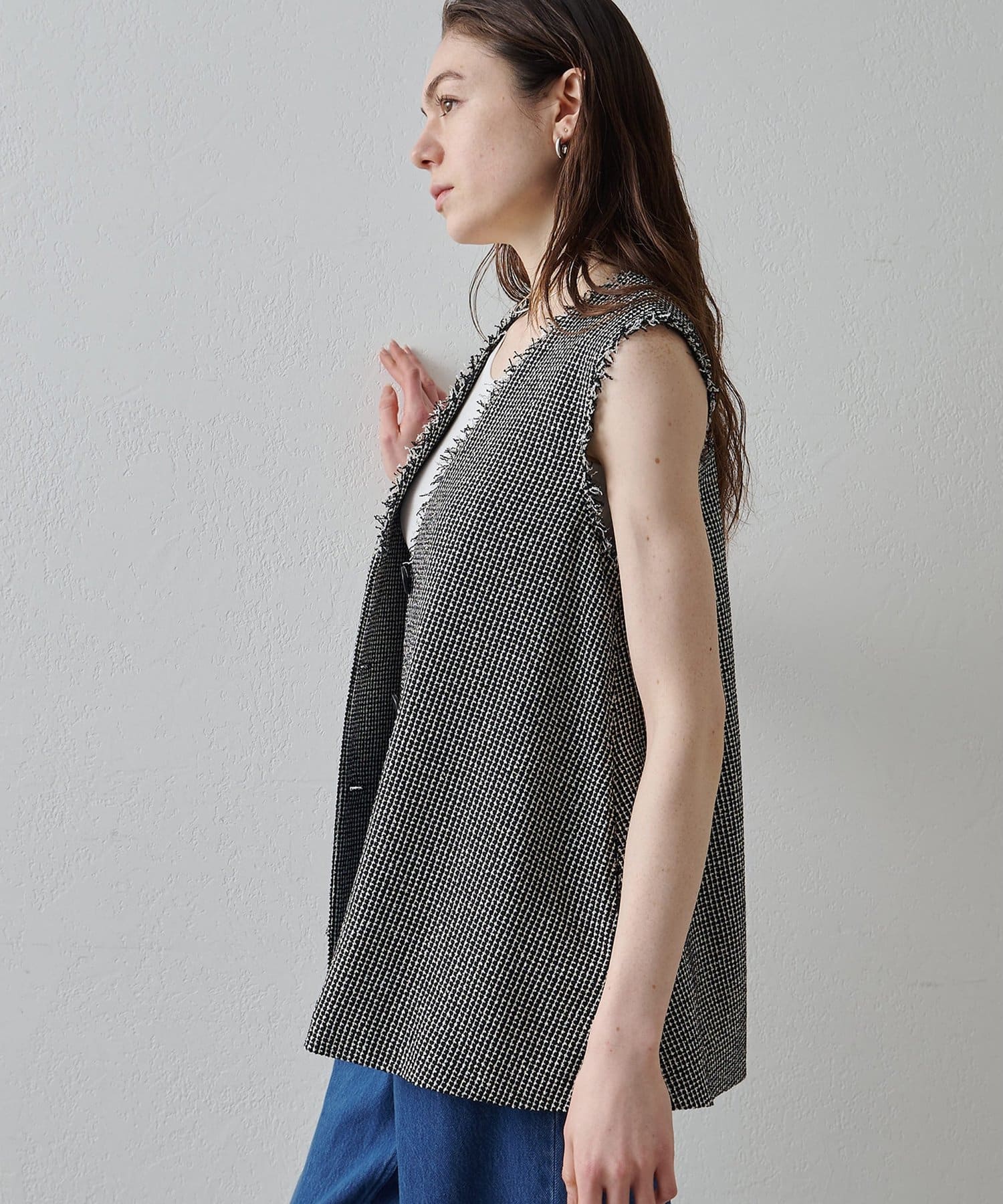 素材の表情もシルエットもアクセントになるフレアジレ
