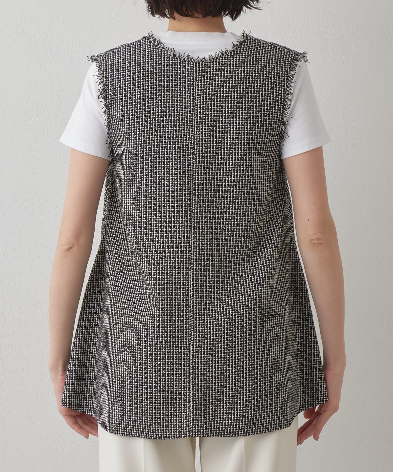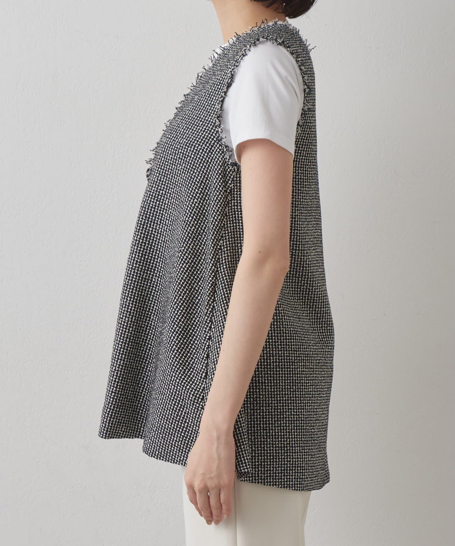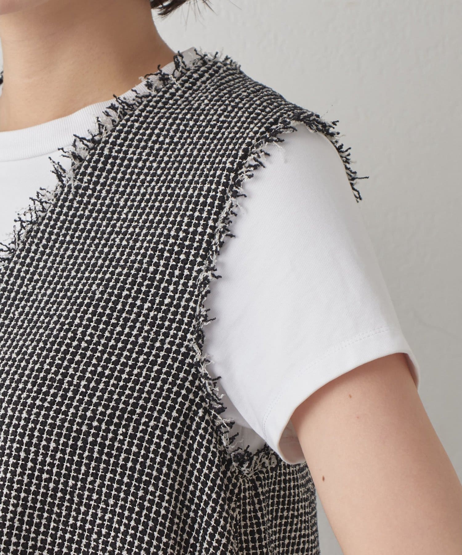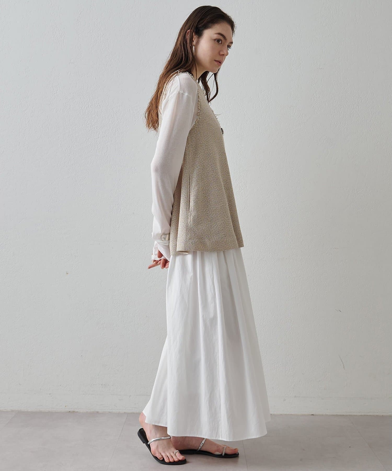 ■一枚でノースリーブトップスとしても、袖のあるトップスにレイヤードしても◎。