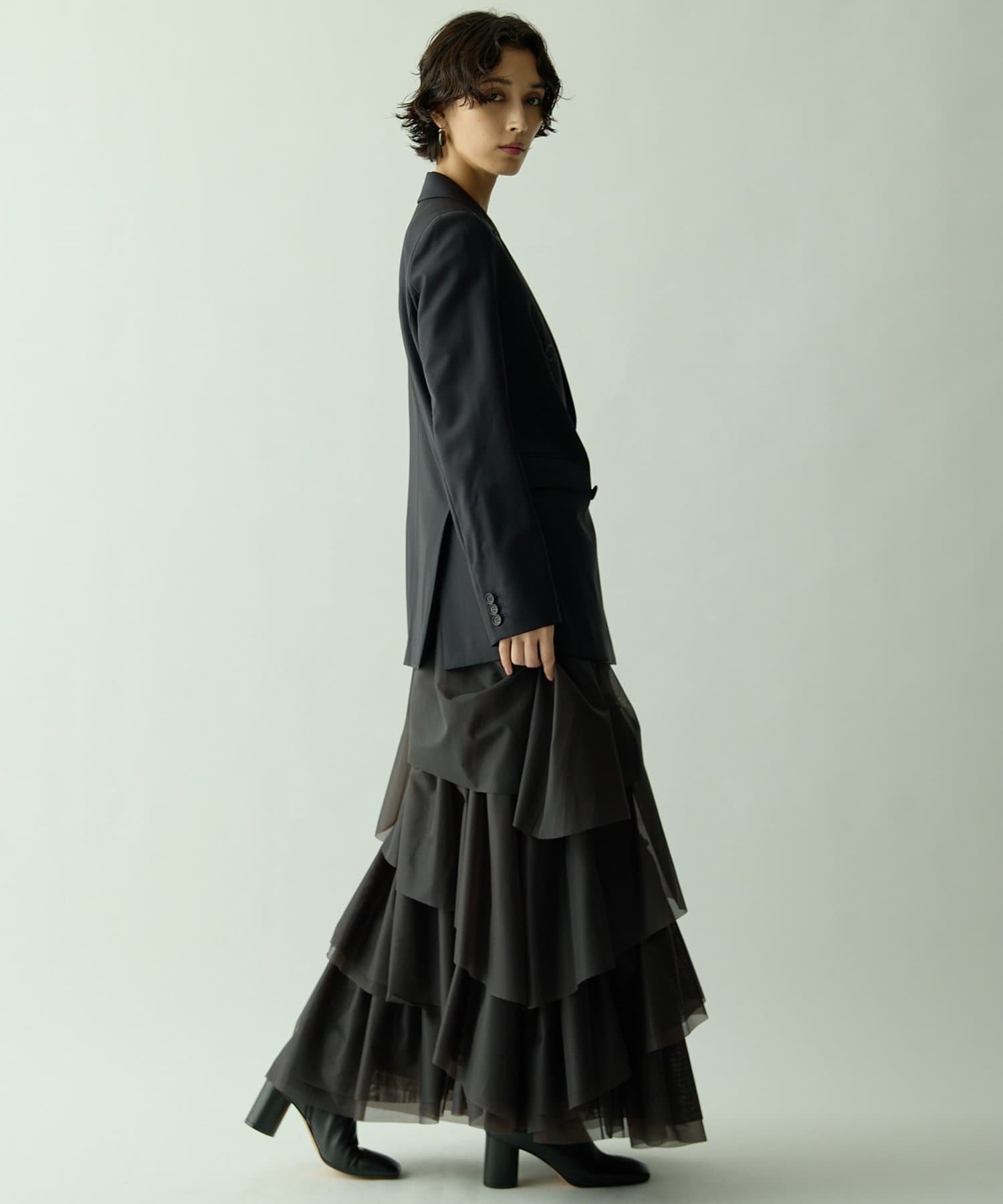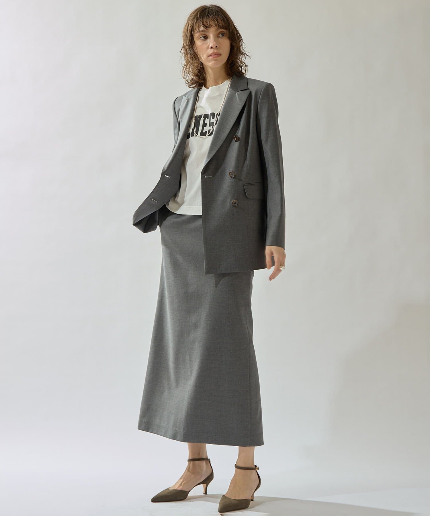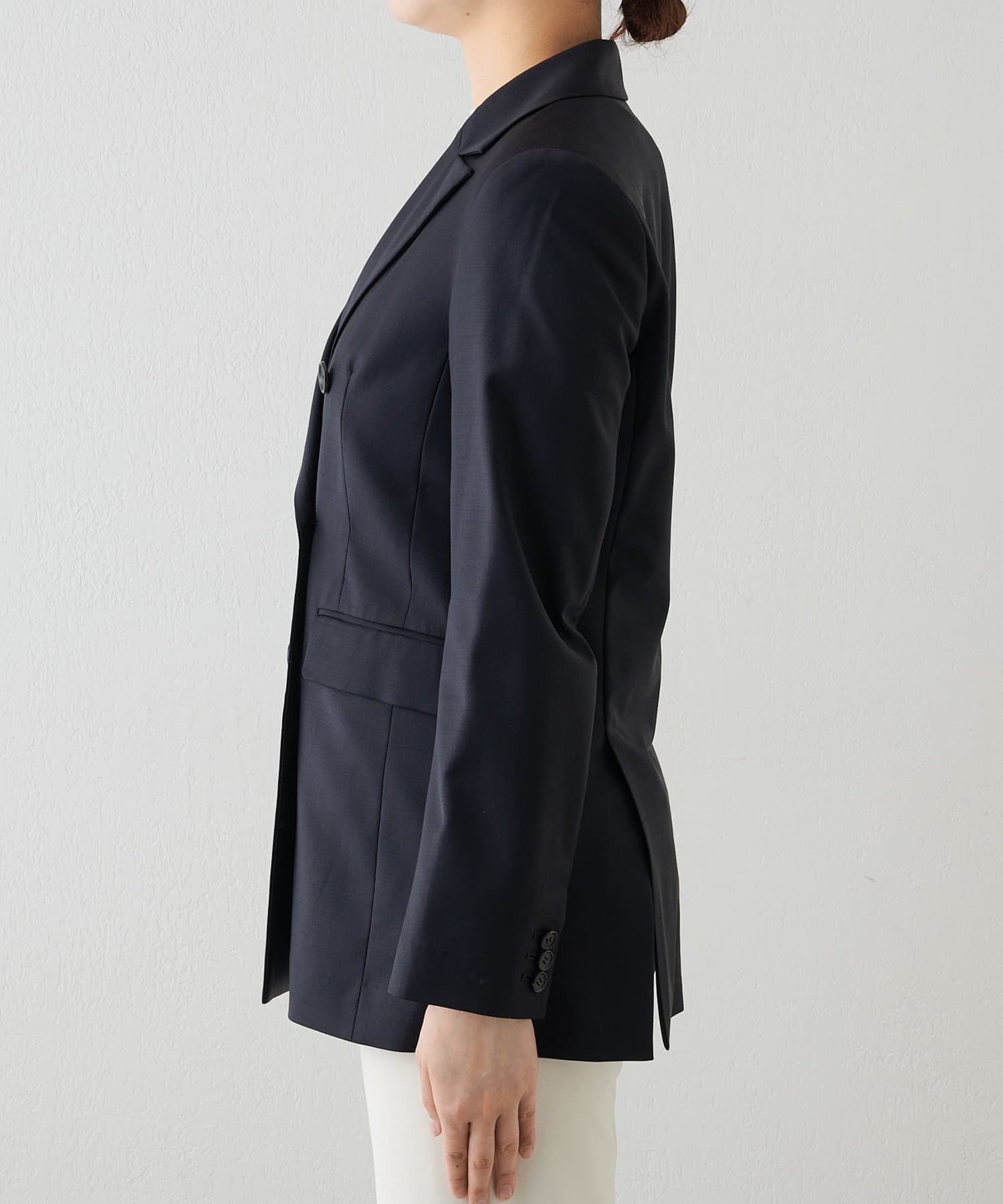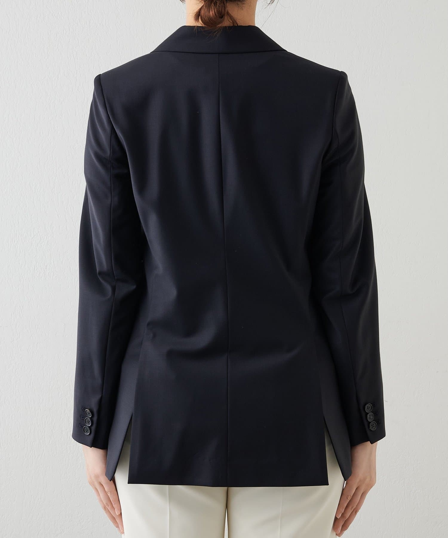 ■後ろはサイドベンツを入れることでボトムシルエットを選ばず、エレガントなムードをプラス。