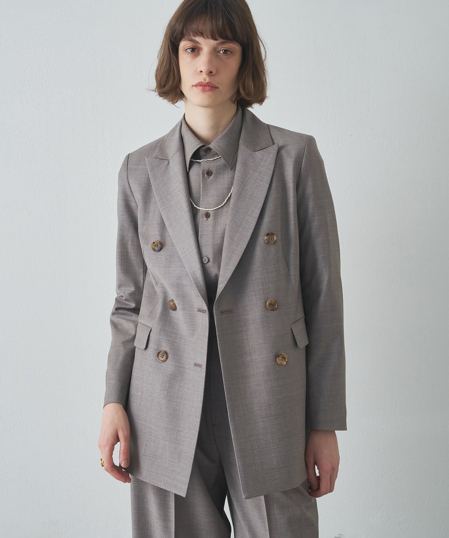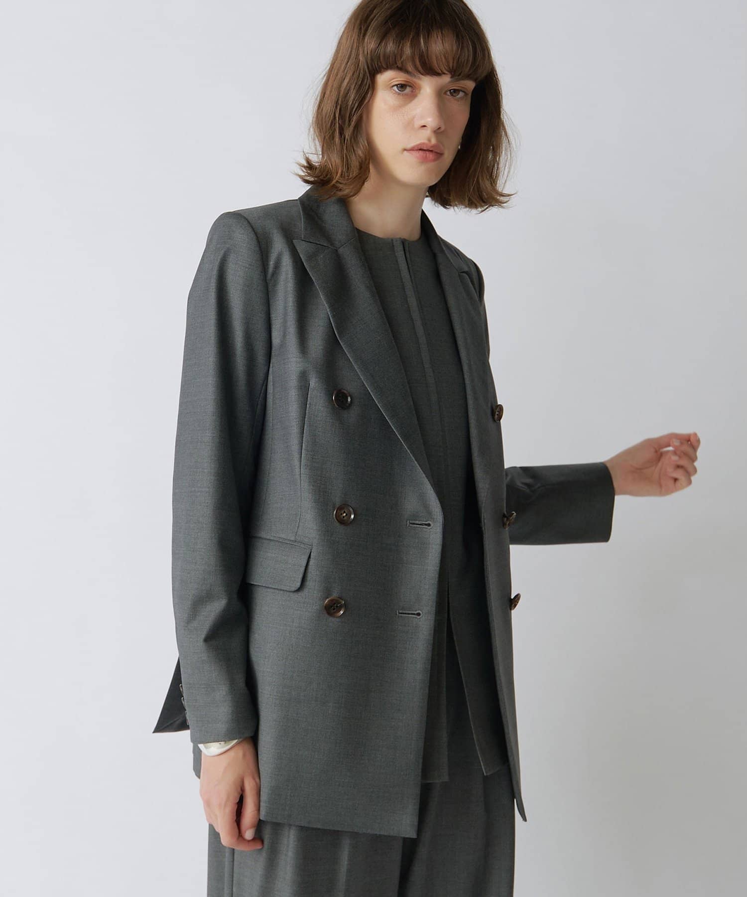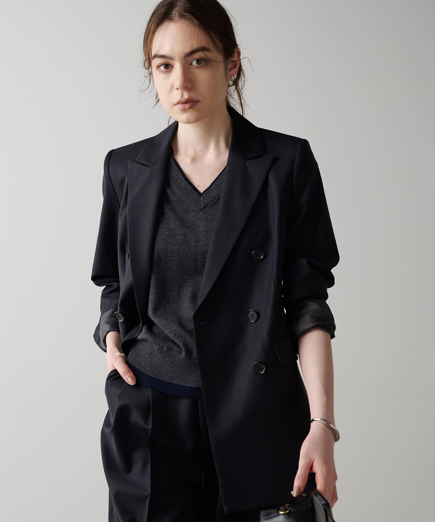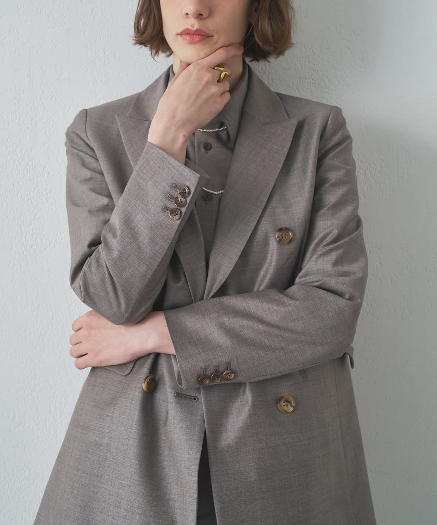 ■クラシカルな佇まいのピークドラペルダブルジャケット。