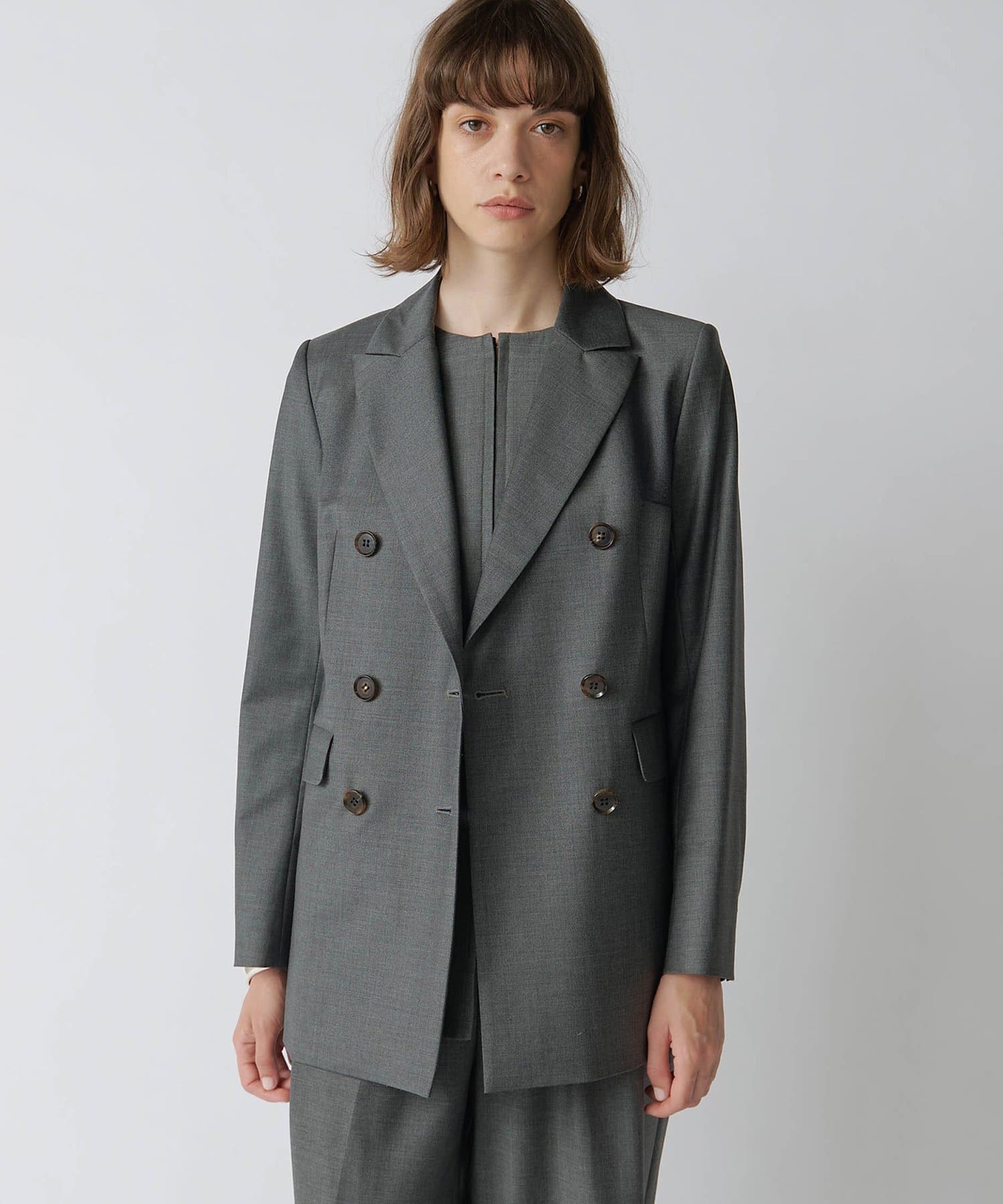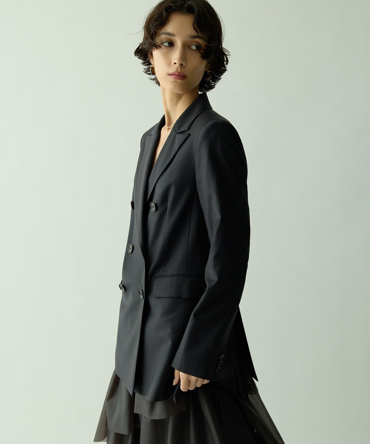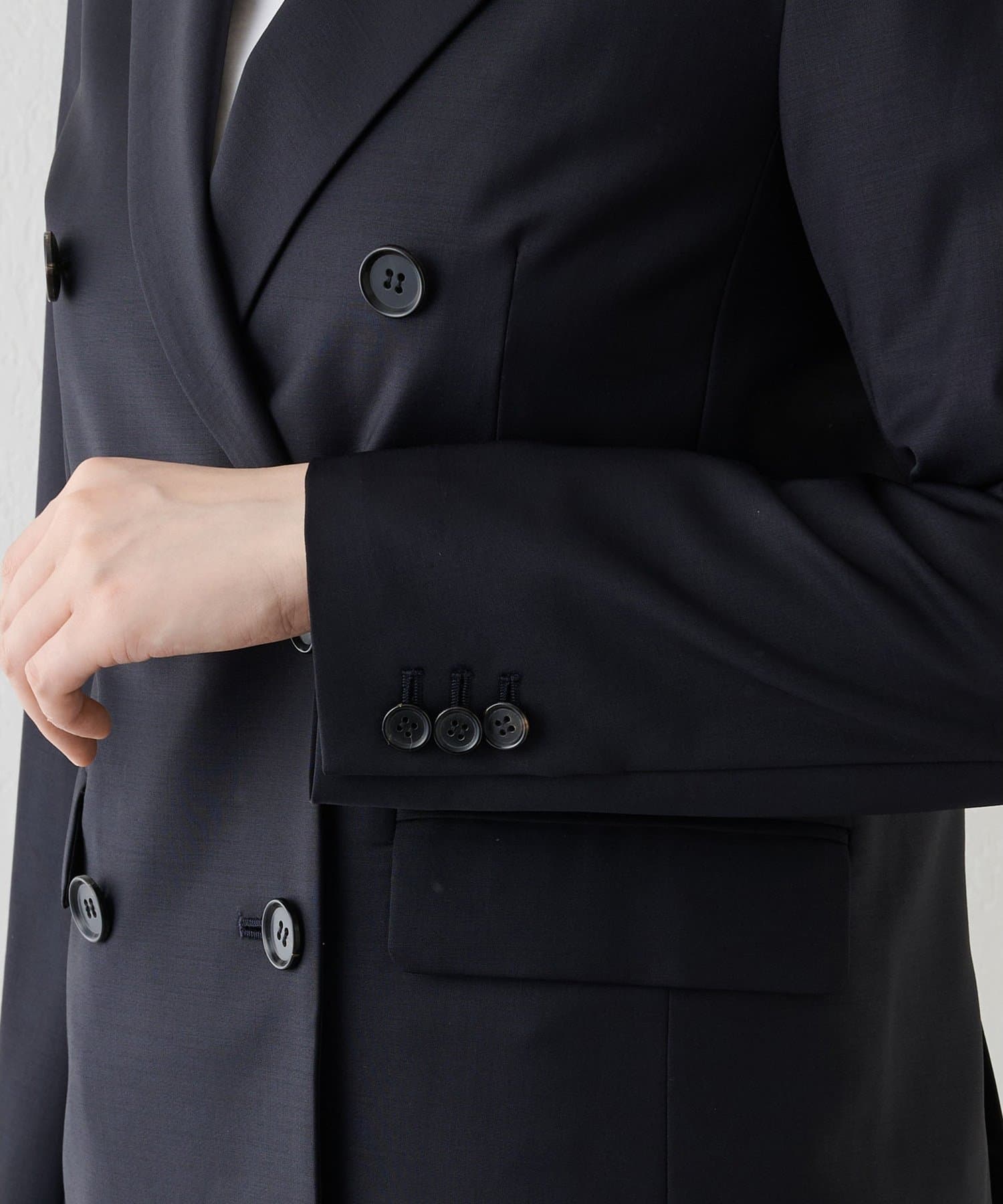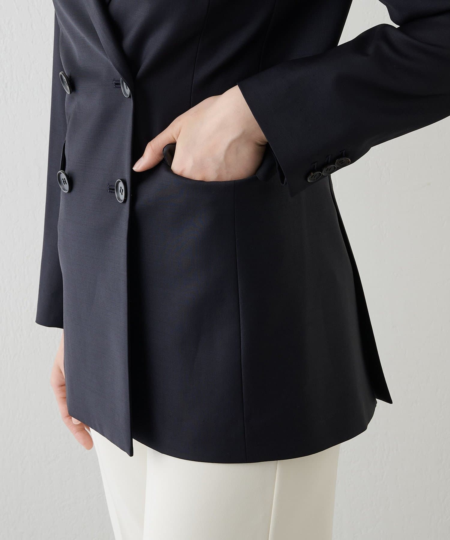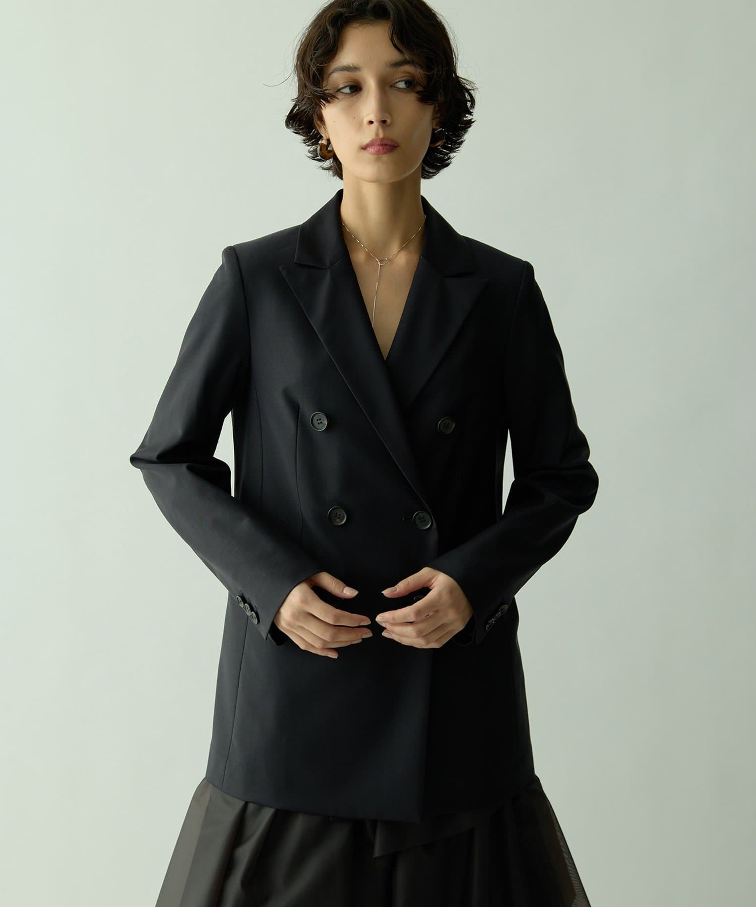 ■クラシカルな佇まいのピークドラペルダブルジャケット。