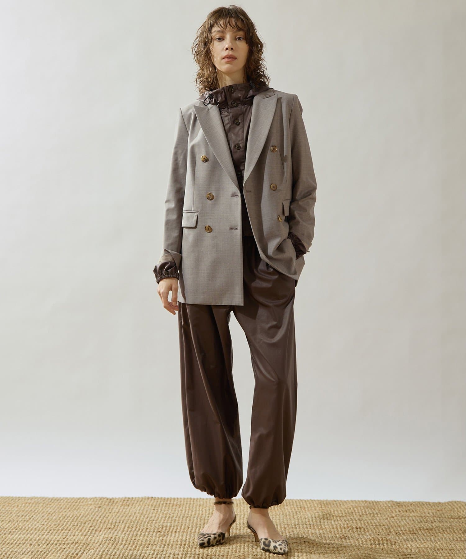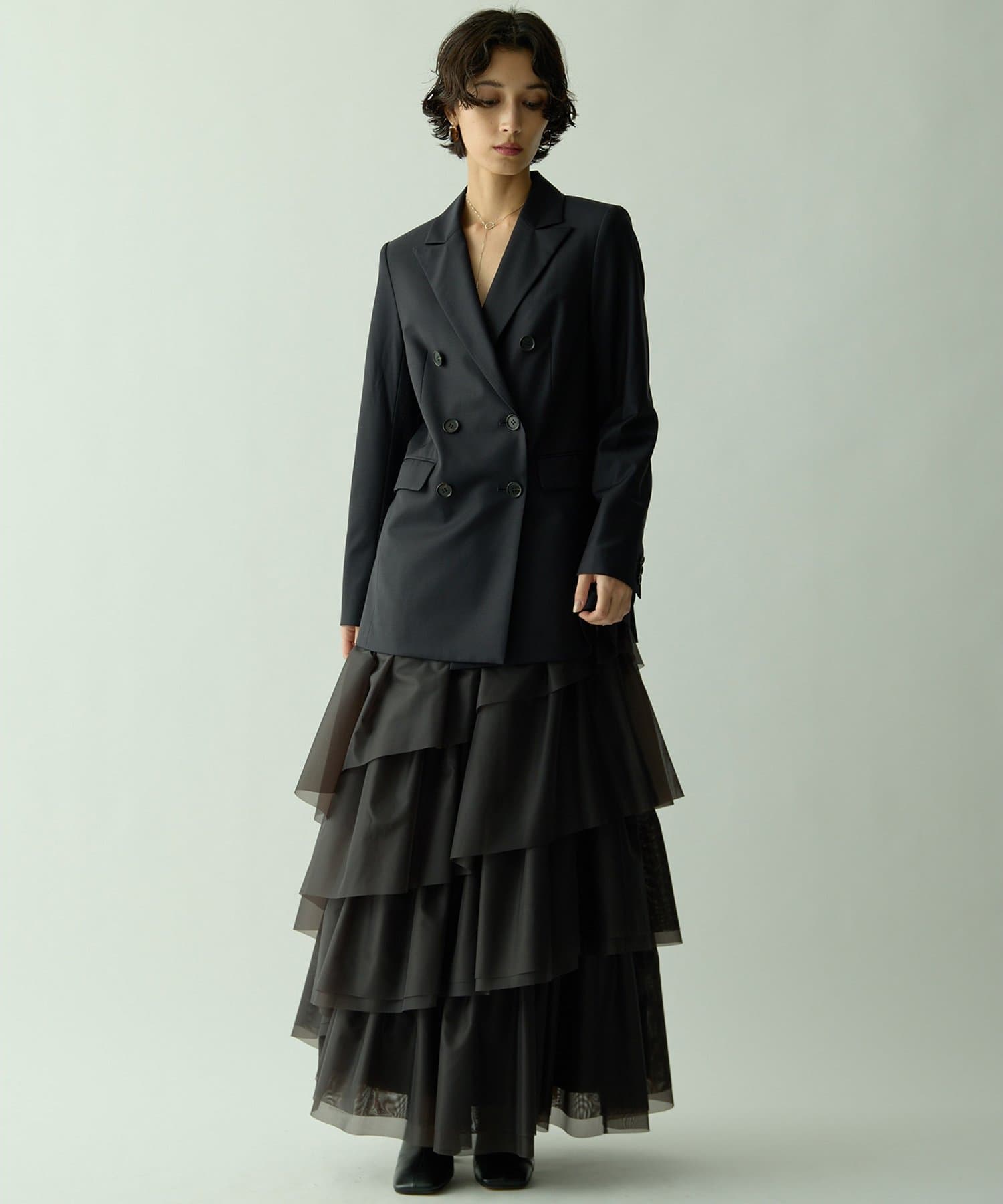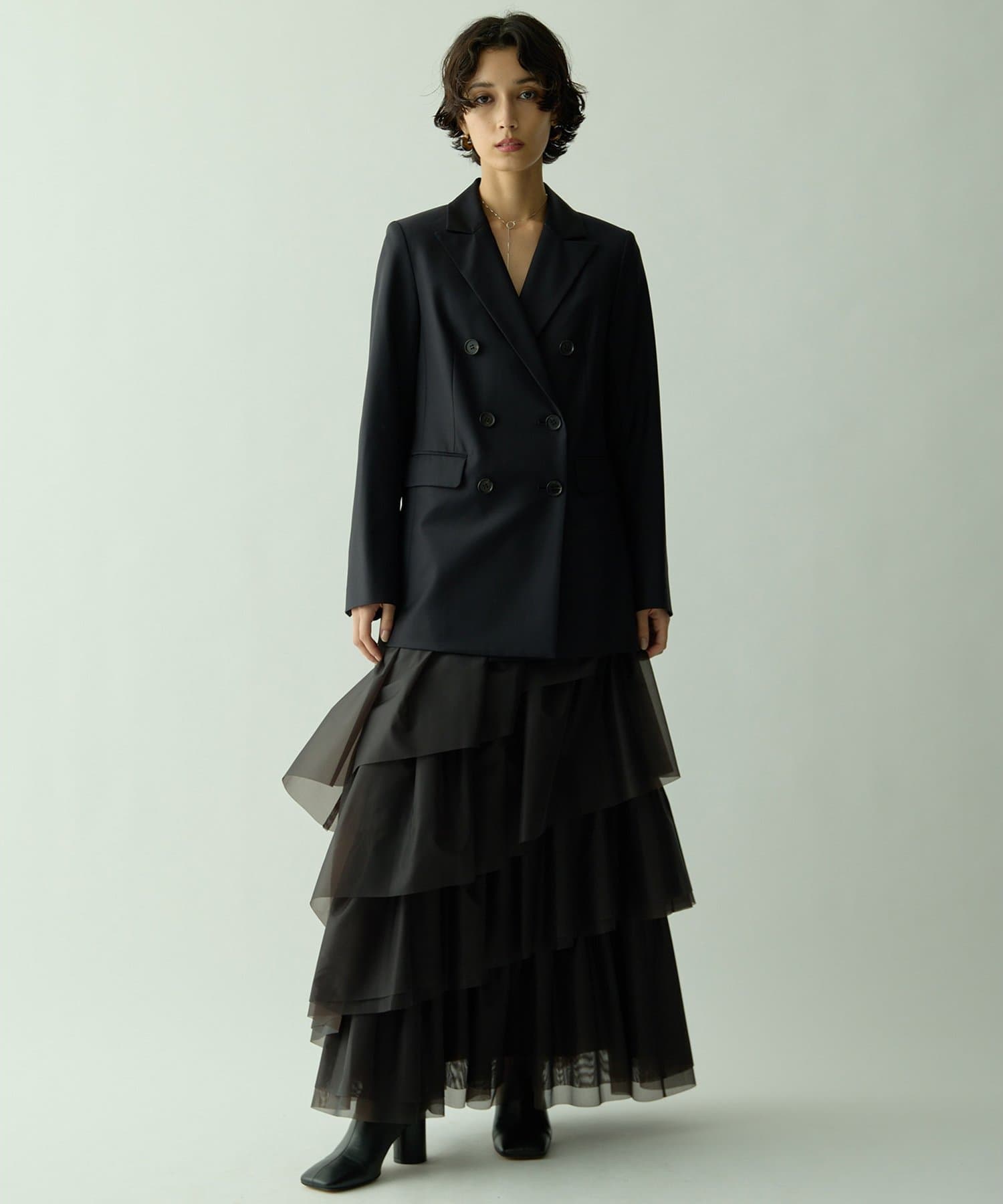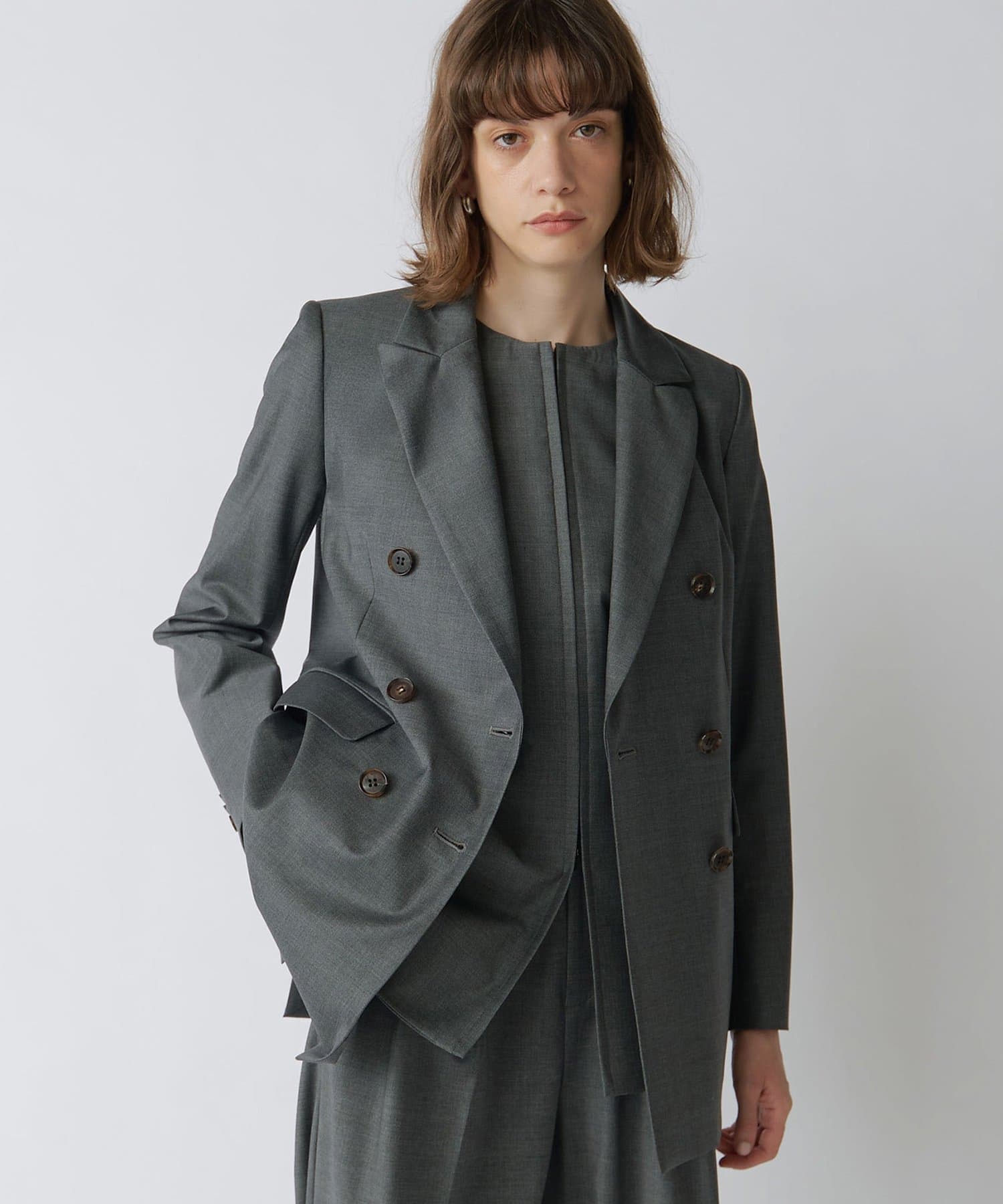 ■クラシカルな佇まいのピークドラペルダブルジャケット。