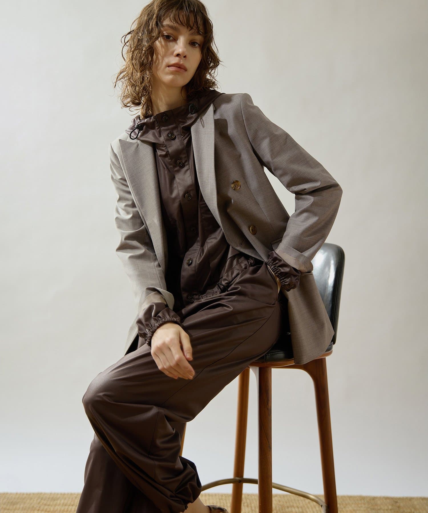 ツヤがあり、まさに大人のための美しいジャケット。上品かつ滑らかな質感、着ていて気持ちが良いです。丈は比較的長めですが、セットアップで着てもバランスがとりやすかったです。