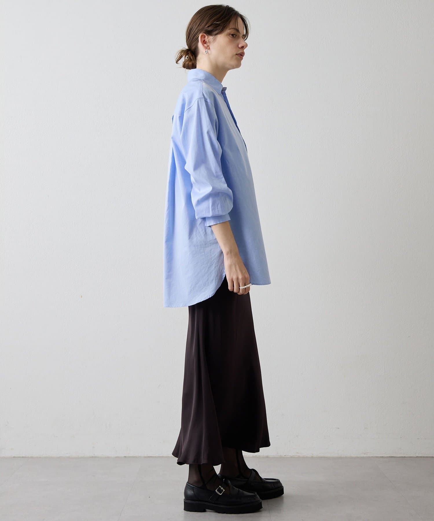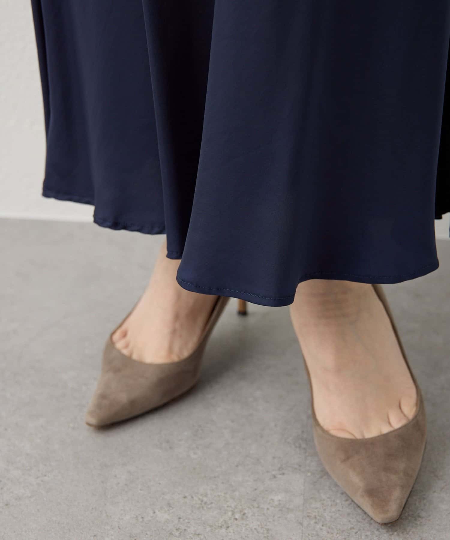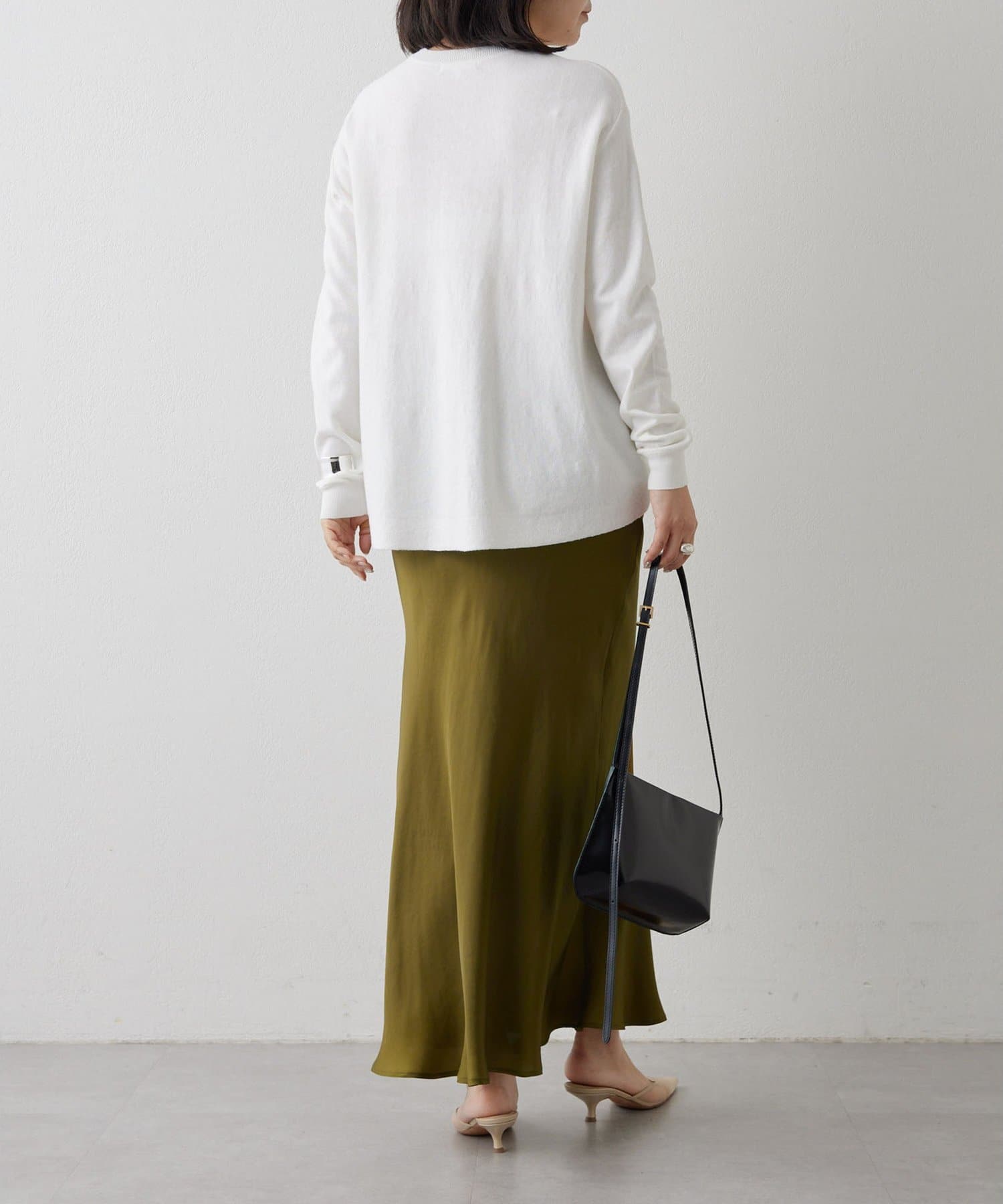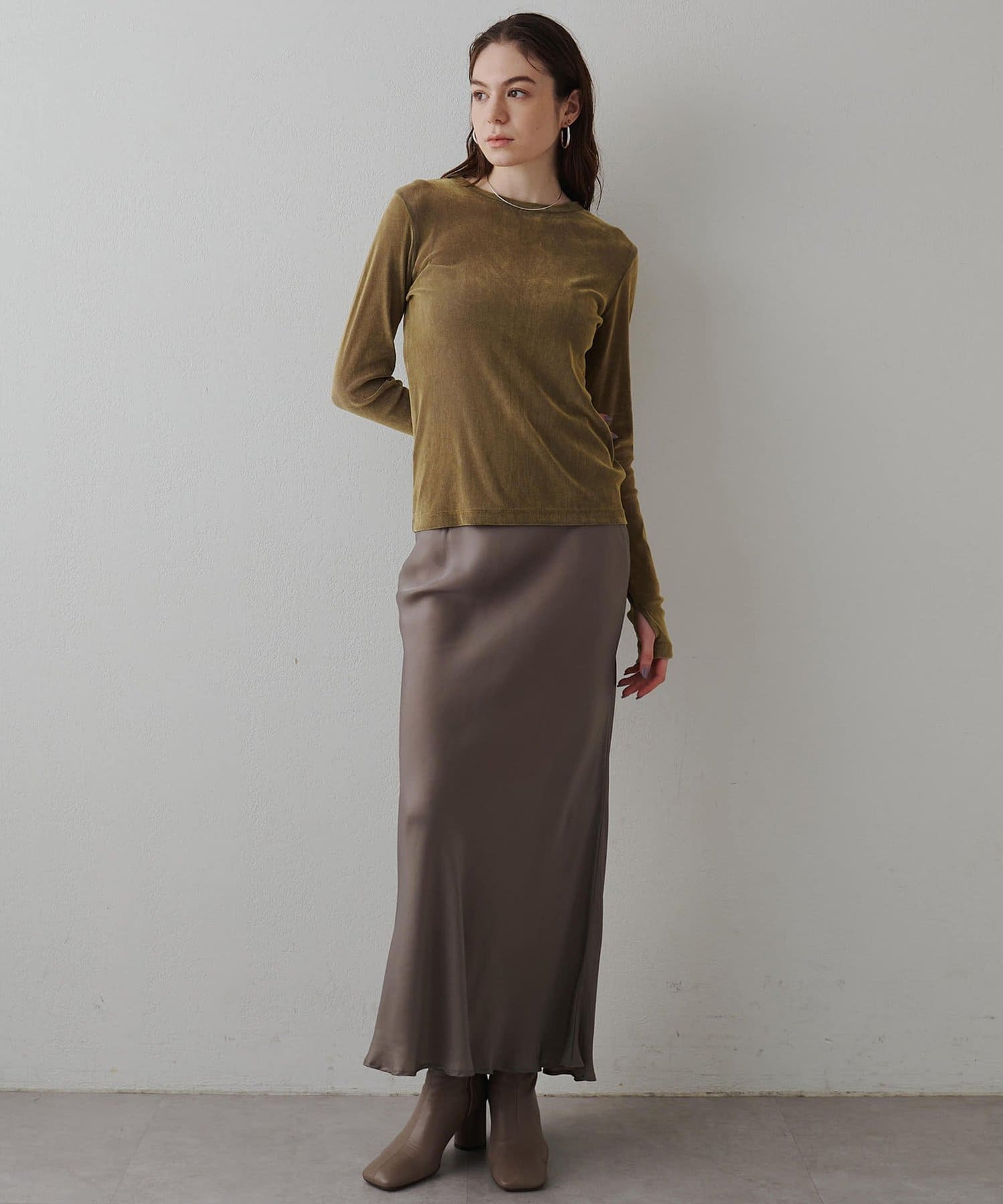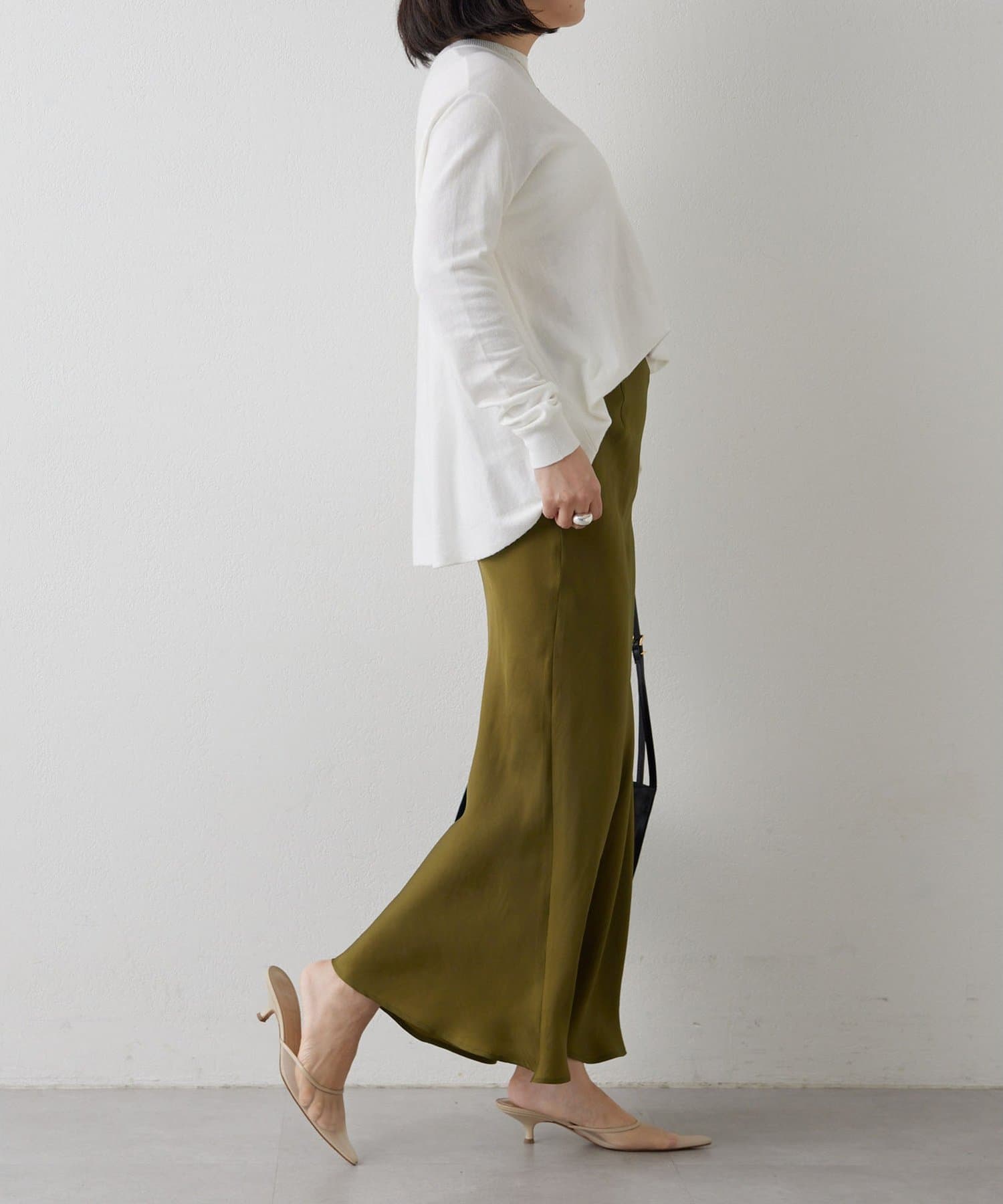 ■バイアスの地の目が身体に程よく馴染みつつフィットしすぎないサイズ感に仕上げ、程度なマーメイドシルエットに。