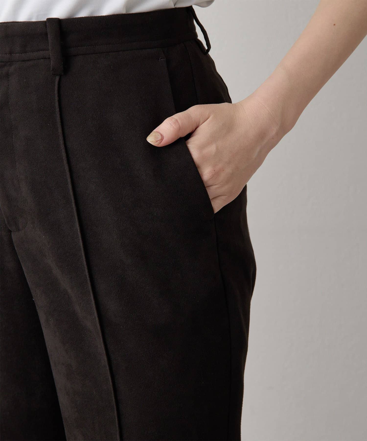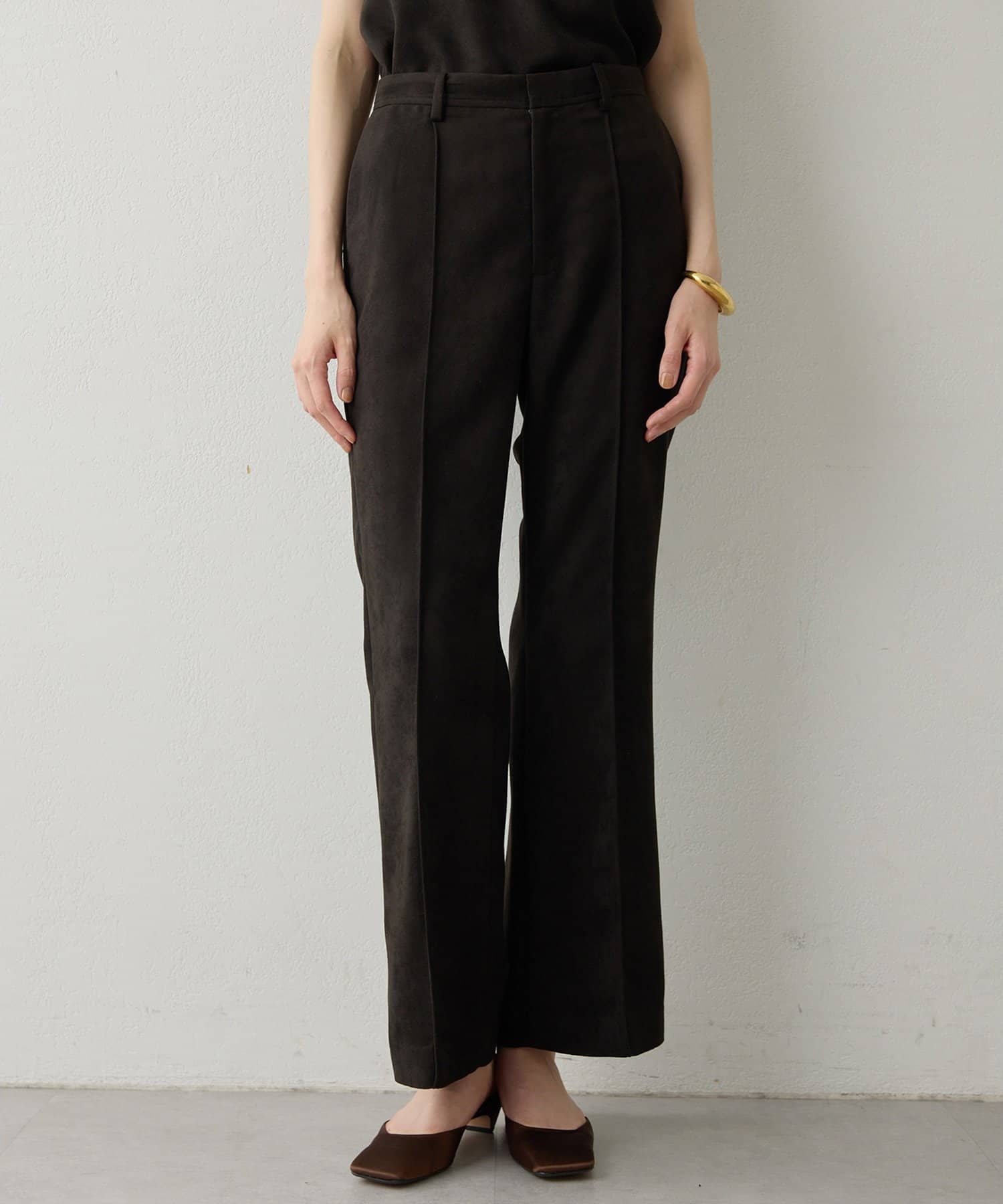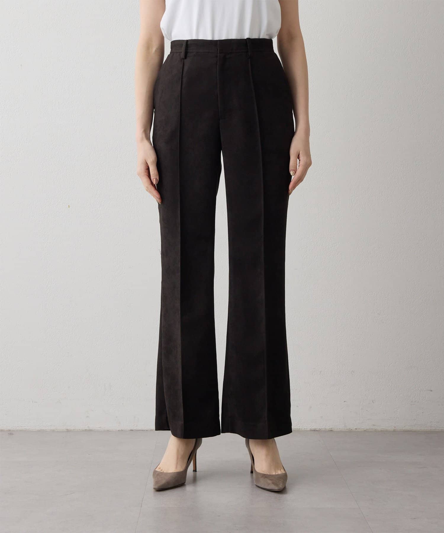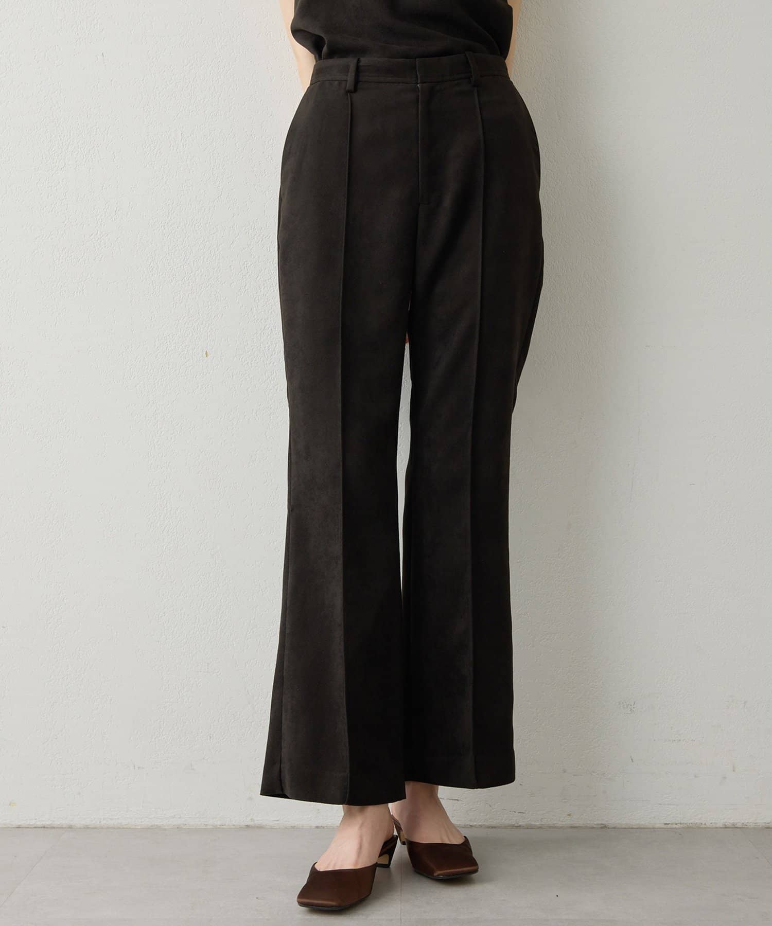 ■フェイクスエード生地を使用したセミフレアパンツ。