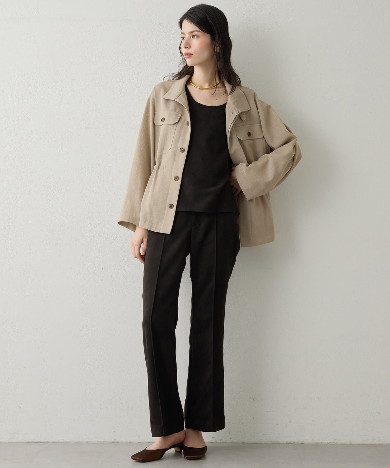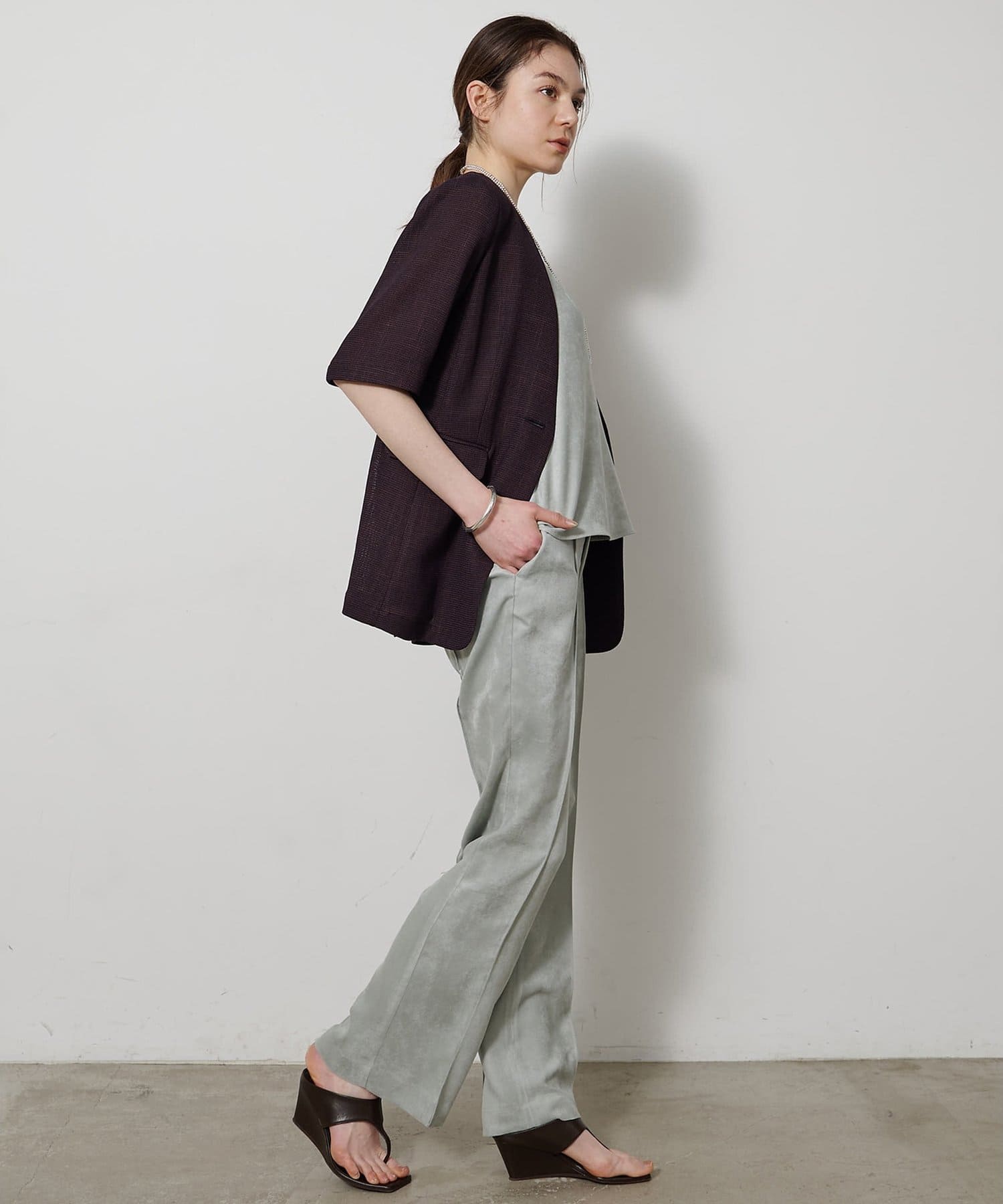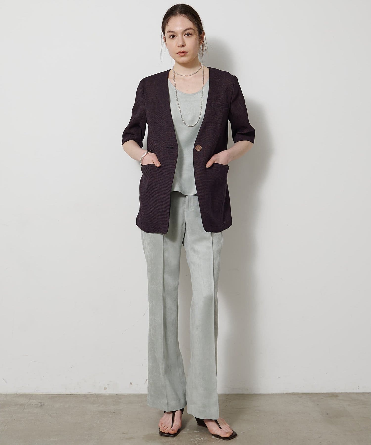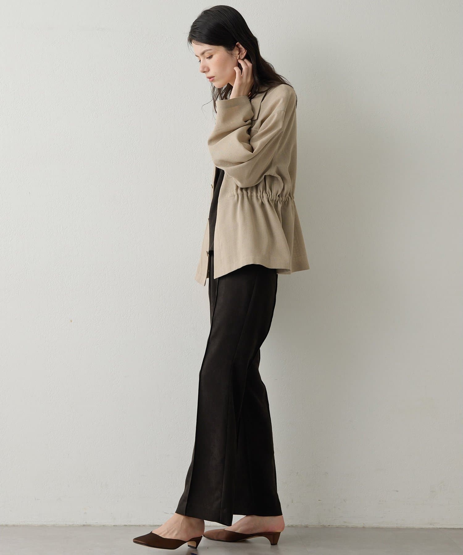 ■フェイクスエード生地を使用したセミフレアパンツ。