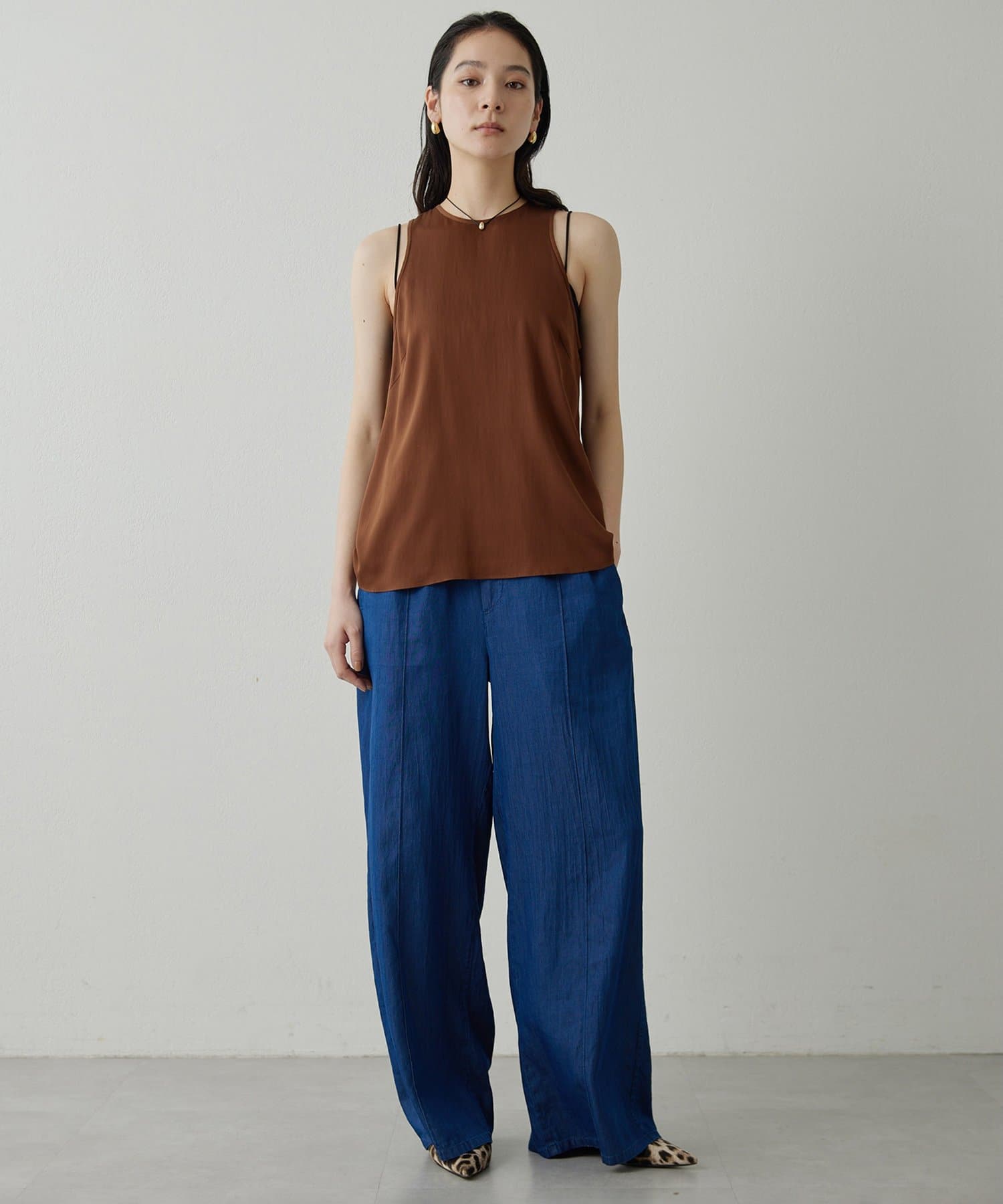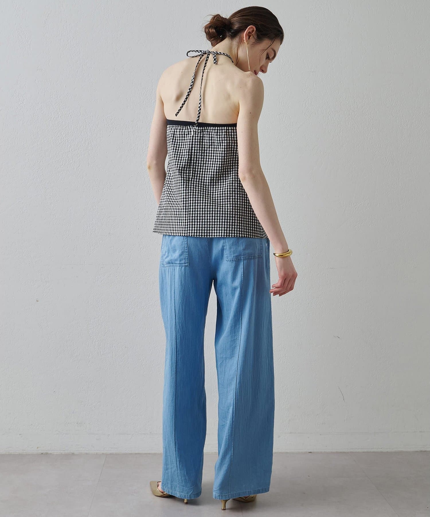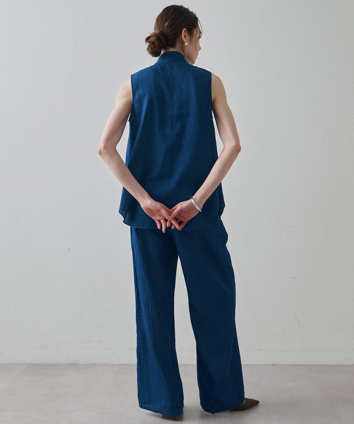 ■同素材のソフトデニムボウタイブラウス(ブランド品番:DNZ1061404A0003)とのセットアップもおすすめ。