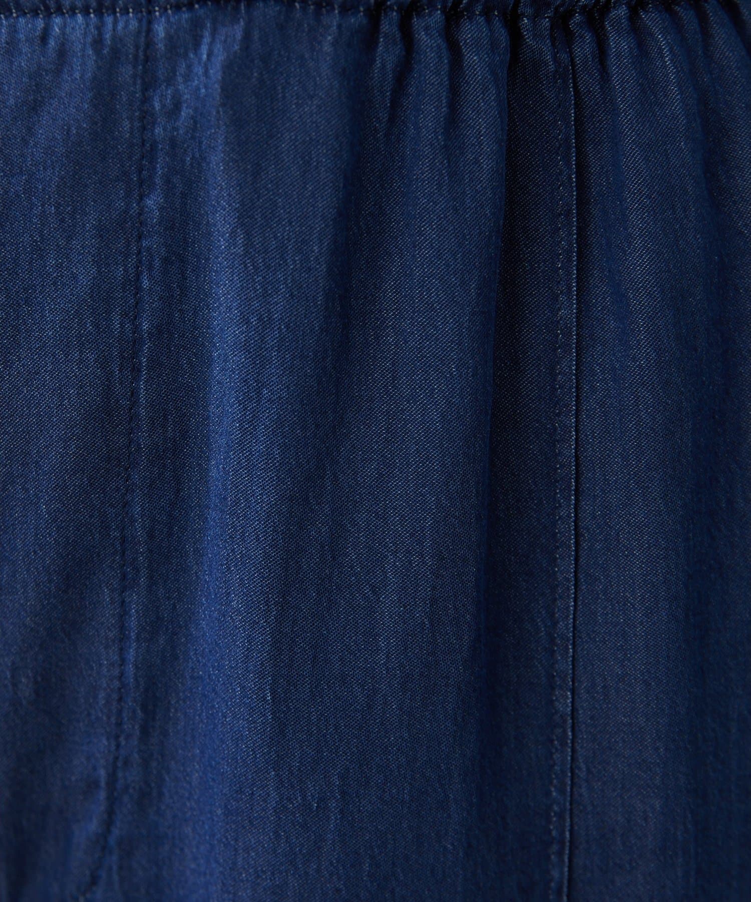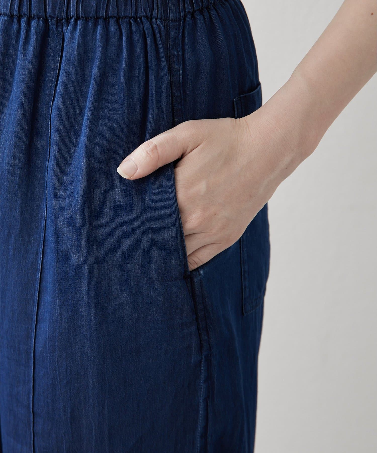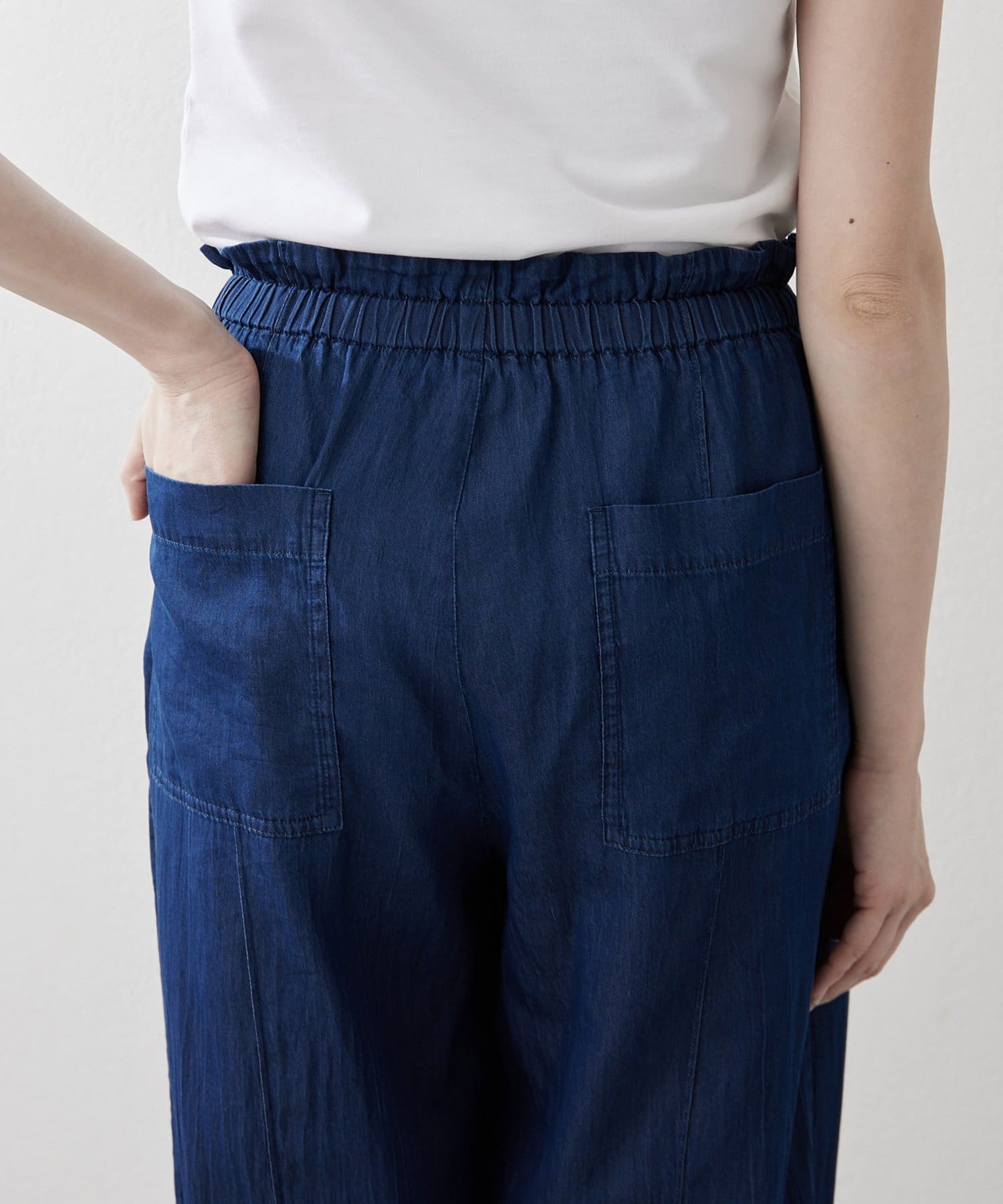 ■ウエストは平ゴムと内側のゴムスピンドルでサイズ感を調整できる気軽な仕様に。