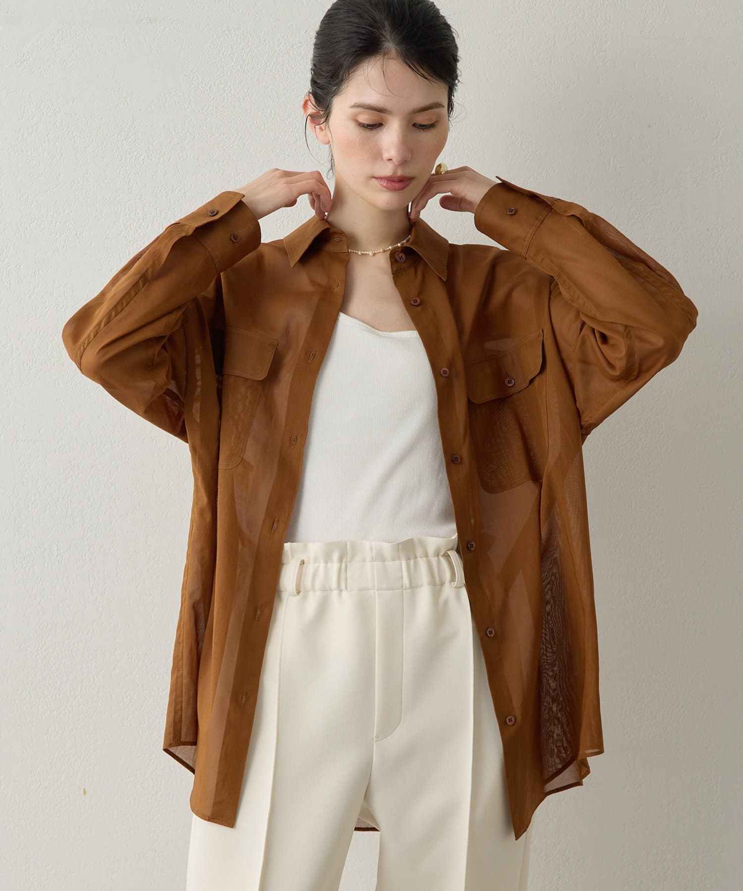夏の羽織りとして重宝する、軽やかなコットンシアーシャツ