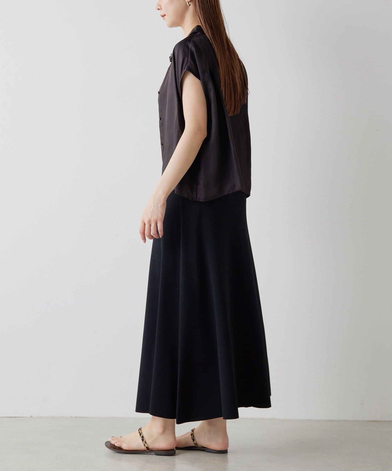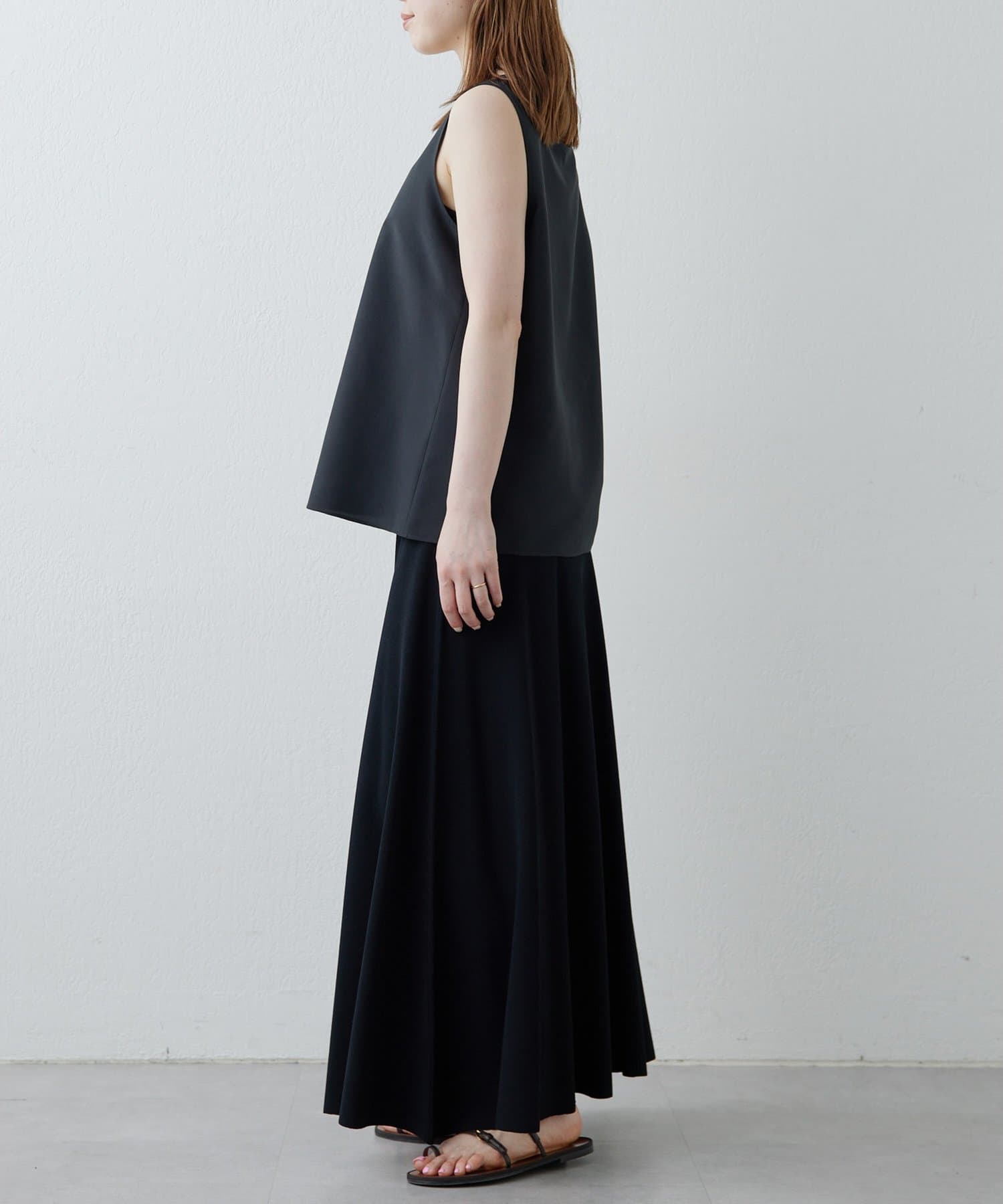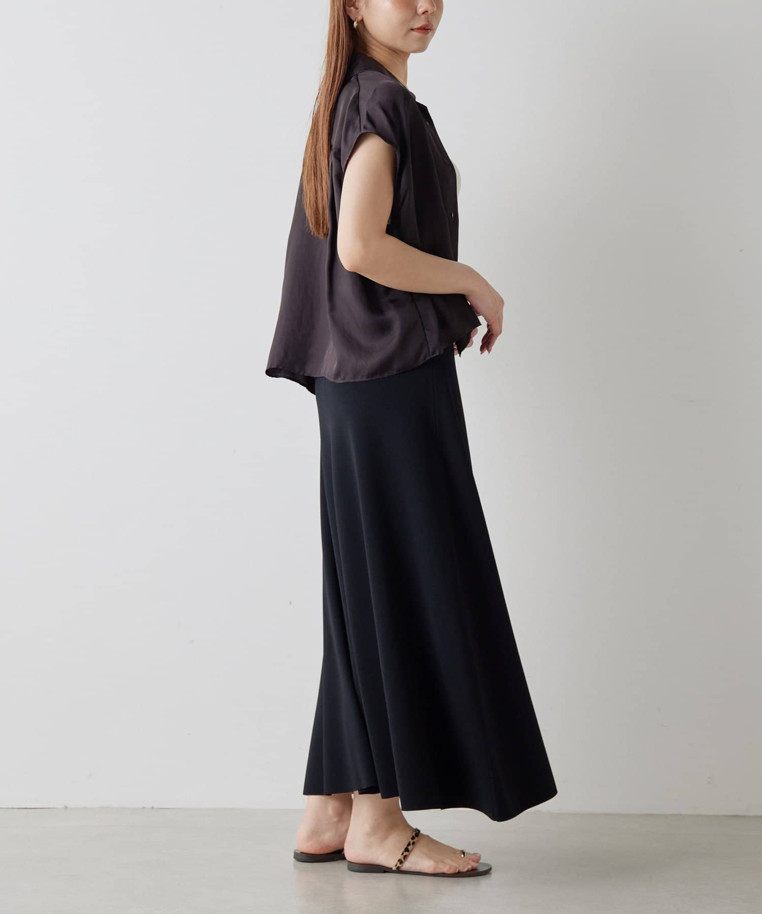■落ち感のある素材がすっきりとしたシルエットを演出。
