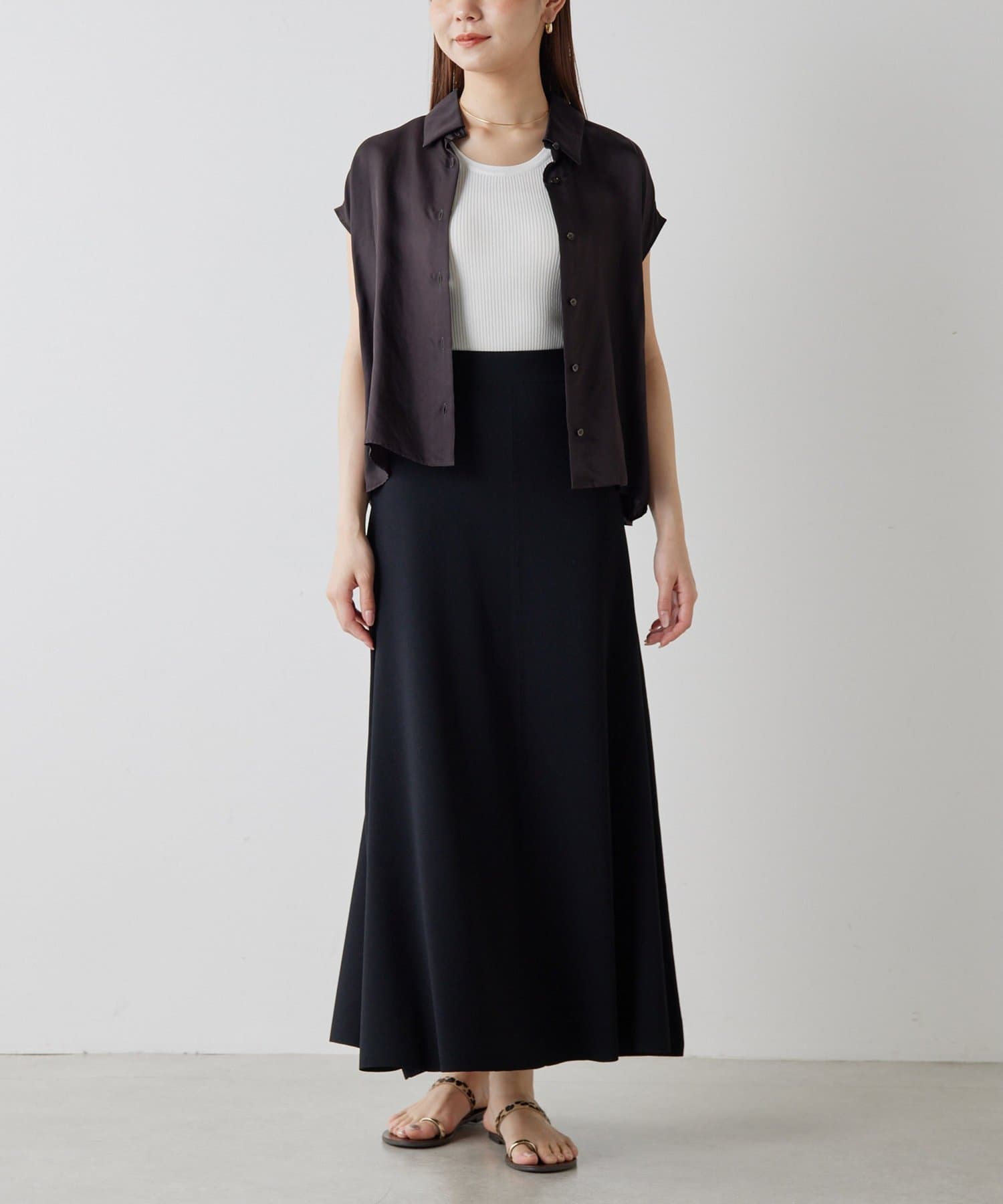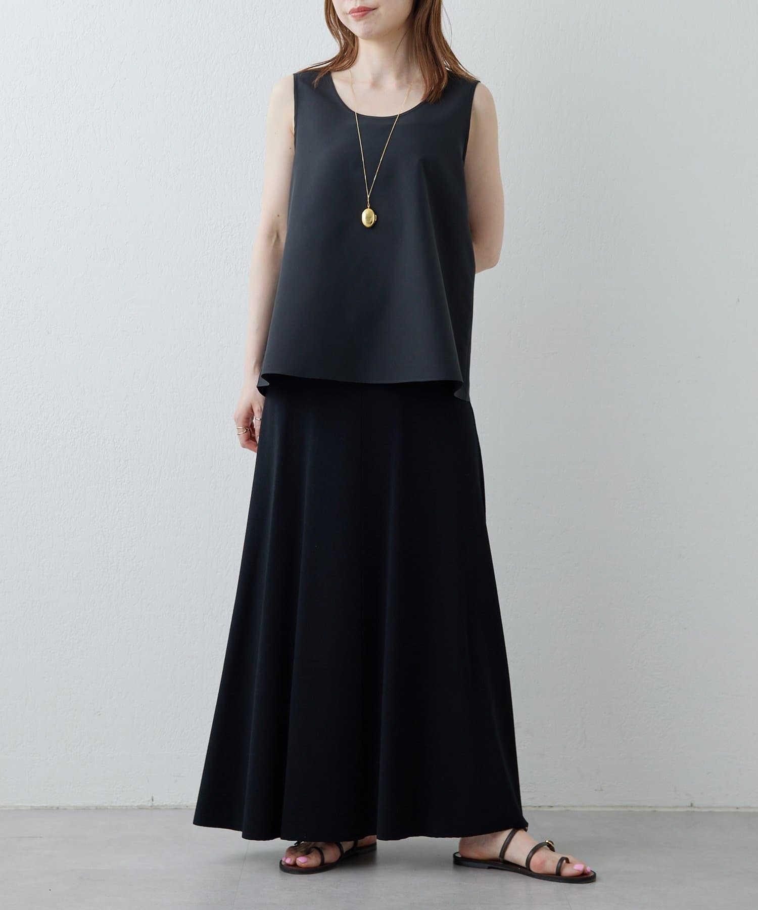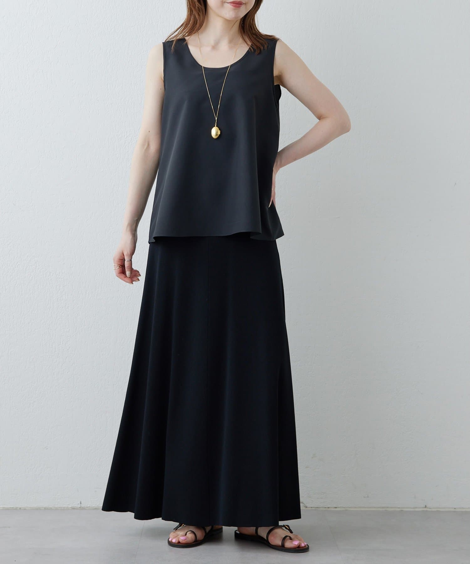 ■落ち感のある素材がすっきりとしたシルエットを演出。