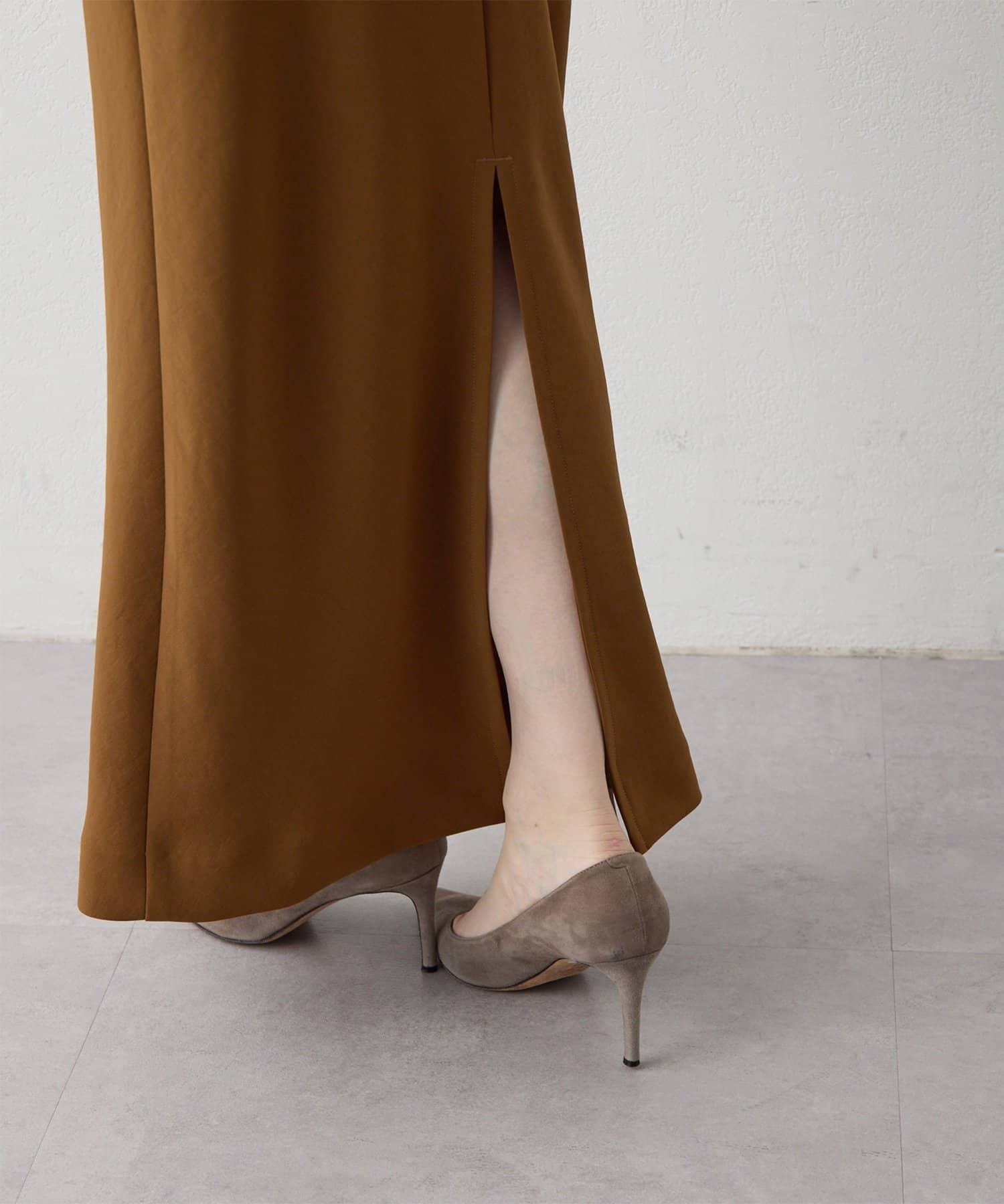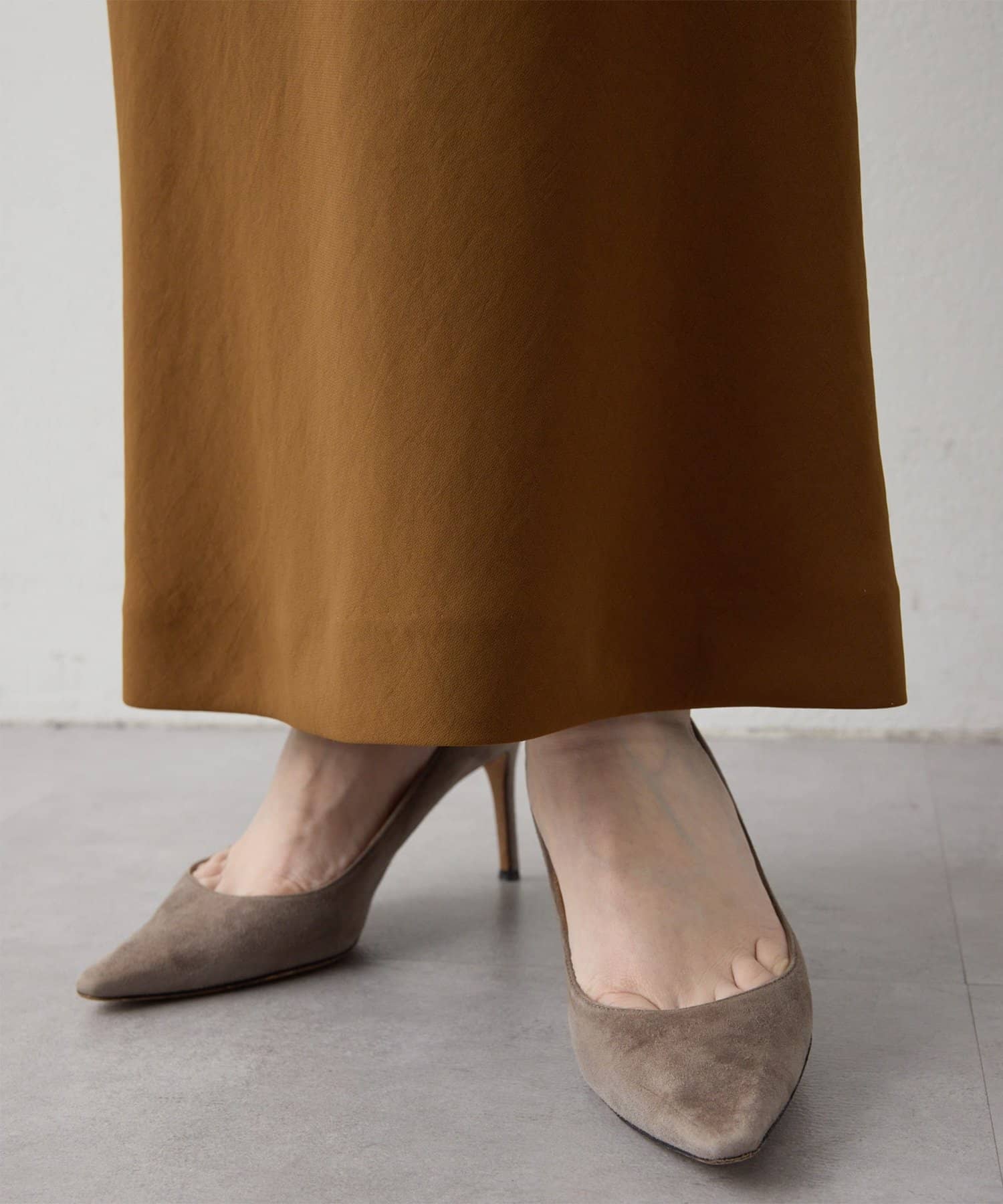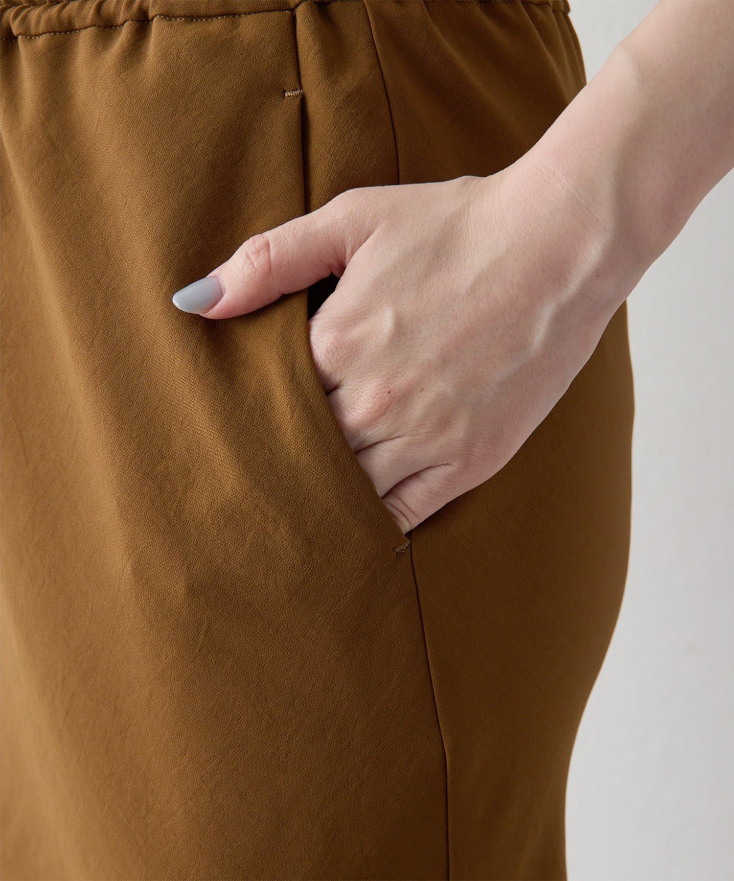 ■ポリエステルダブルクロス素材を使用したセミタイトスカート。