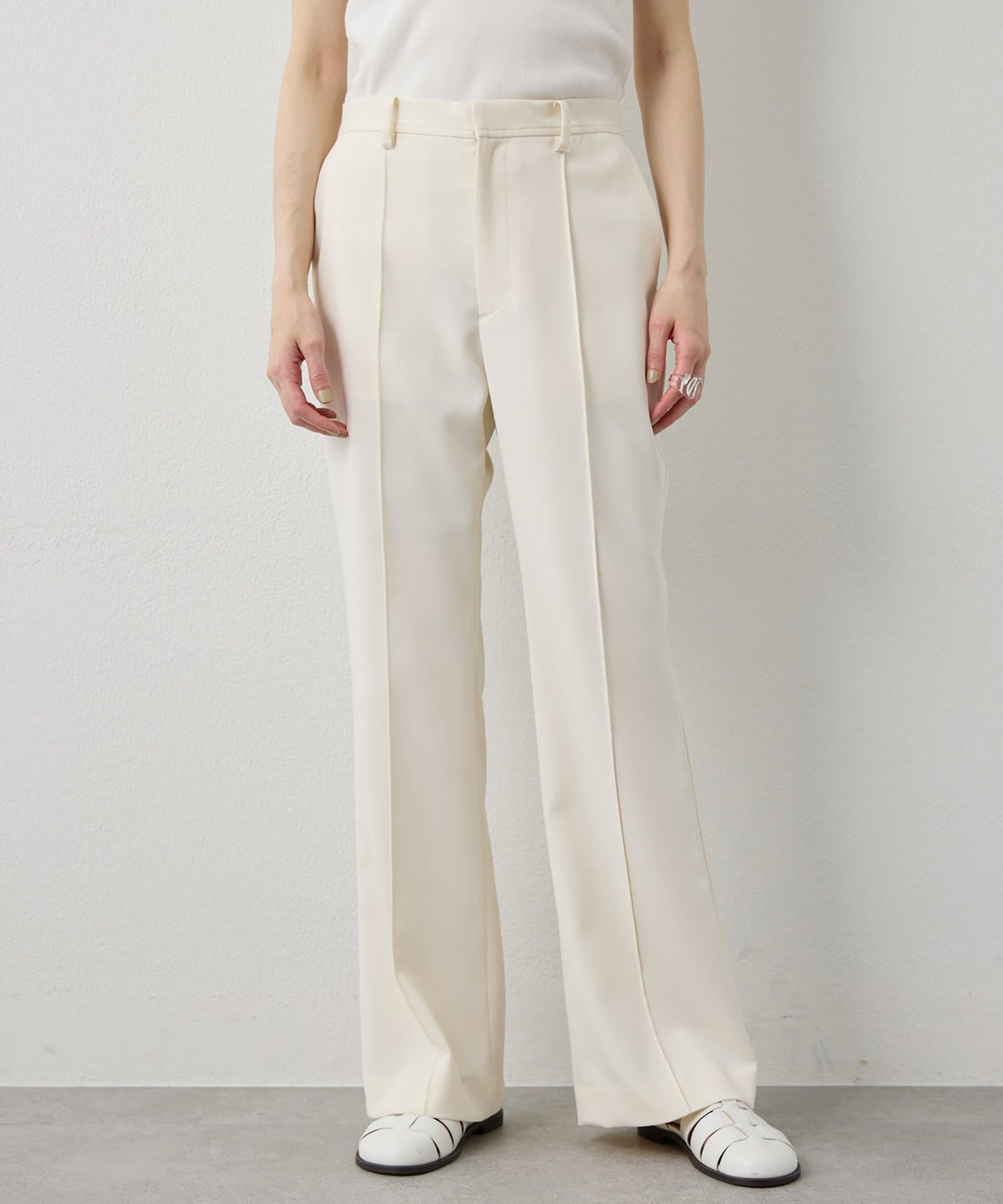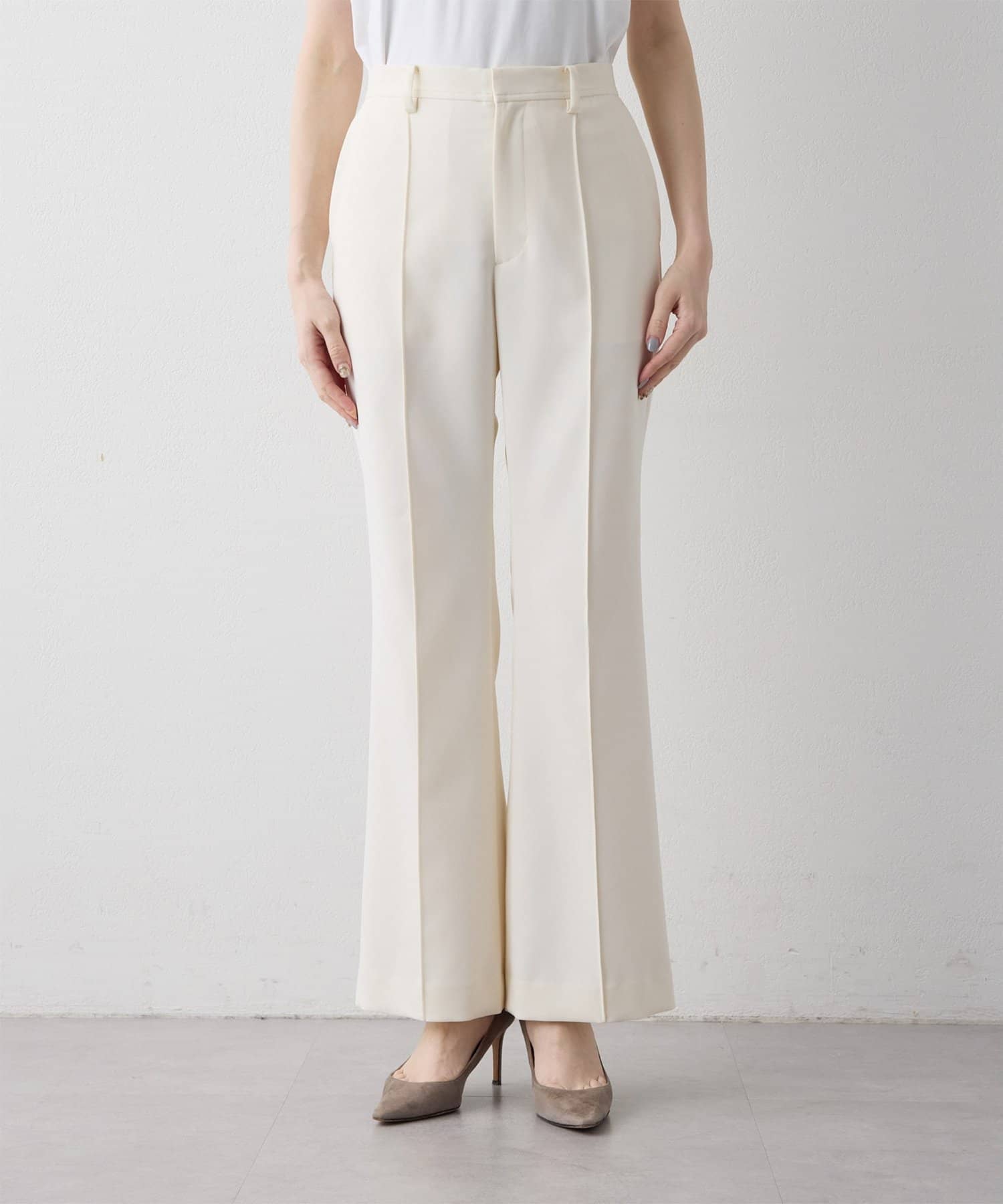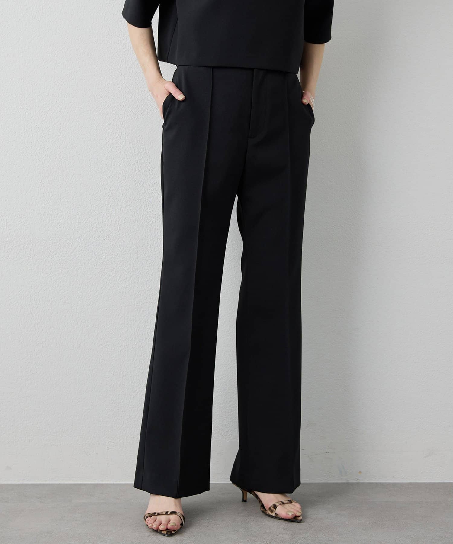 ■スタイルアップが叶うソフトフレアシルエットのパンツ。