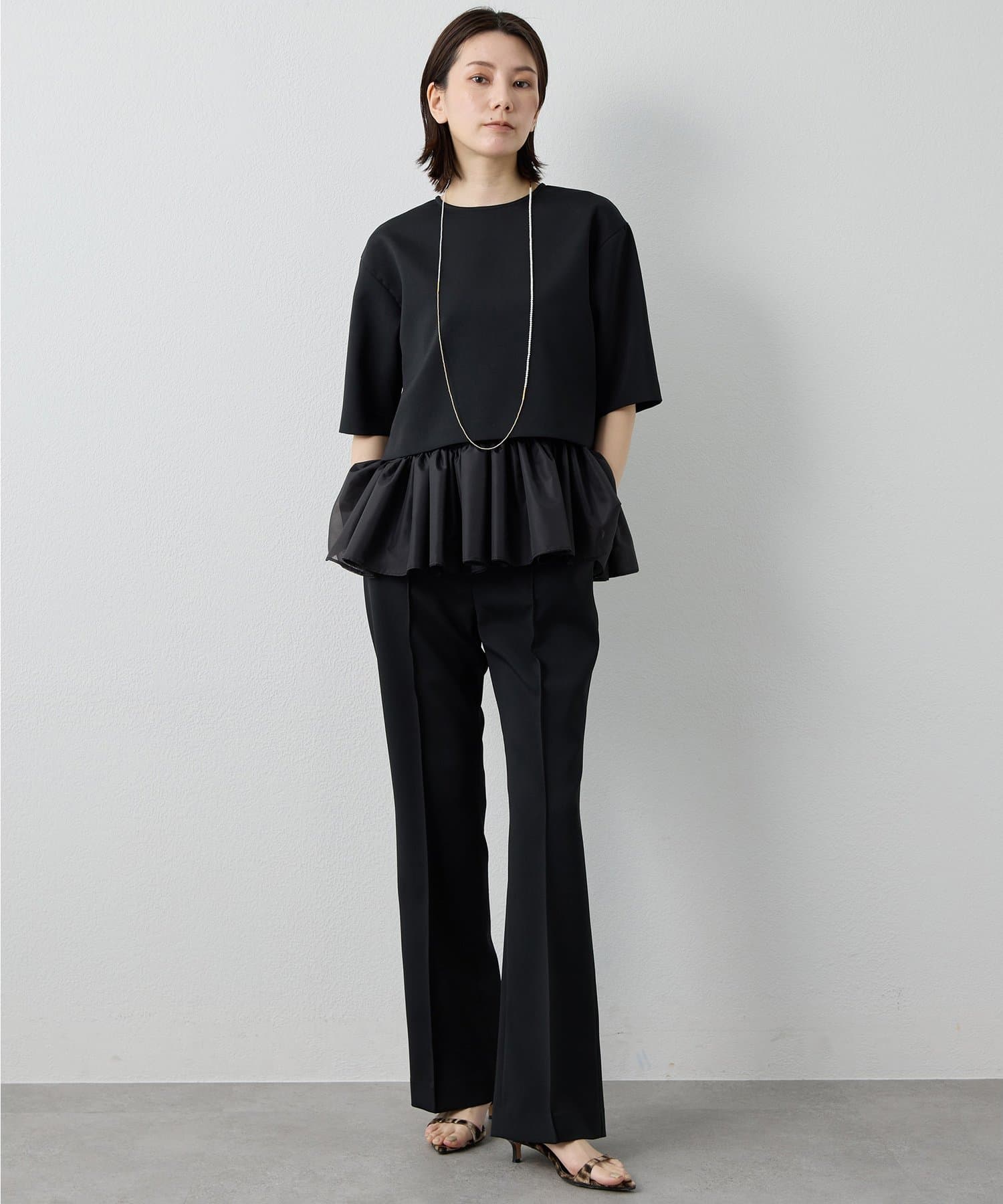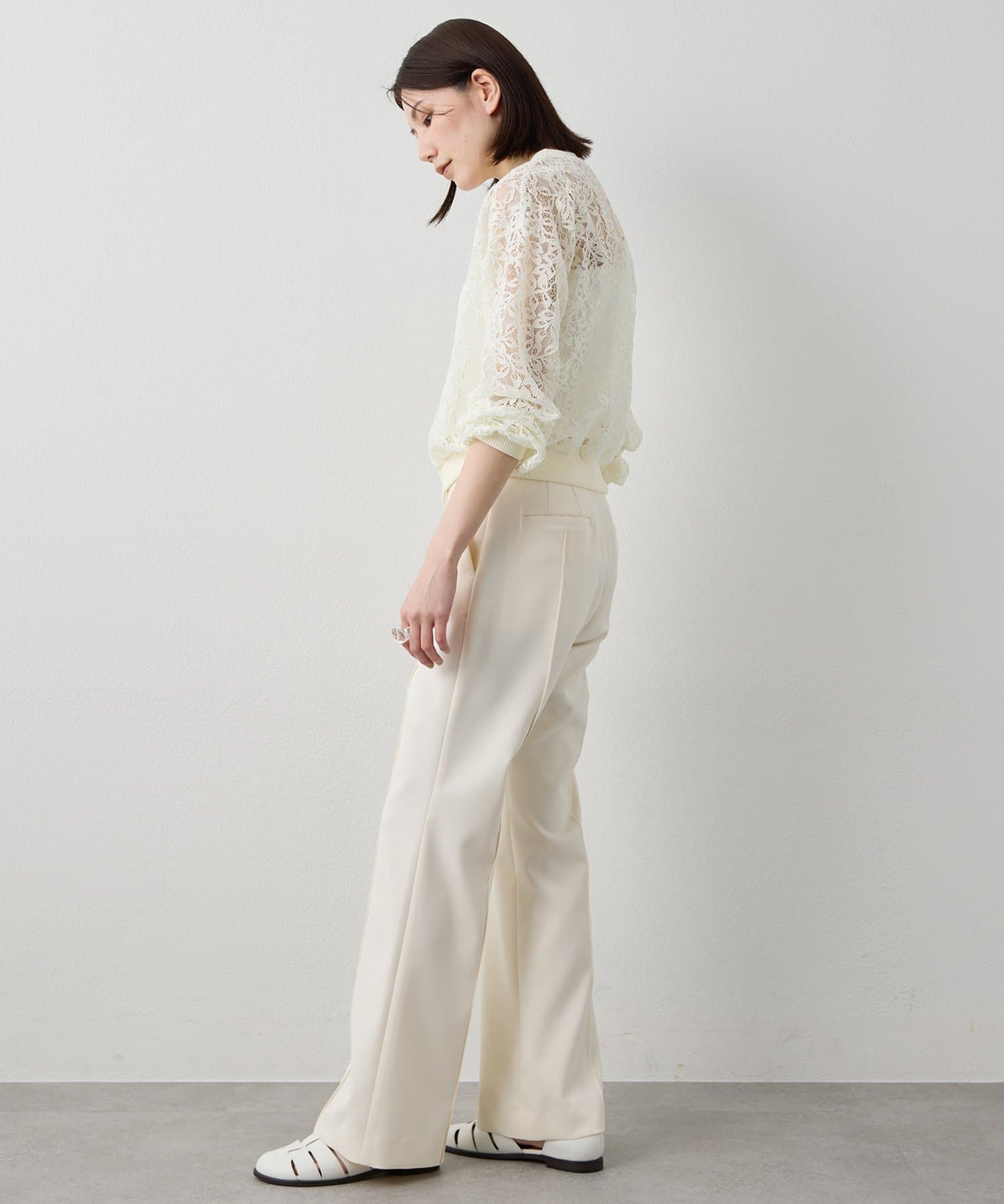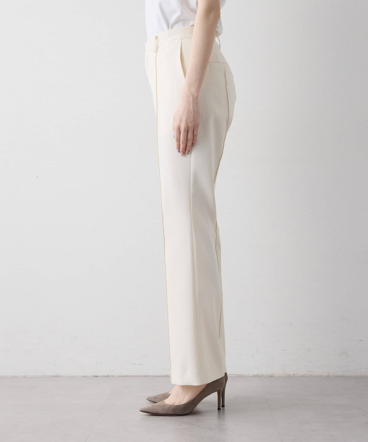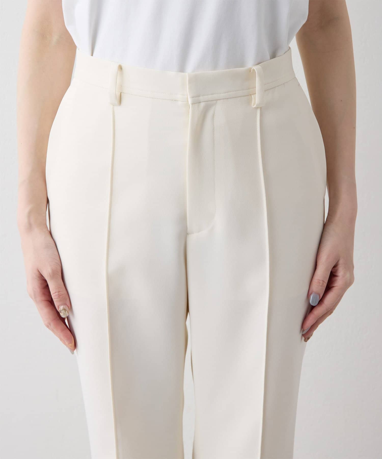 ■スタイルアップが叶うソフトフレアシルエットのパンツ。