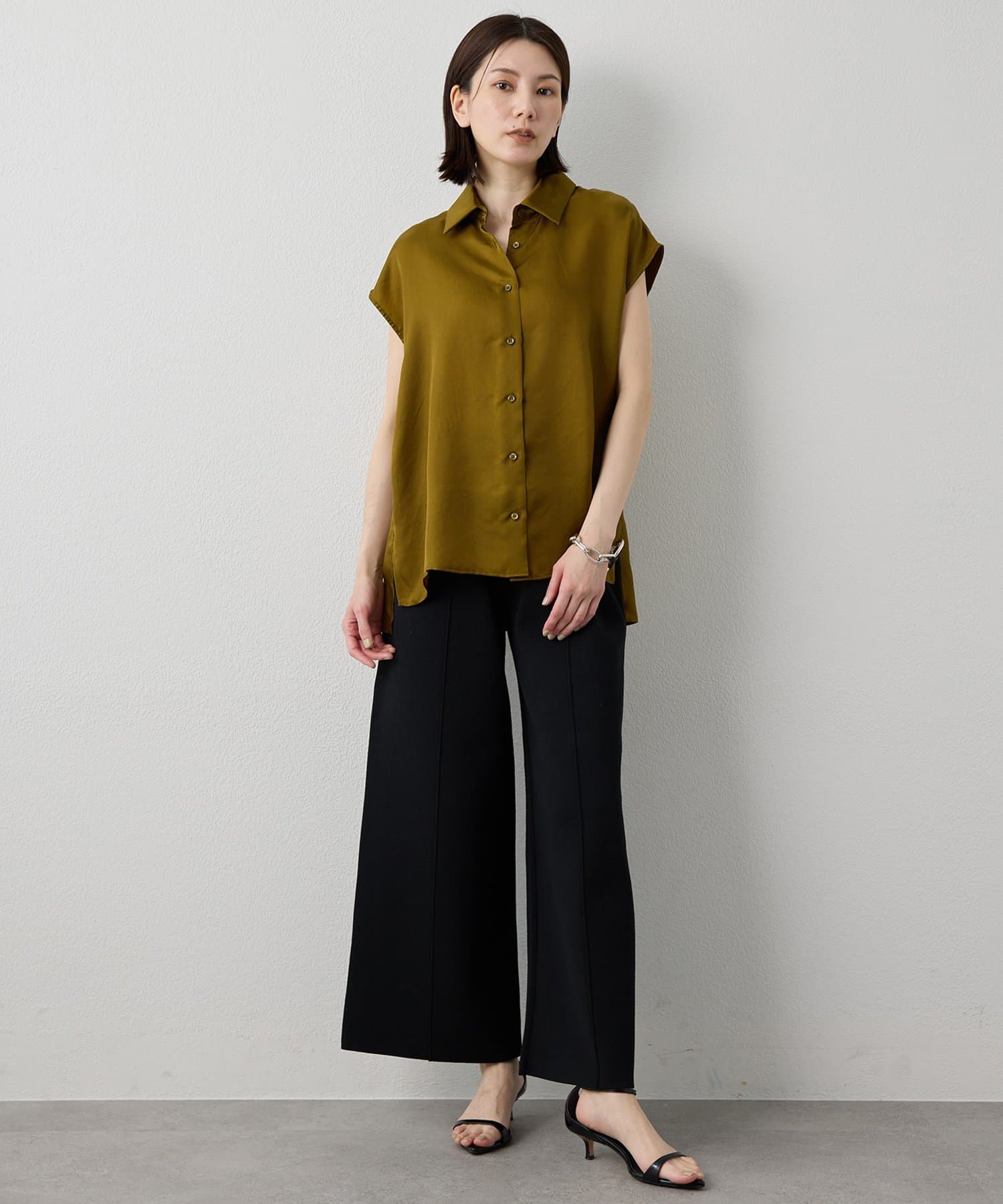 ■ワイドシルエットながら、腰周りはすっきりときれいめな印象に。