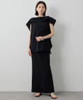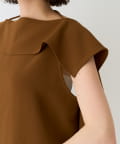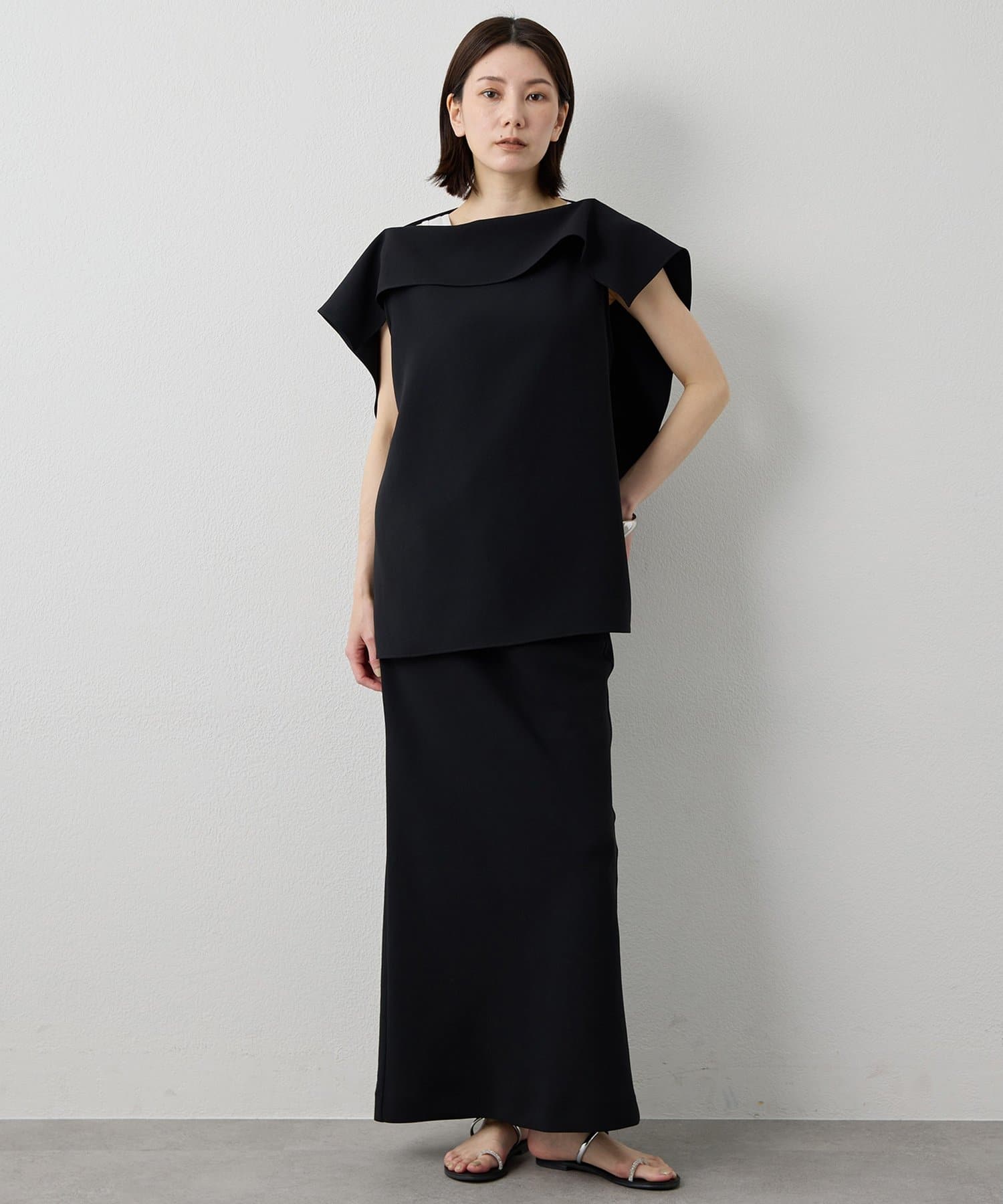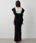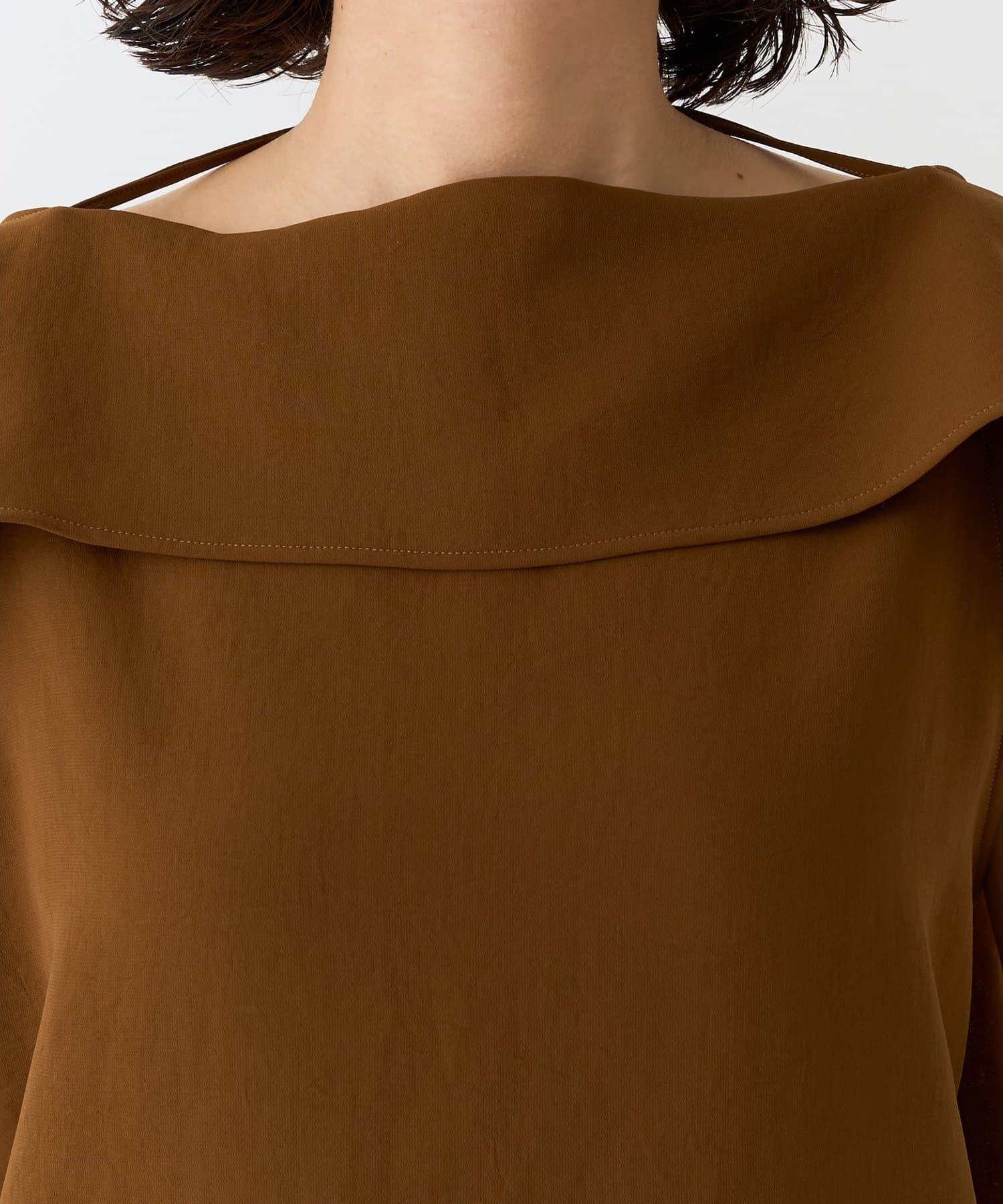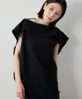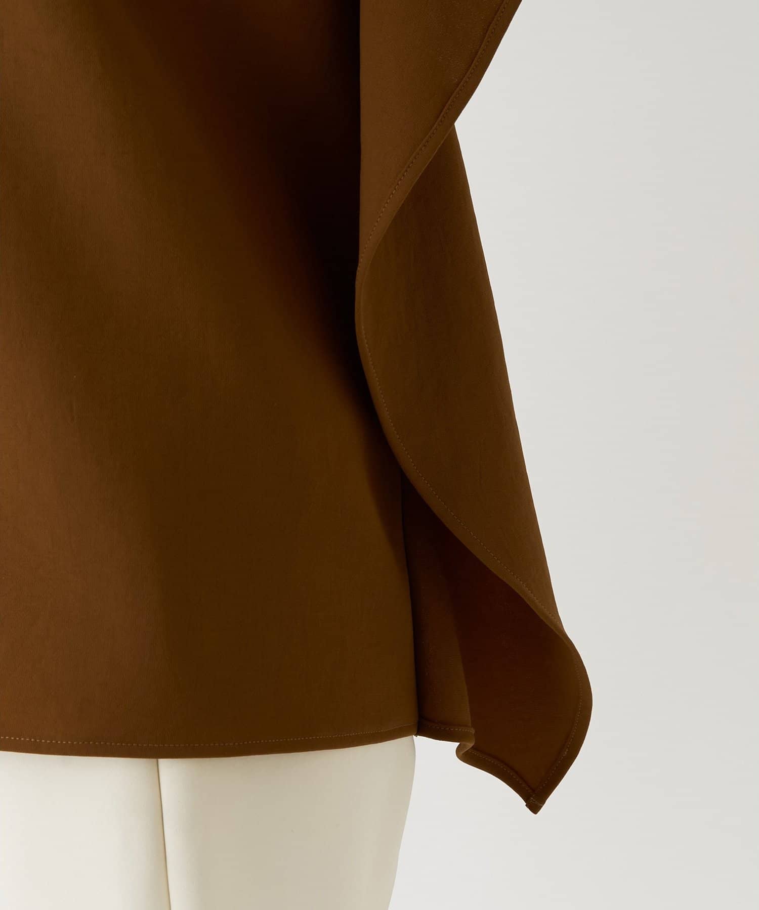 ■フロントの折り返しのロールカラーが後ろ裾まで続くドレープ切替え。